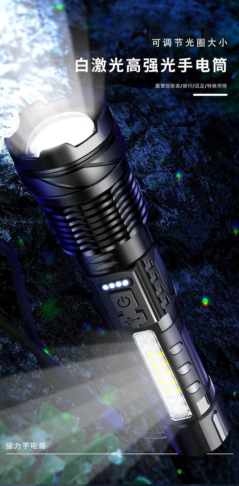화이트 레이저 하이라이트 손전등 충전식 레드 블루 하이 파워 LED 손전등 사이드 라이트 야외 조명 손전등스토어 가기