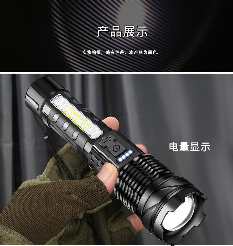 화이트 레이저 하이라이트 손전등 충전식 레드 블루 하이 파워 LED 손전등 사이드 라이트 야외 조명 손전등