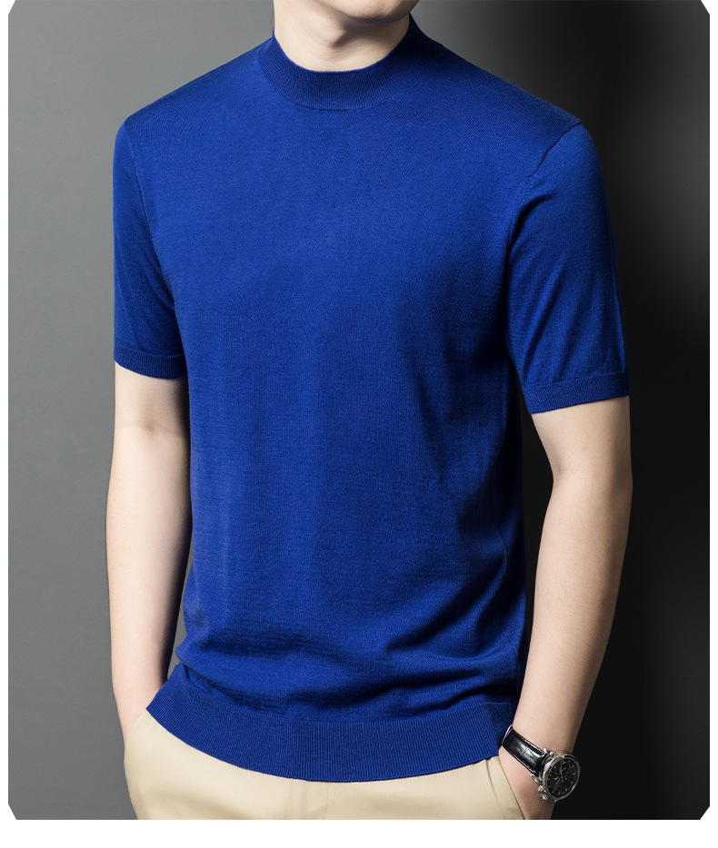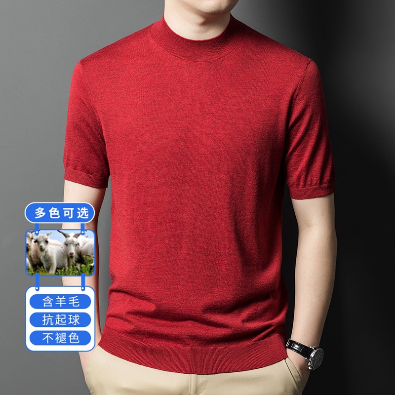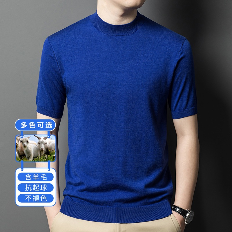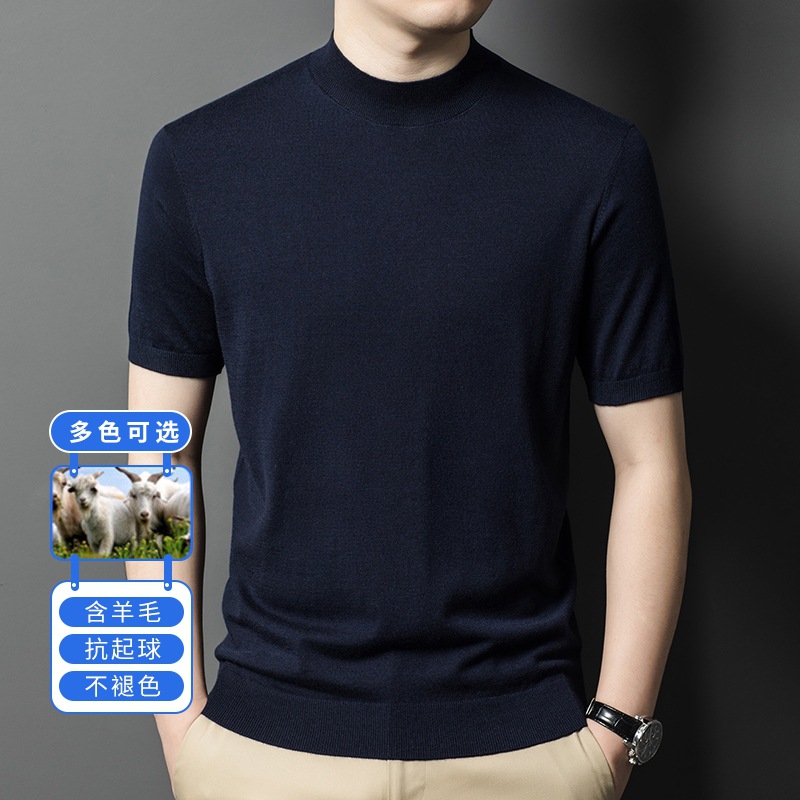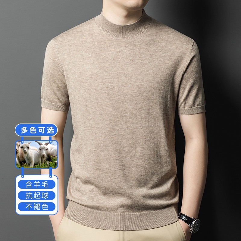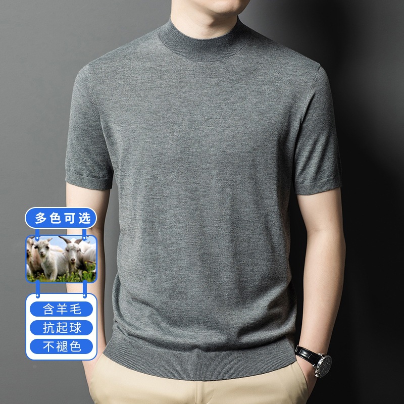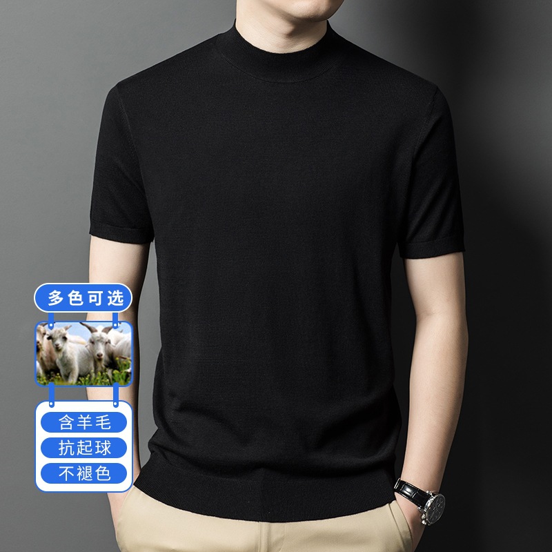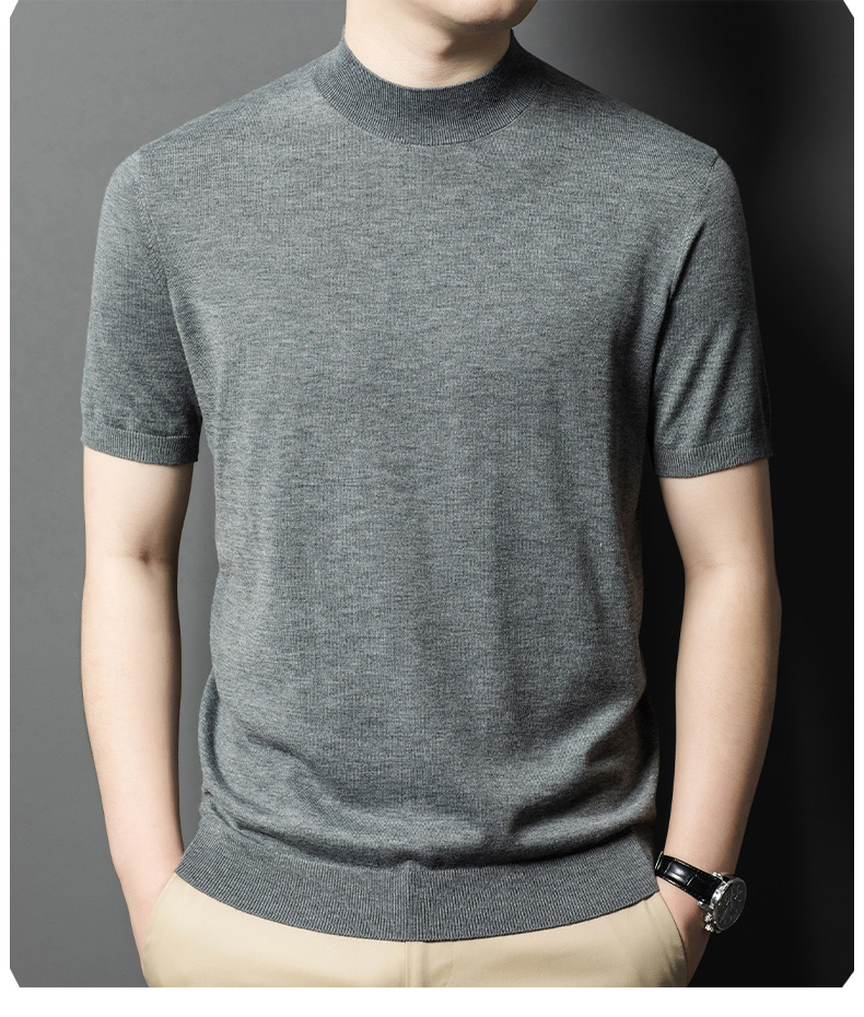 [6 울] 남성용 스웨터 하이 엔드 센스 짧은 소매 캐주얼 비즈니스 내부 남성용 하이 엔드 바닥 스웨터 남성스토어 가기