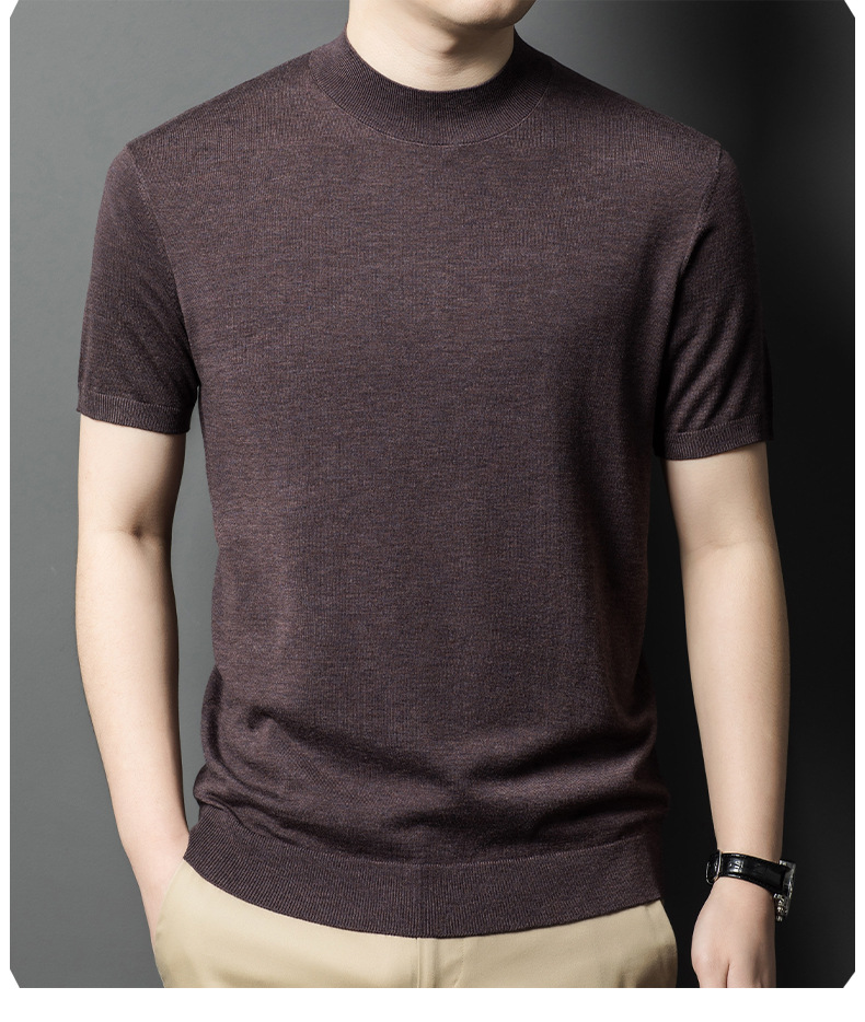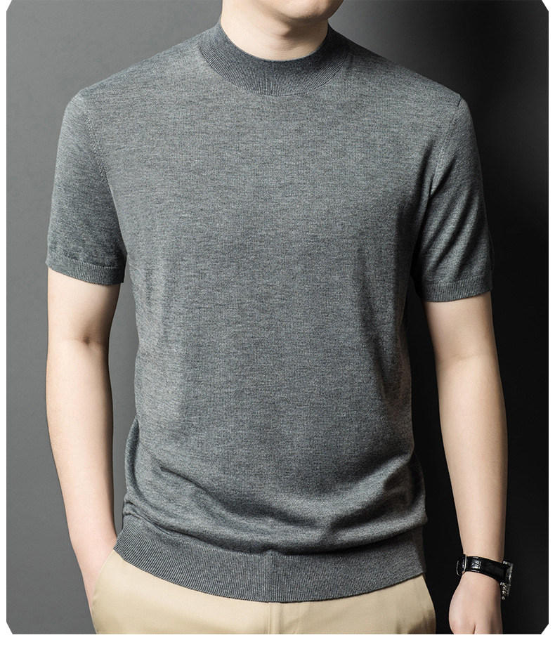 [6 울] 남성용 스웨터 하이 엔드 센스 짧은 소매 캐주얼 비즈니스 내부 남성용 하이 엔드 바닥 스웨터 남성