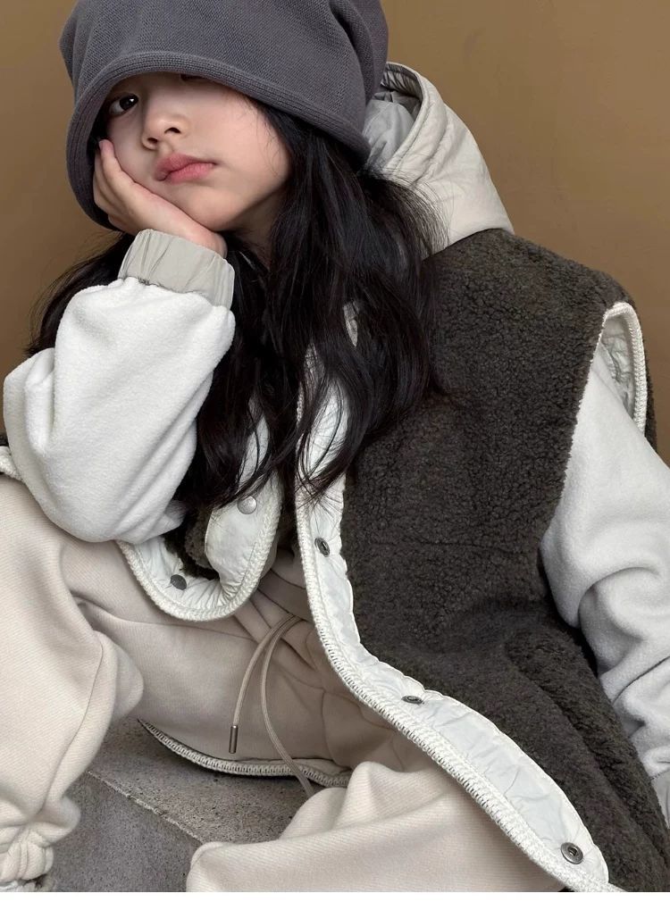 여아용 두꺼운 조끼 2025 겨울 새 스타일 아동용 가을 겨울 스타일 오스트리아 벨벳 여아용 양면 탑
