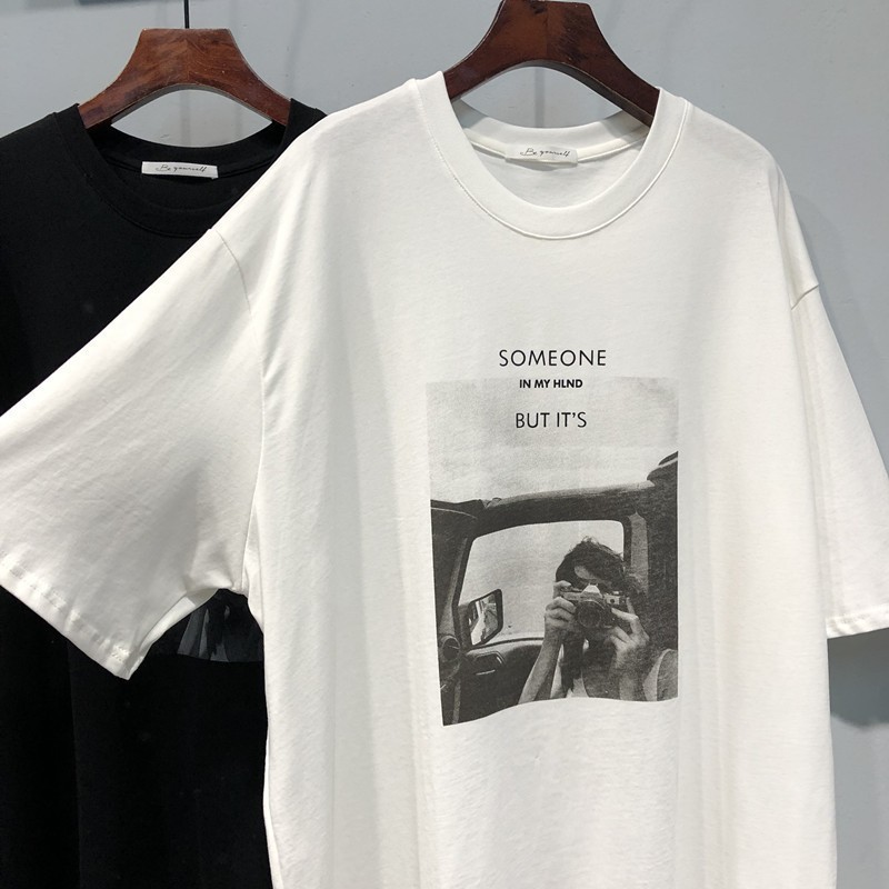 2025 년 봄과 여름 한국 ulzzang 새로운 한국 팬 뷰티 피겨 패턴 긴 느슨한 짧은 소매 티셔츠 여성 패션스토어 가기