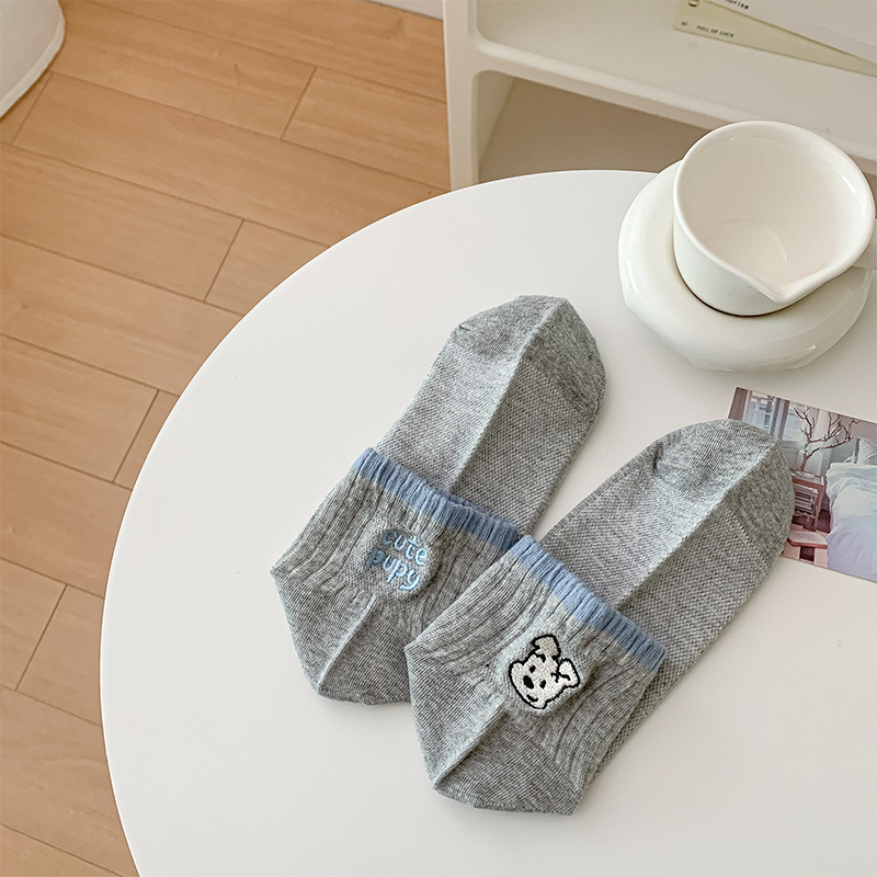 봄과 여름 양말 여성 한국 스타일 바람 자수 강아지 문자 AB 짧은 튜브 양말 메쉬 통기성 흰색 여성 양말스토어 가기