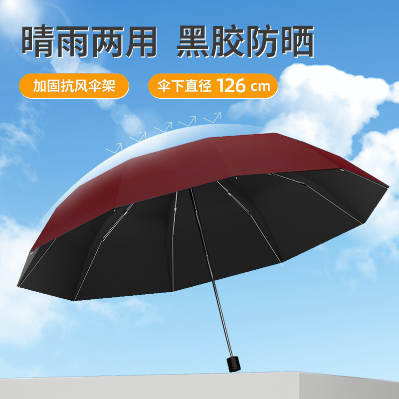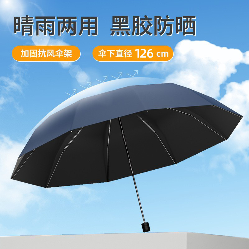 더블 대형 우산 트리플 접는 우산 블랙 고무 우산 남성 매뉴얼 우산 두껍게 강화 된 비 방지 양산 우산스토어 가기