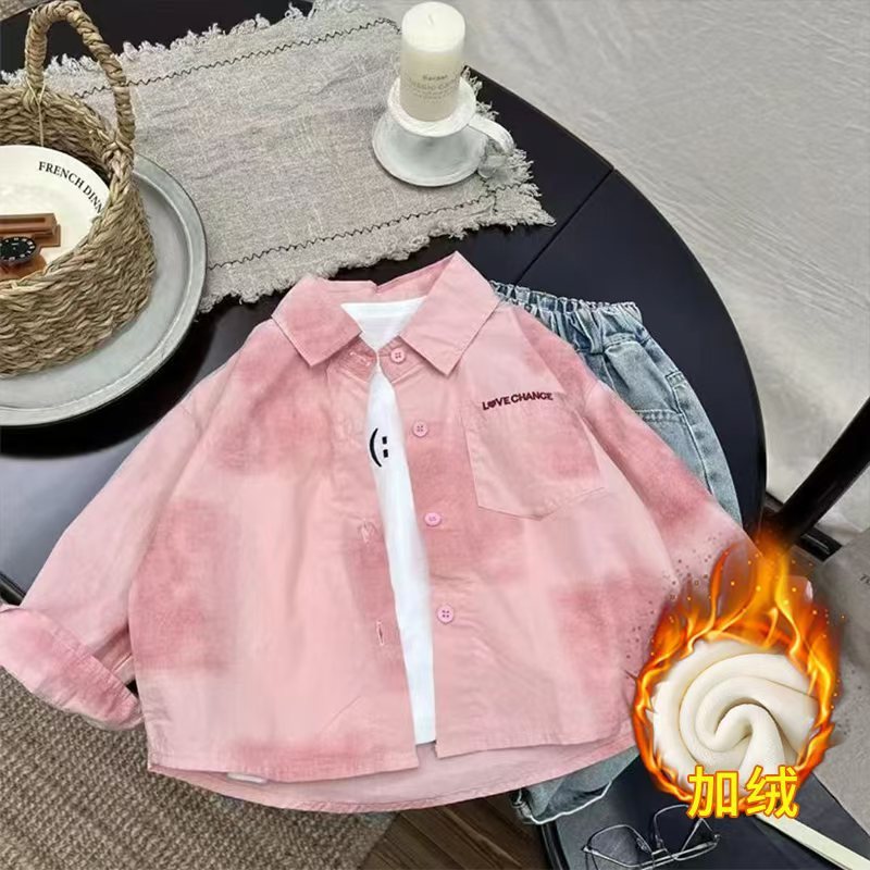 어린이 가을 겨울 기모 긴팔 셔츠 소년 잘 생긴 베이스 탑 어린이 아기 따뜻한 셔츠스토어 가기
