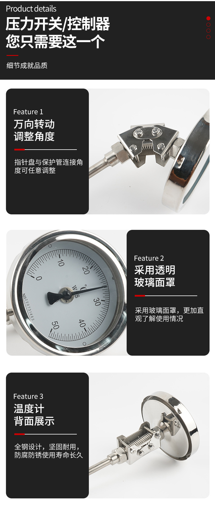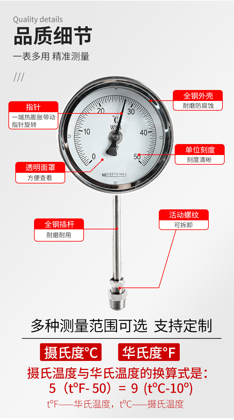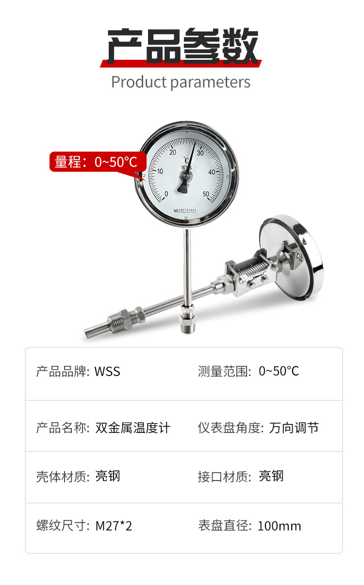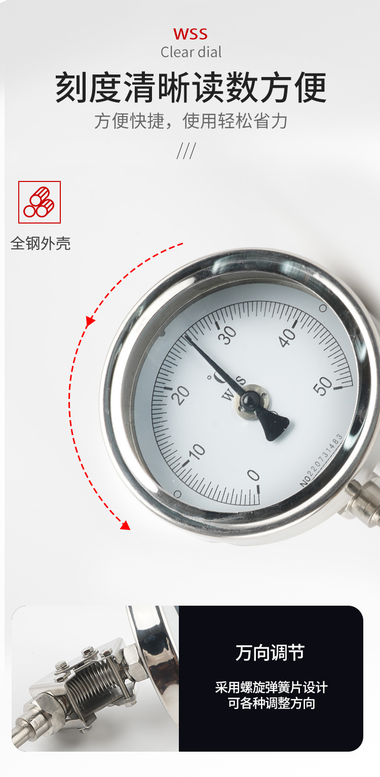 바이메탈 온도계 대만 화지계기 보일러 파이프라인 양조 장비 온도 센서 고온 저항 온도 측정스토어 가기