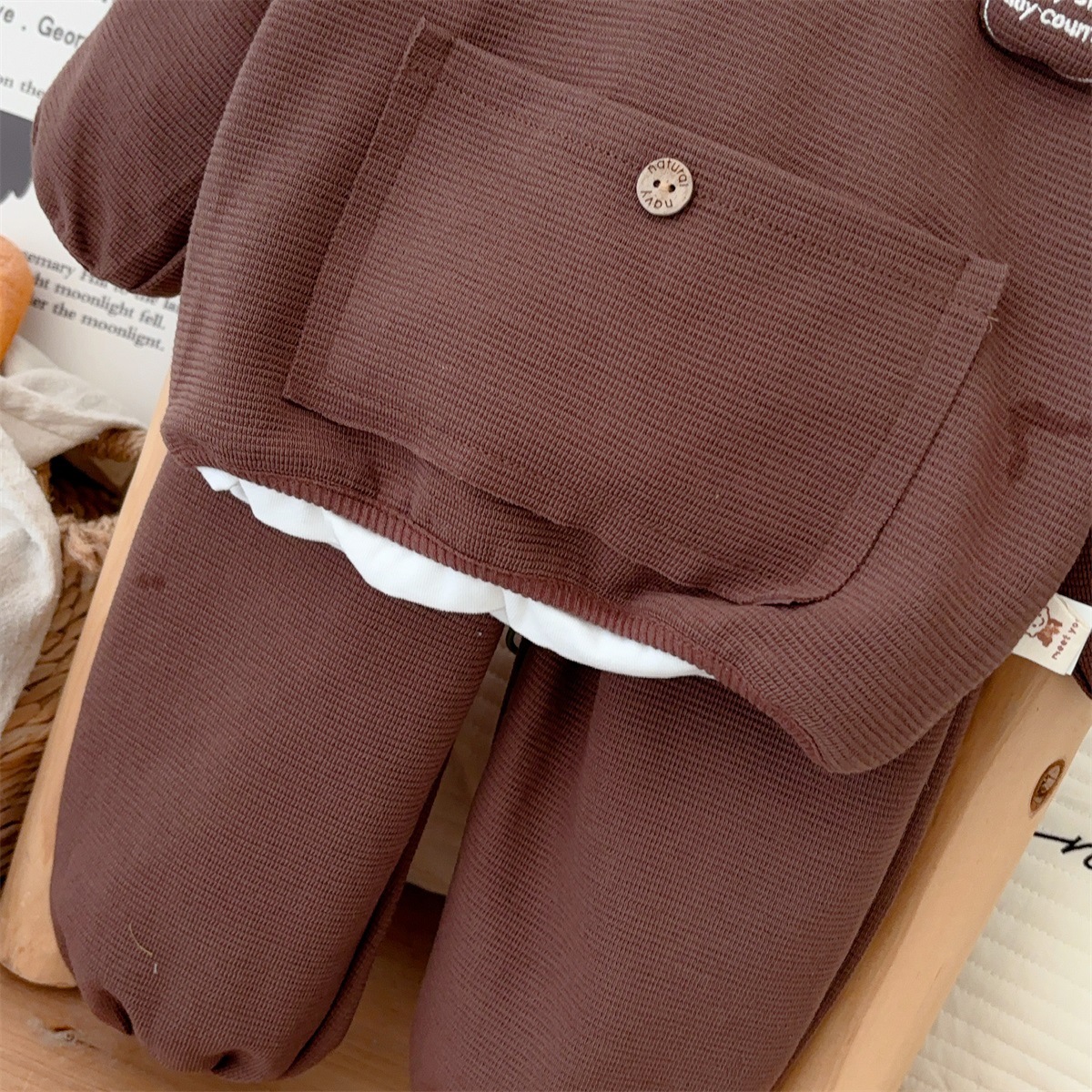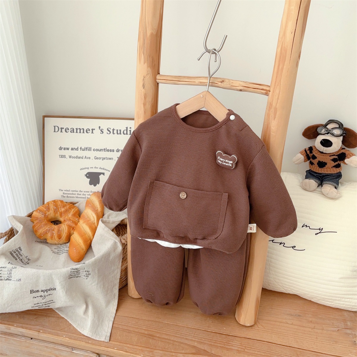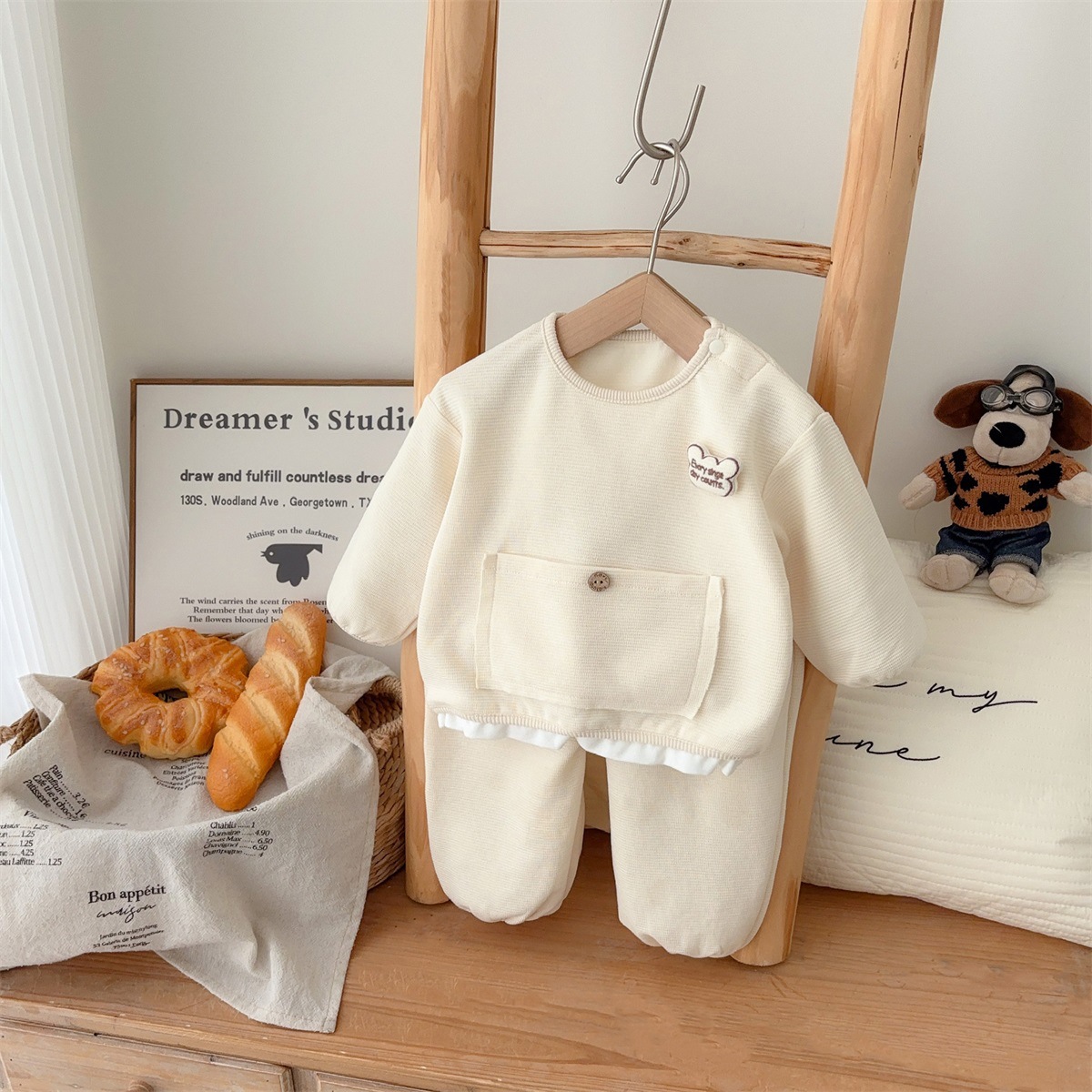 한국 아동복 봄과 가을 복장 서양식 올 매치 땀 바지 투피스 보름달 백일 베이비 세트