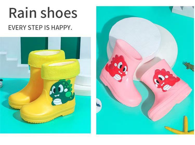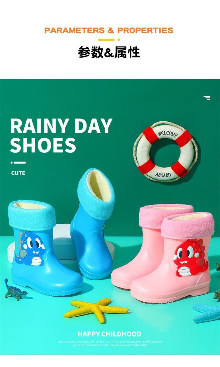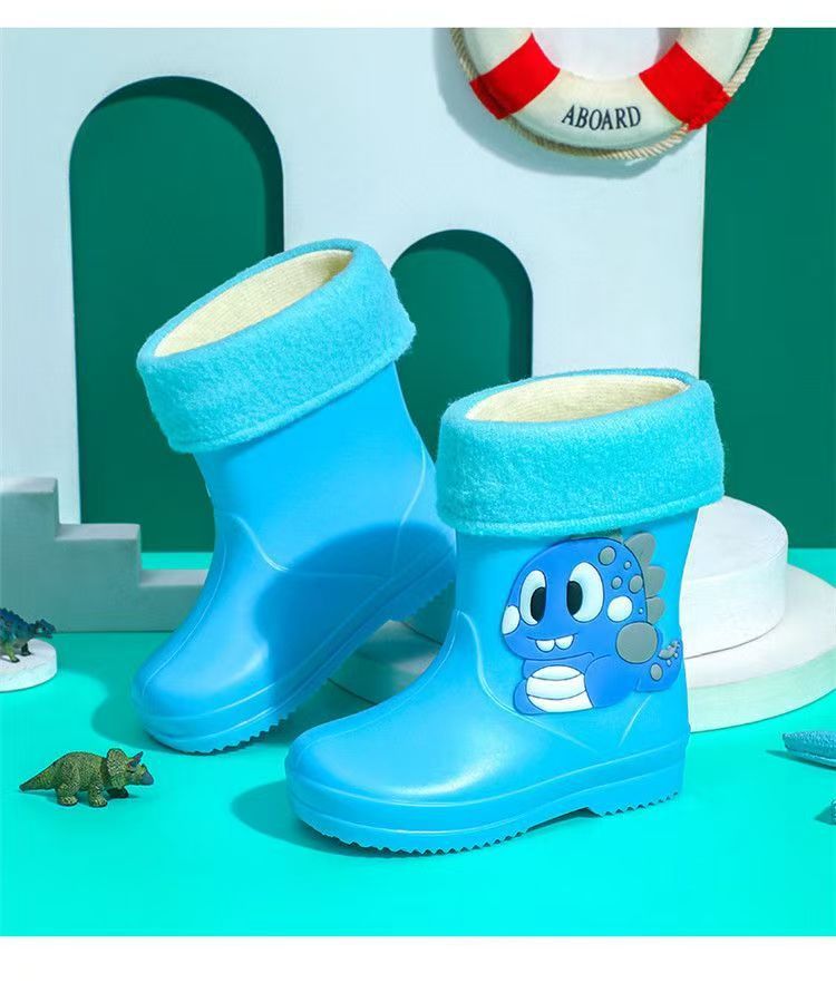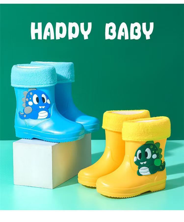 사진으로 맞춤형 로고 만화 어린이 장화 소년과 소녀 미끄럼 방지 플러스 벨벳 새로운 워터 부츠 PVC 소재 워터 부츠스토어 가기