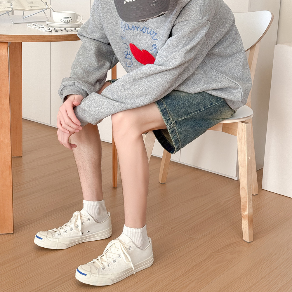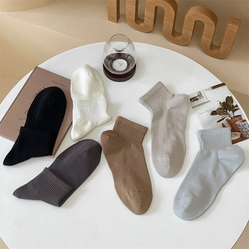 솔리드 컬러 양말 남성용 쇼트 양말 봄과 여름 얇은 솔리드 컬러 코튼 양말 통기성 스웨트 흡수 대형 힐링 안티 스트리핑 힐 양말스토어 가기