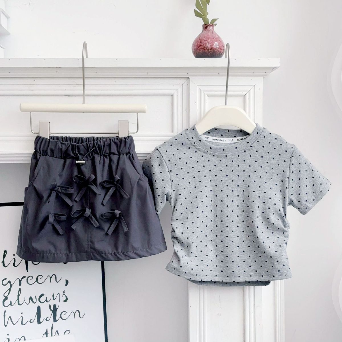 • 폴카 도트 탑 + 보우 스커트 [슈트]