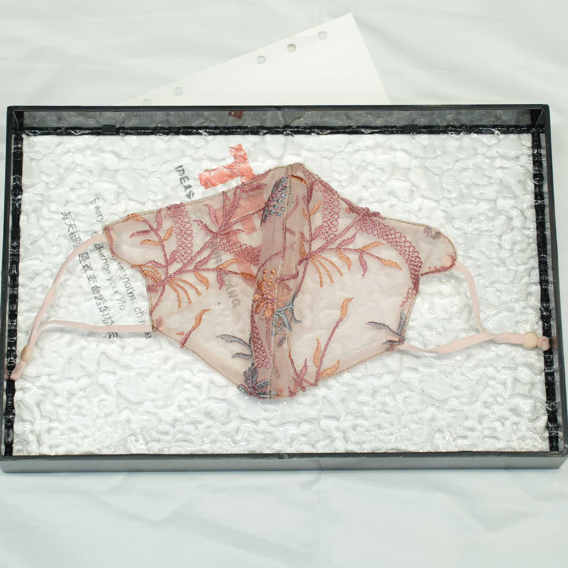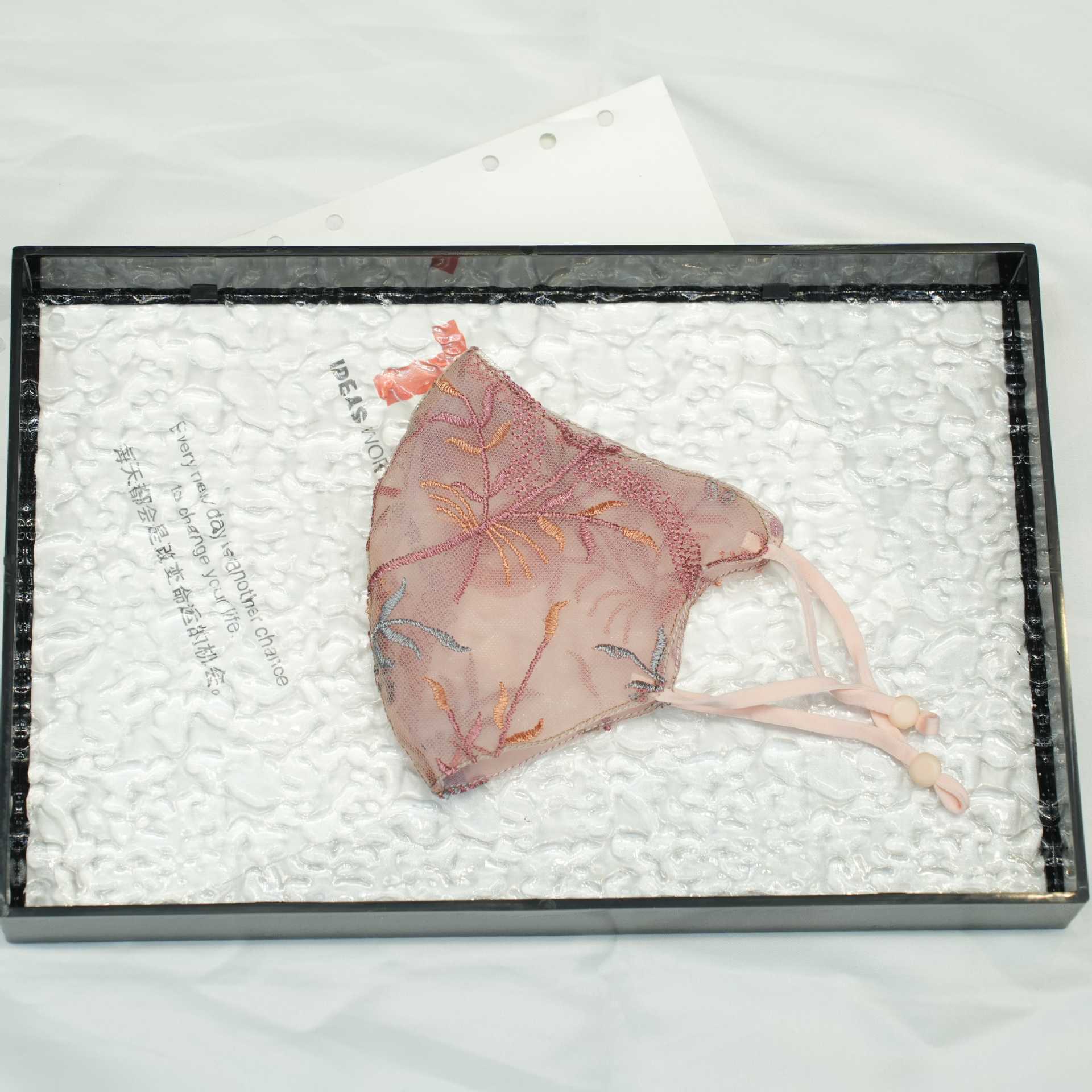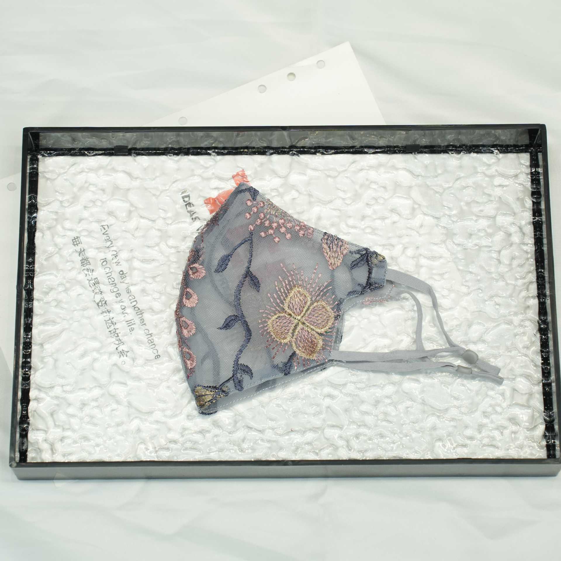 여름 새로운 레이스 자수 국가 스타일 마스크 하이 엔드 자카드 방진 태양 보호 통기성 세척 가능한 더블 레이어