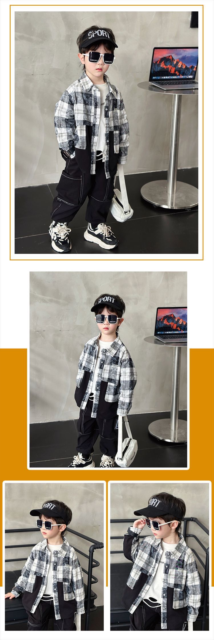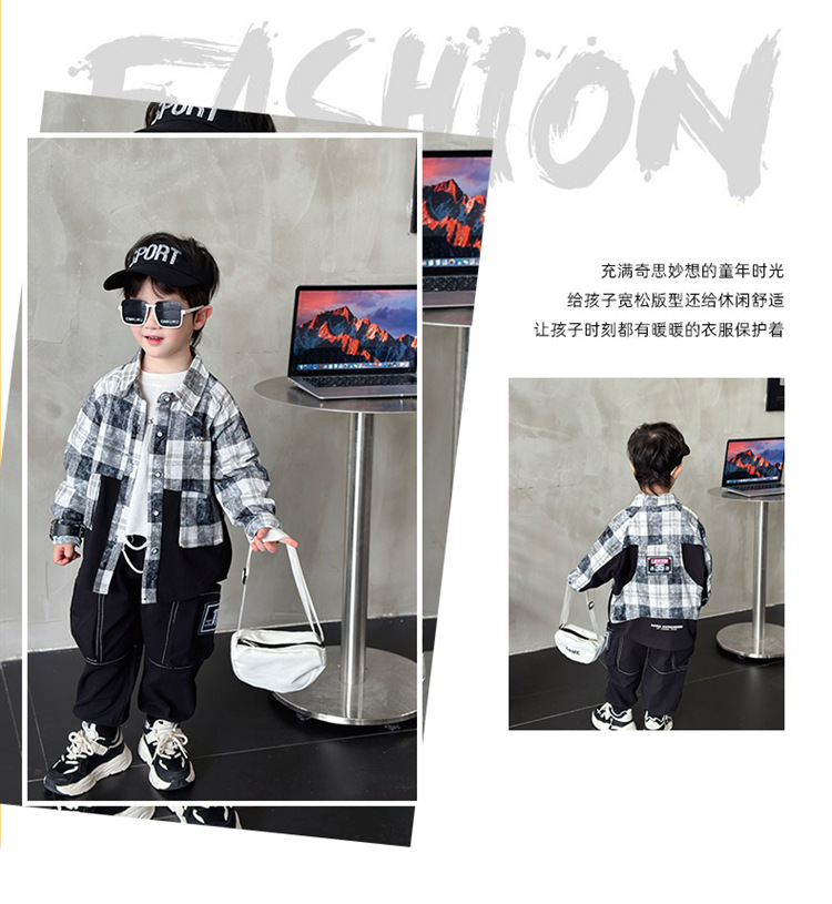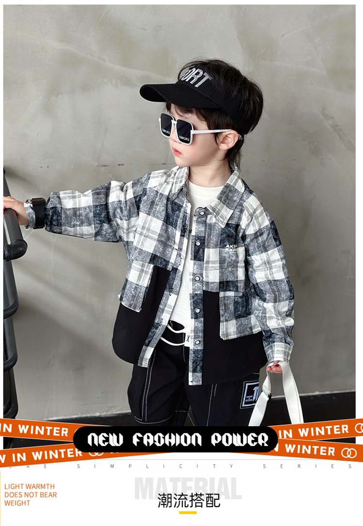 남학생 외투 2024 년 새 가을 중소형 어린이 인터넷-빨간 격자 무늬 셔츠 긴팔 가을 탑스토어 가기