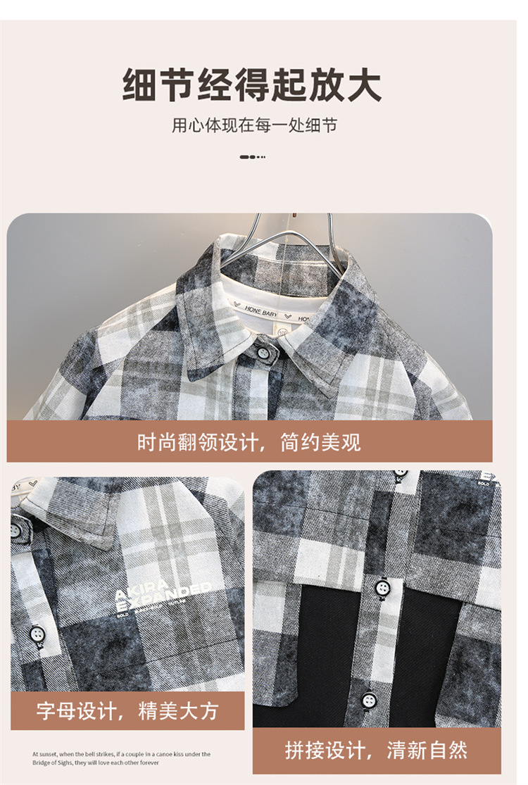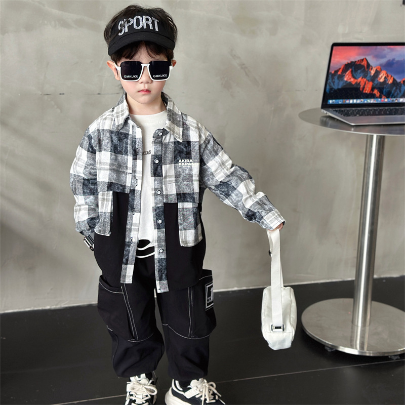 남학생 외투 2024 년 새 가을 중소형 어린이 인터넷-빨간 격자 무늬 셔츠 긴팔 가을 탑