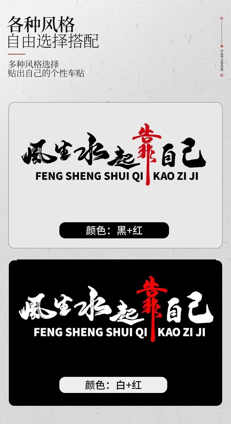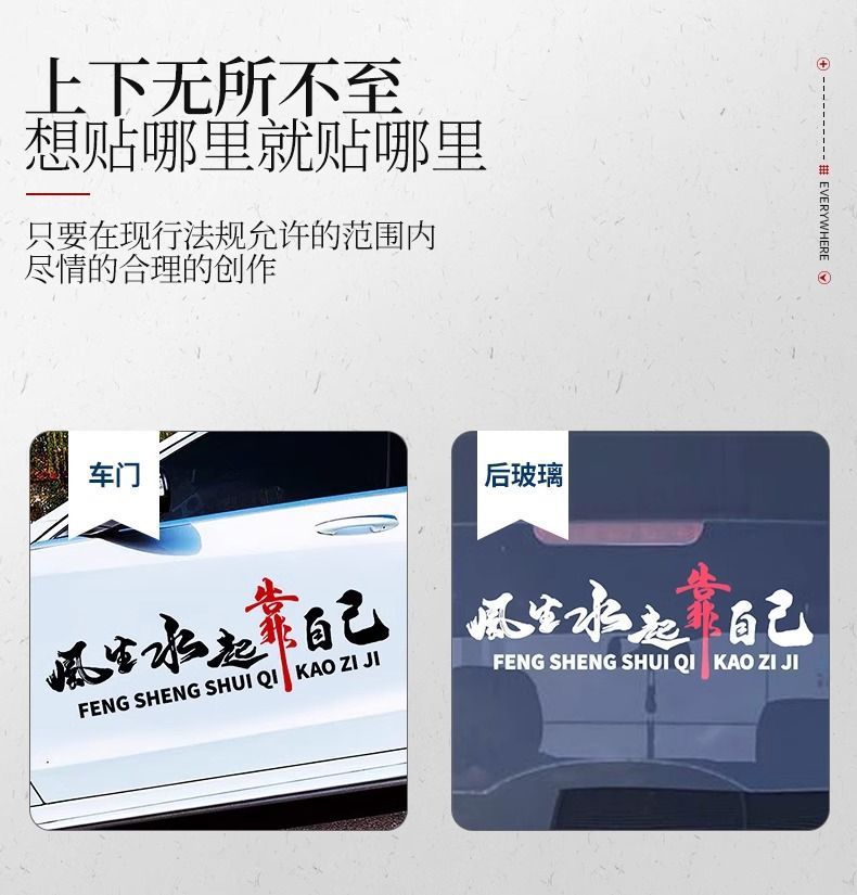 자동차 성격 텍스트 스티커 측면 후면 창 바디 스티커 바람과 물 자신의 반사 자동차 스티커 장식스토어 가기