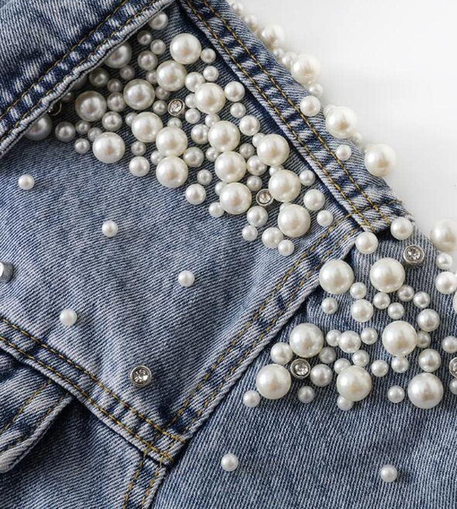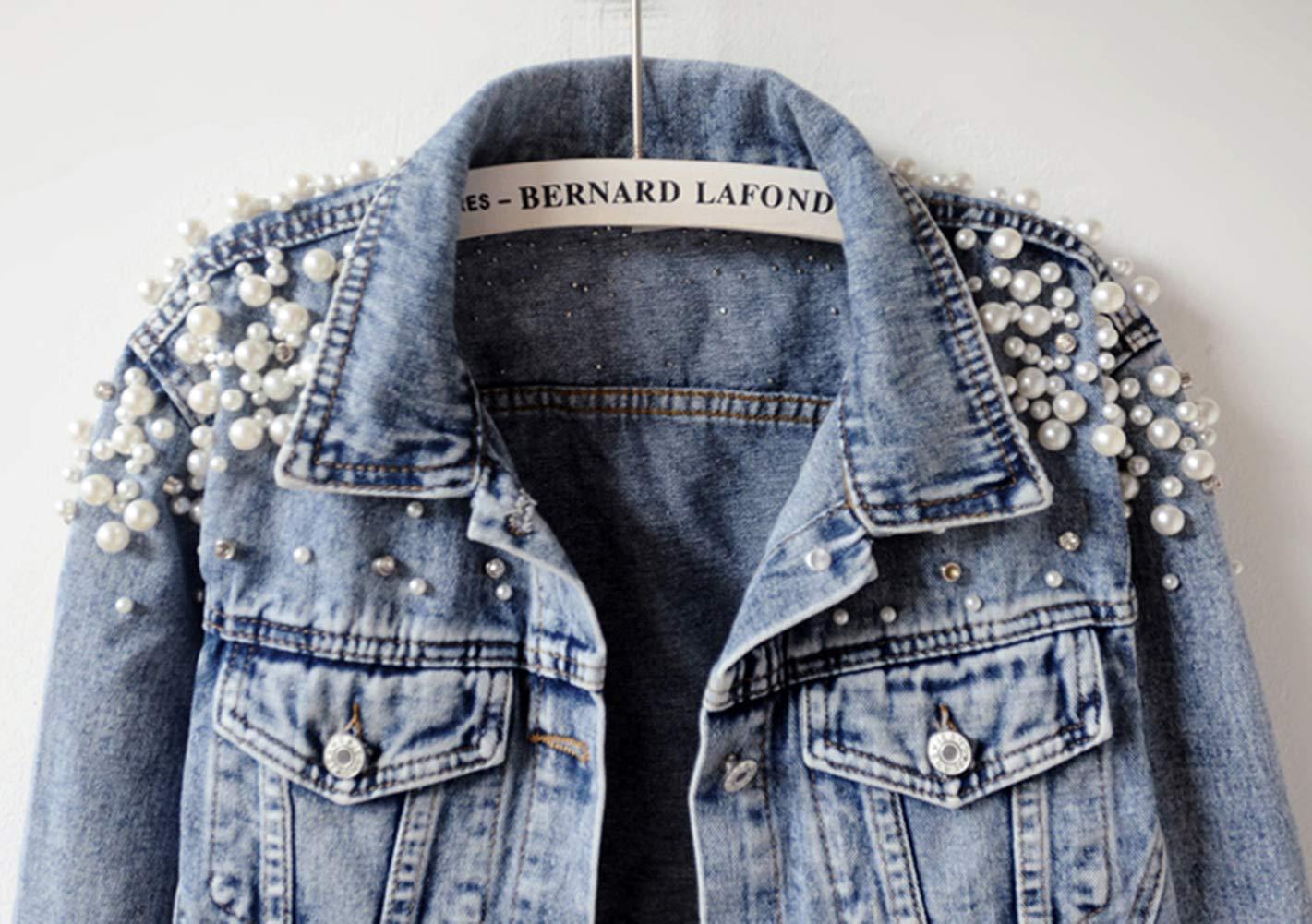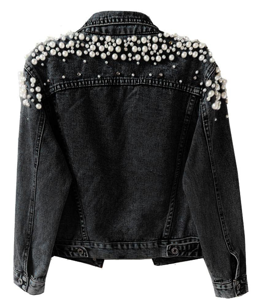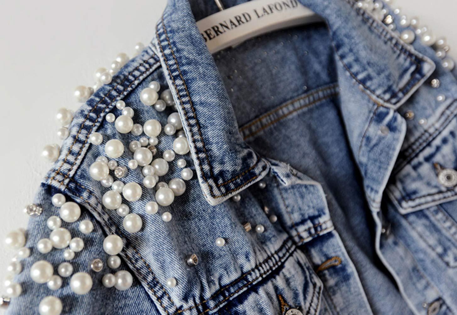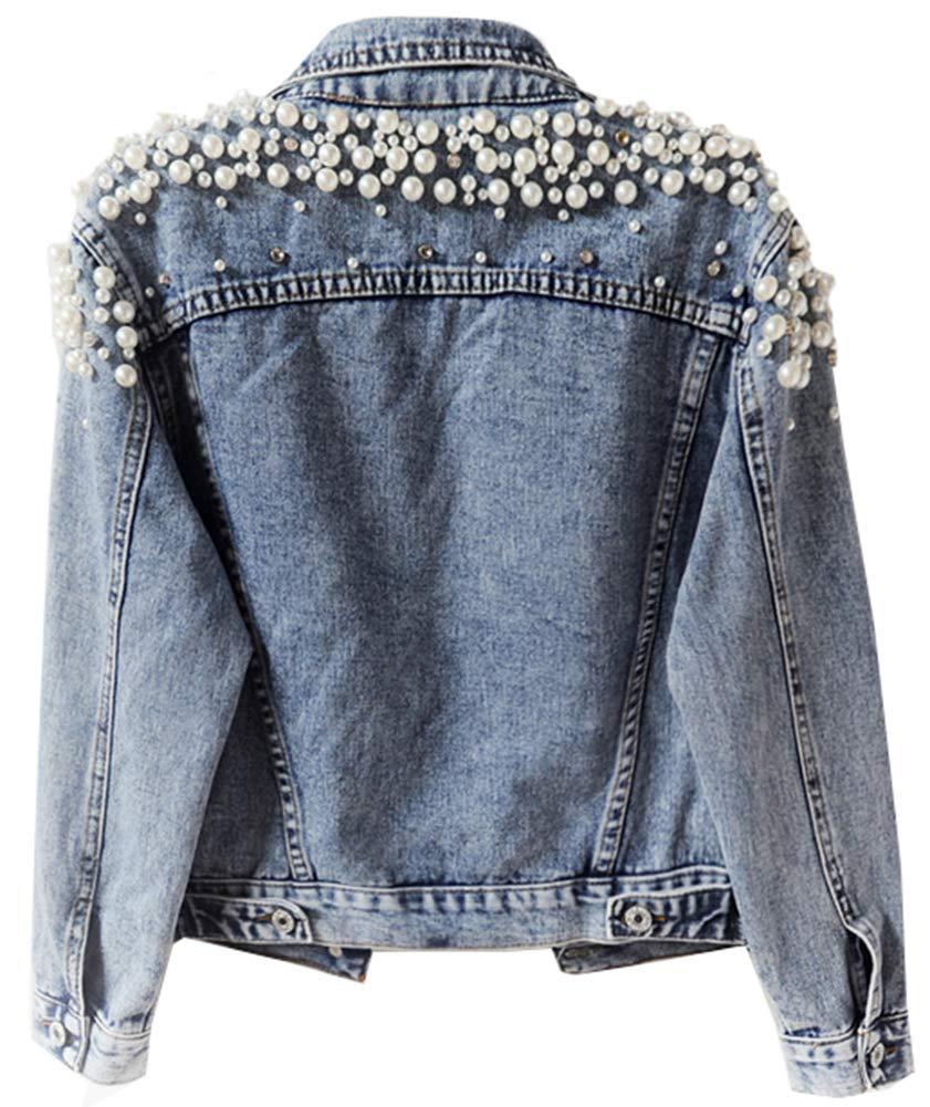 아마존 폭발은 새로운 무거운 작업 네일 비드 느슨한 데님 코트 여성의 새로운 봄 긴 소매 패션 대외 무역 재킷을 기원합니다스토어 가기