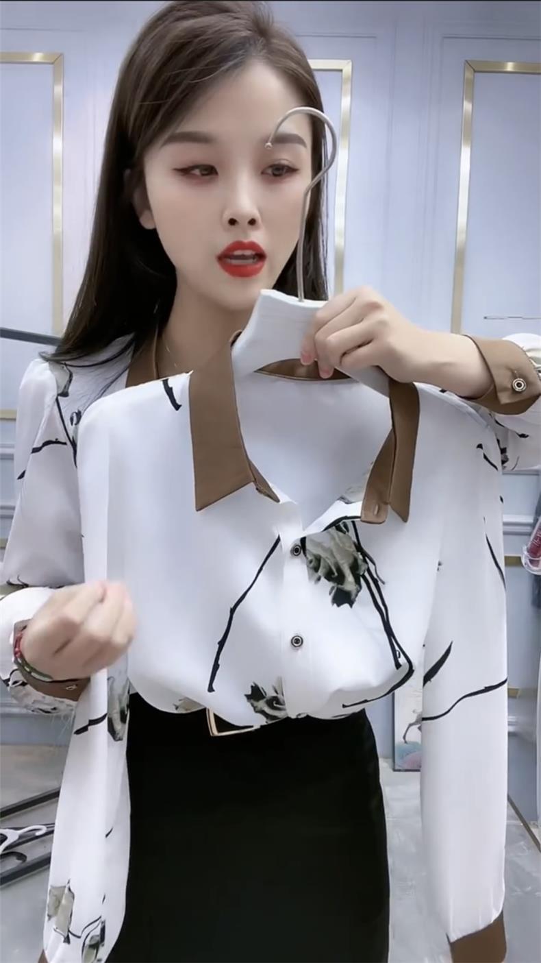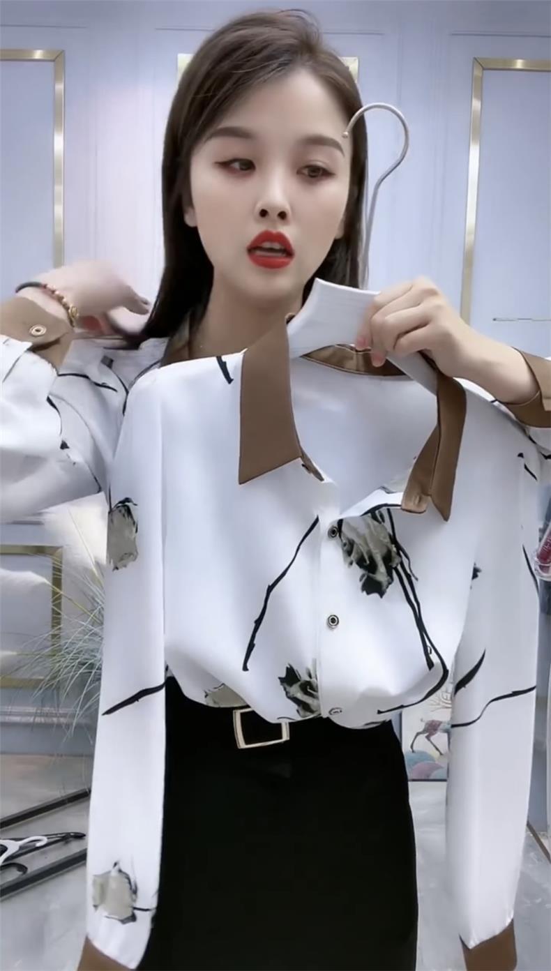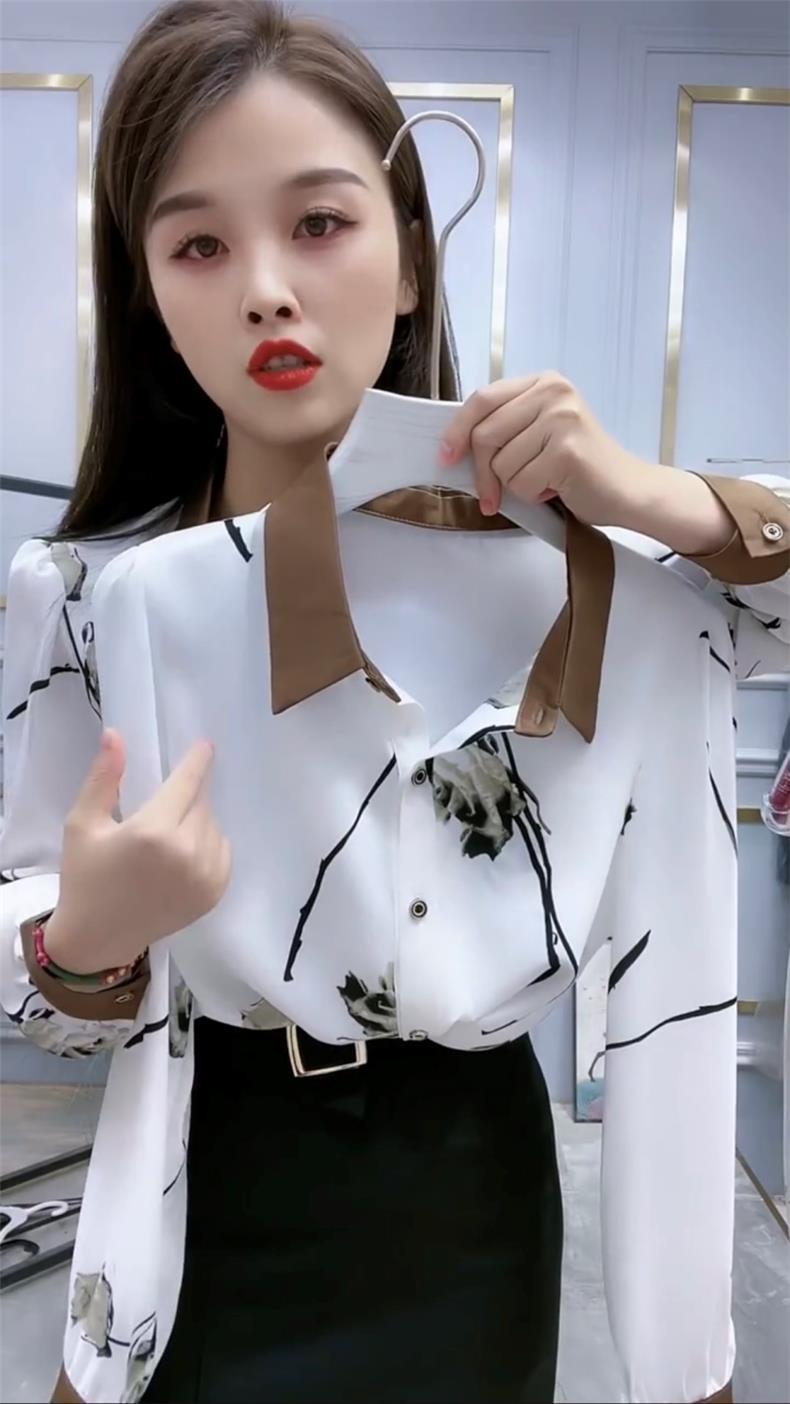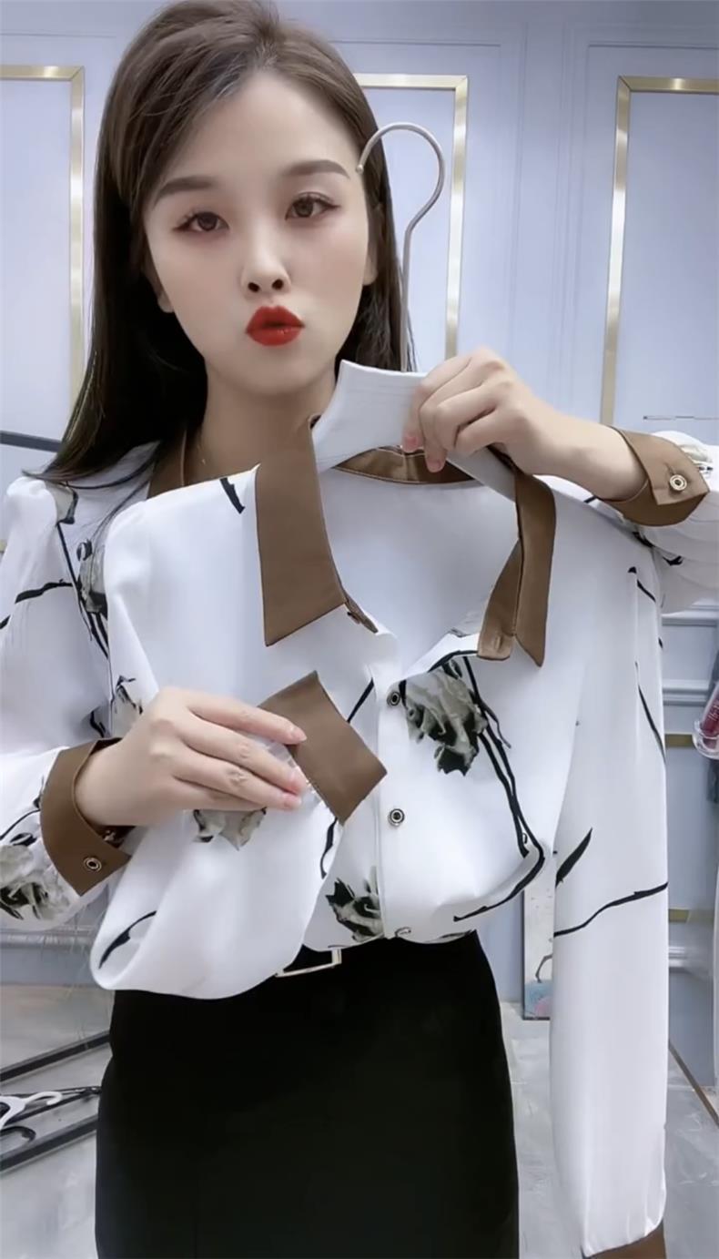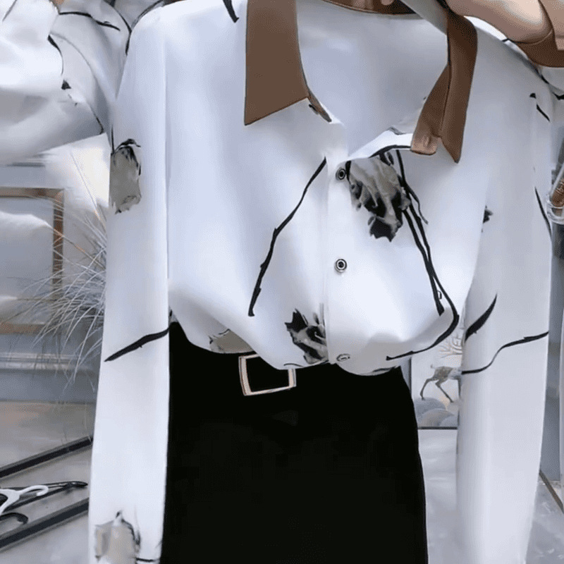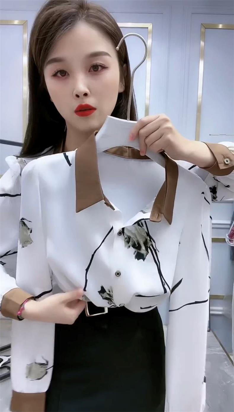 예술적 흰색 꽃 POLO 칼라 셔츠 여성의 2023 가을 긴 소매 셔츠 느슨한 배 덮개 슬리밍 탑스토어 가기