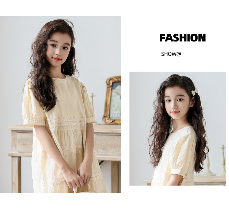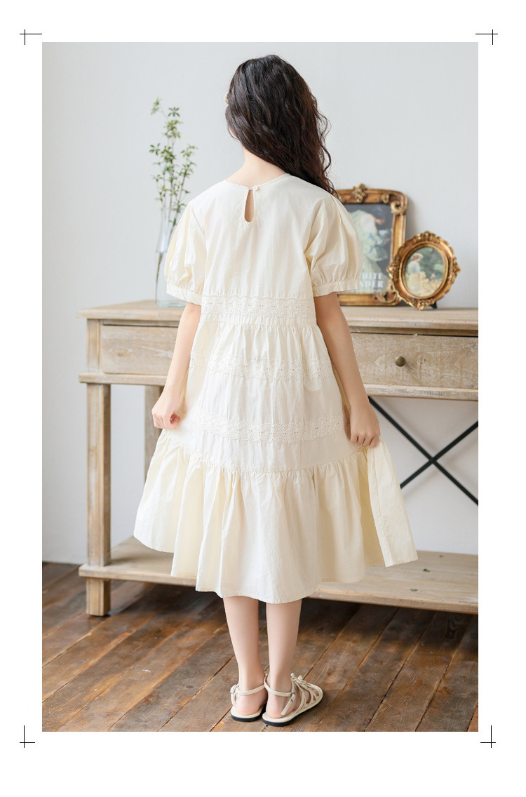 소녀 원피스 여름 새로운 스타일 2025 중 큰 아이 버블 슬리브 중간 길이의 모리 러플 솔리드 컬러 원피스스토어 가기