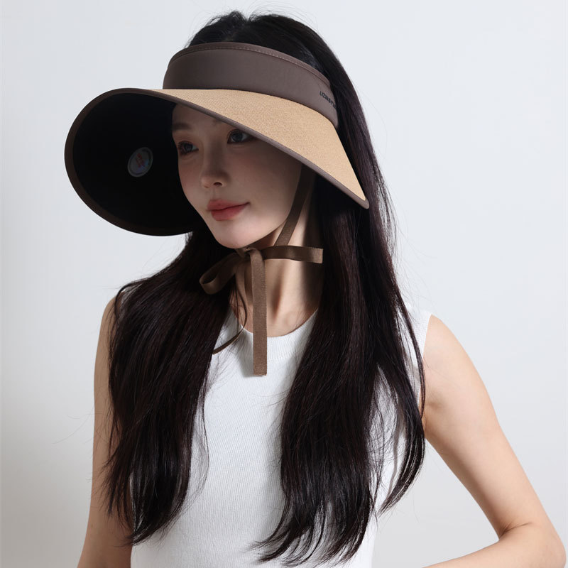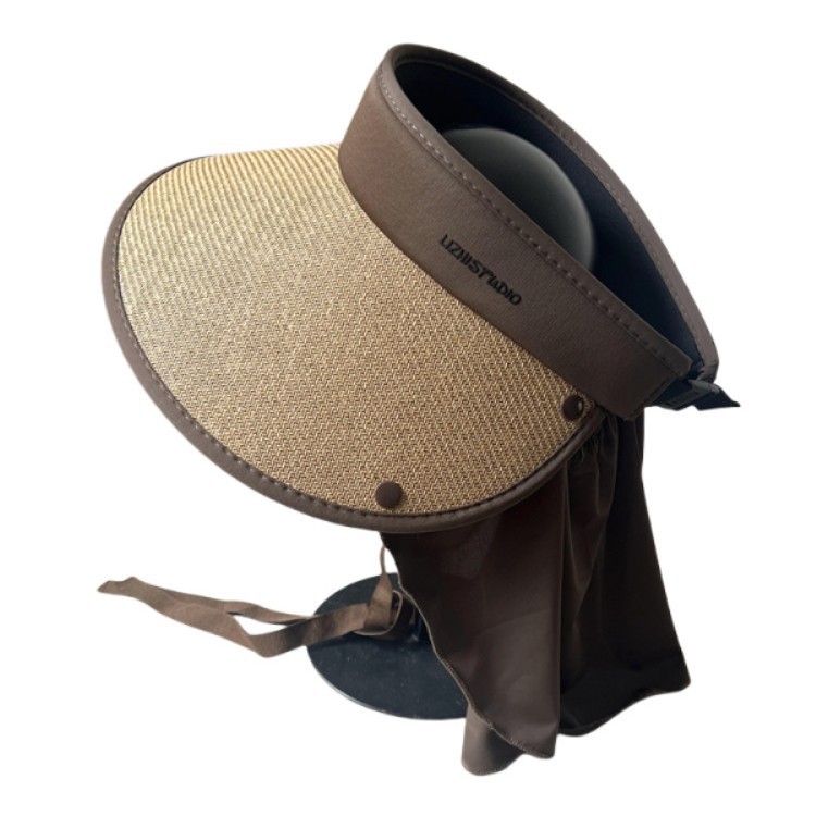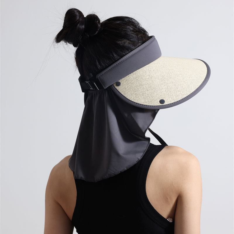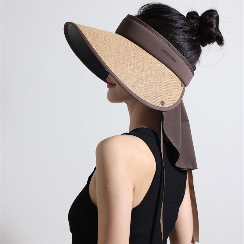 새로운 검은 접착제 모자 빈 최고 패션 트렌드 큰 브림 햇빛 태양 보호 목 보호 밀짚 모자 UV 보호 태양 모자