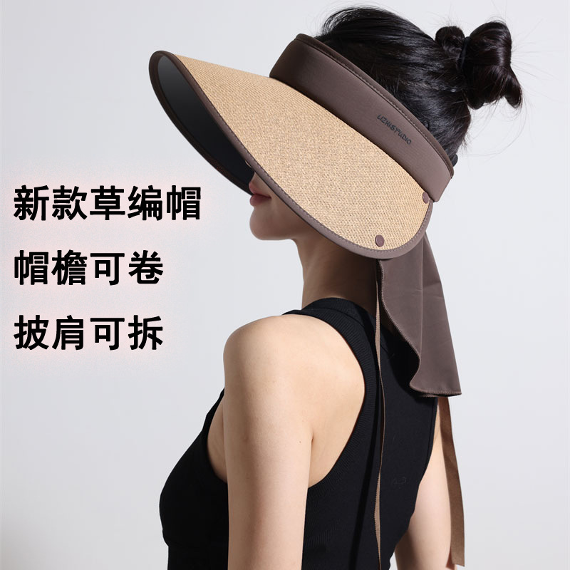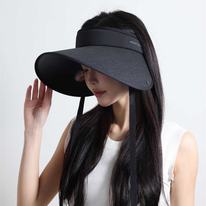 새로운 검은 접착제 모자 빈 최고 패션 트렌드 큰 브림 햇빛 태양 보호 목 보호 밀짚 모자 UV 보호 태양 모자스토어 가기