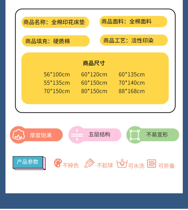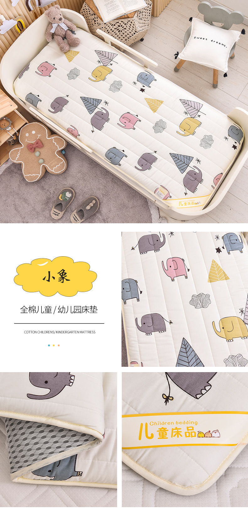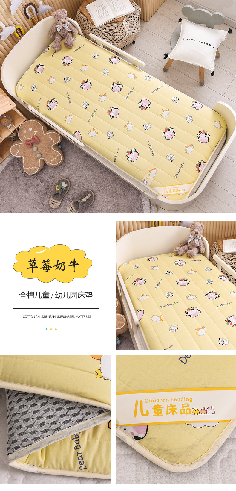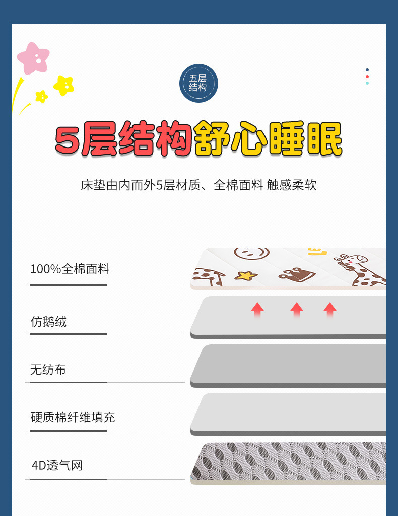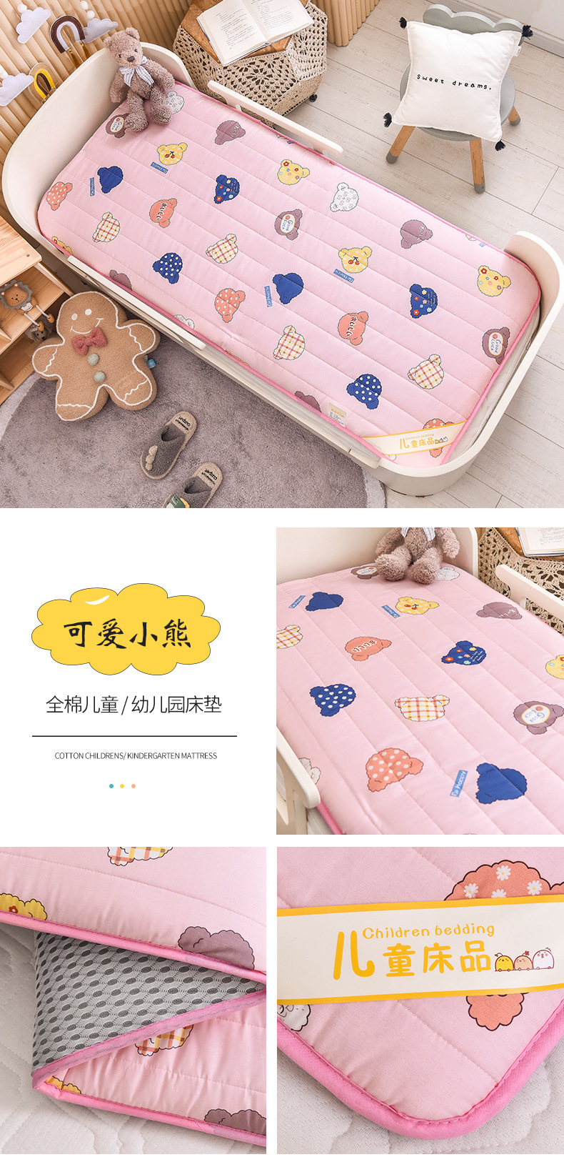 2025加厚全棉婴儿童床垫被A类100纯棉幼儿园宝宝可拆洗铺底床褥婴儿床垫子