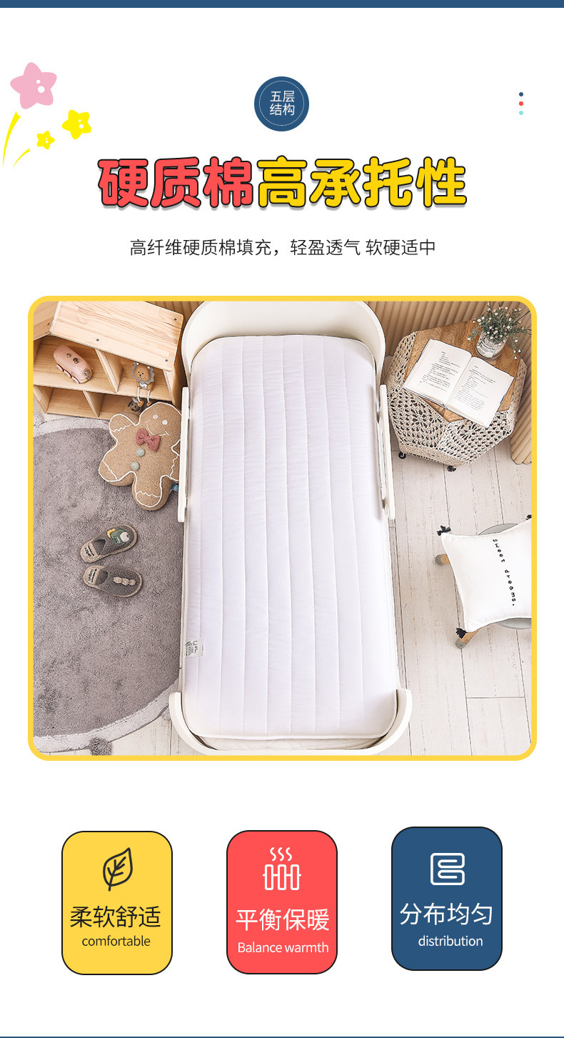 2025 두꺼운 면 아기 침대 쿠션 A100 면 유치원 아기 이동식 및 세탁 가능한 침구 매트리스 쿠션