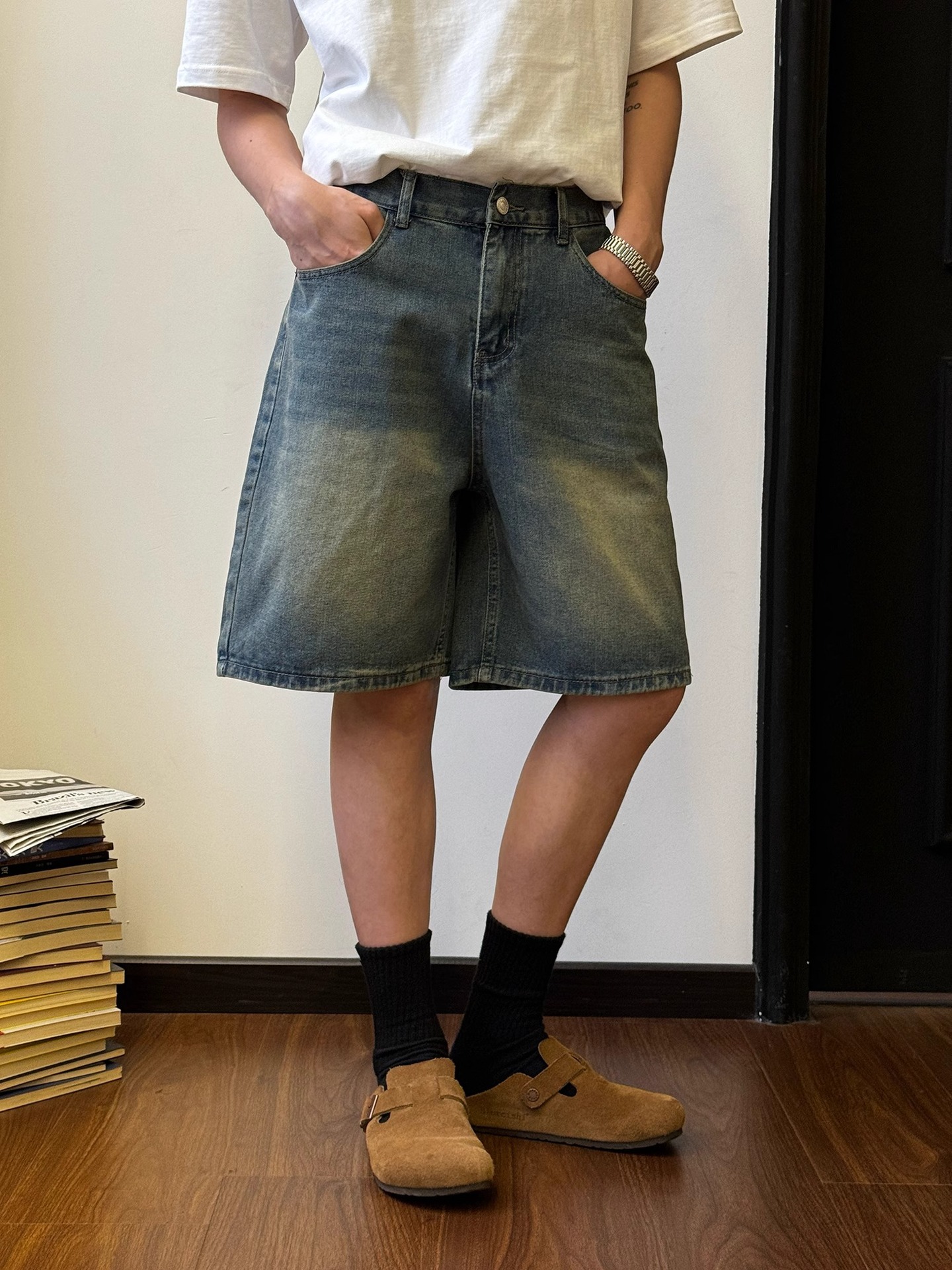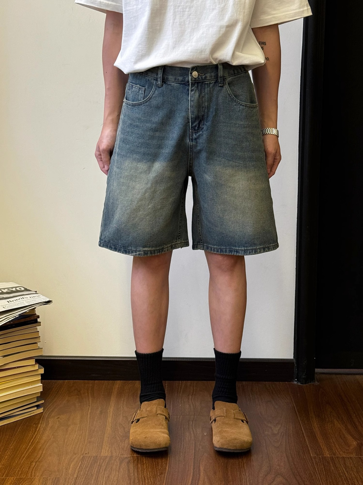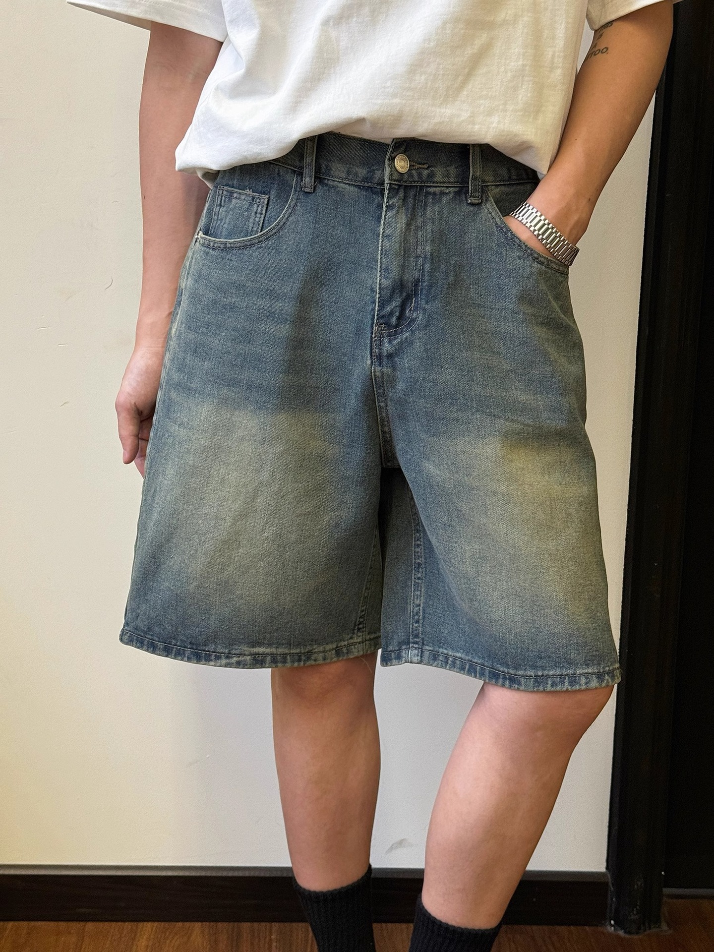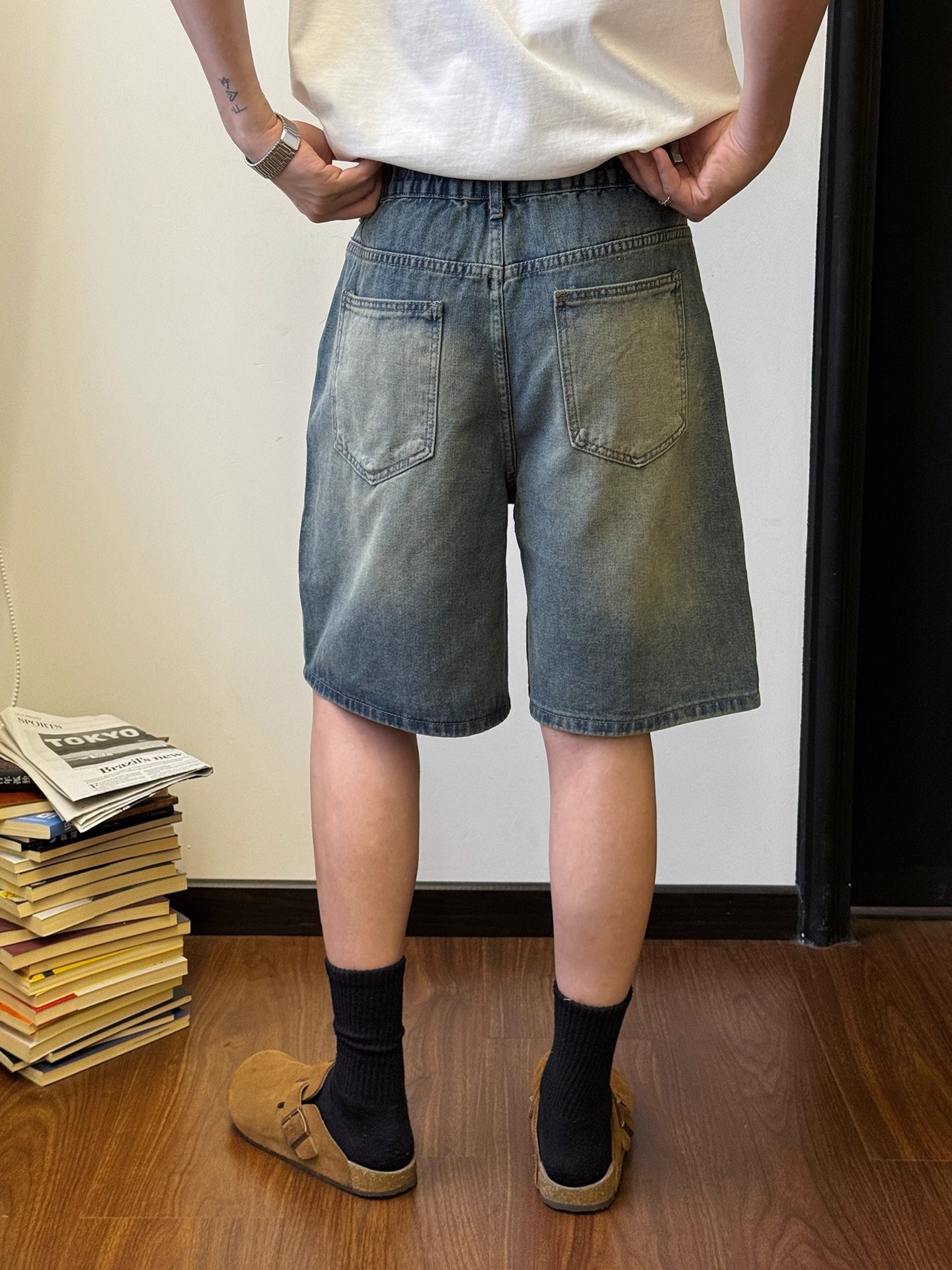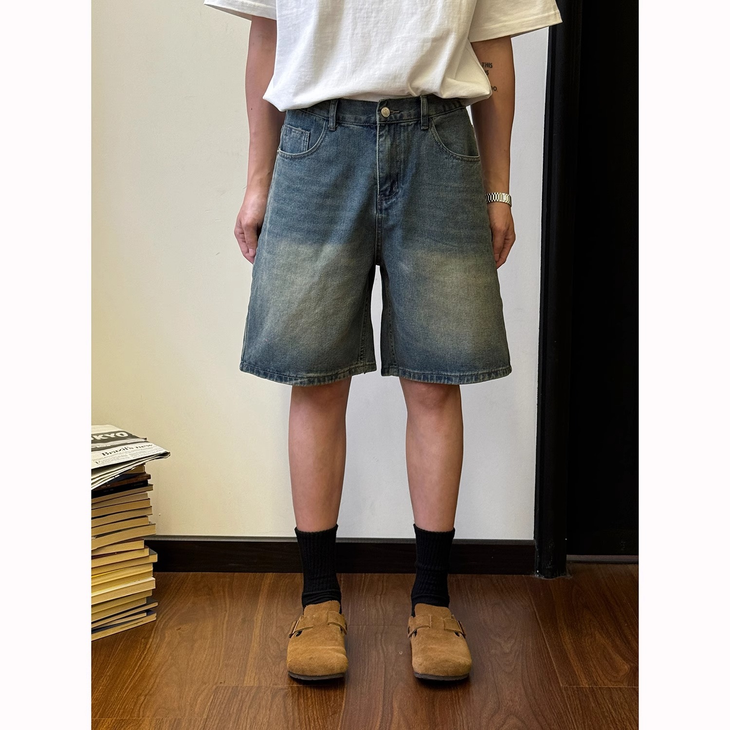 스트리트 레트로 캐주얼 데님 반바지 남자 2025 년 봄과 가을 새로운 느슨한 연속 올 매치 와이드 레그 반바지스토어 가기