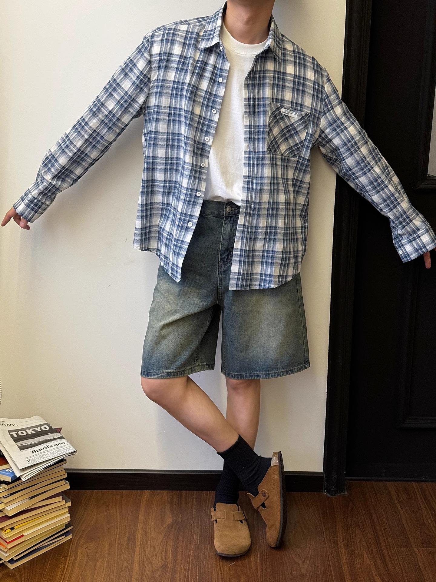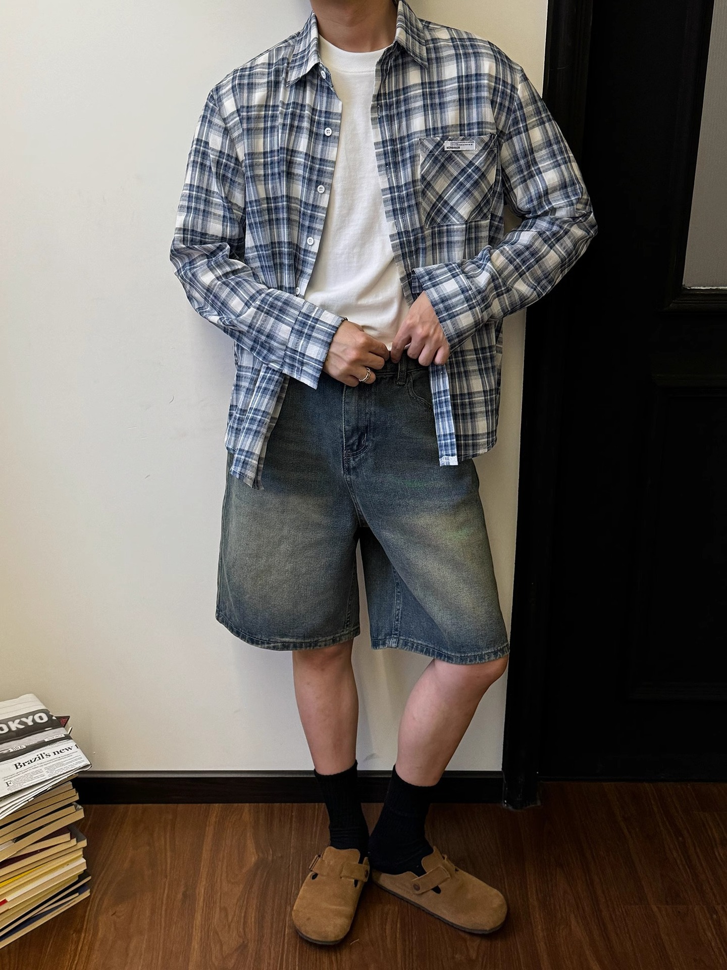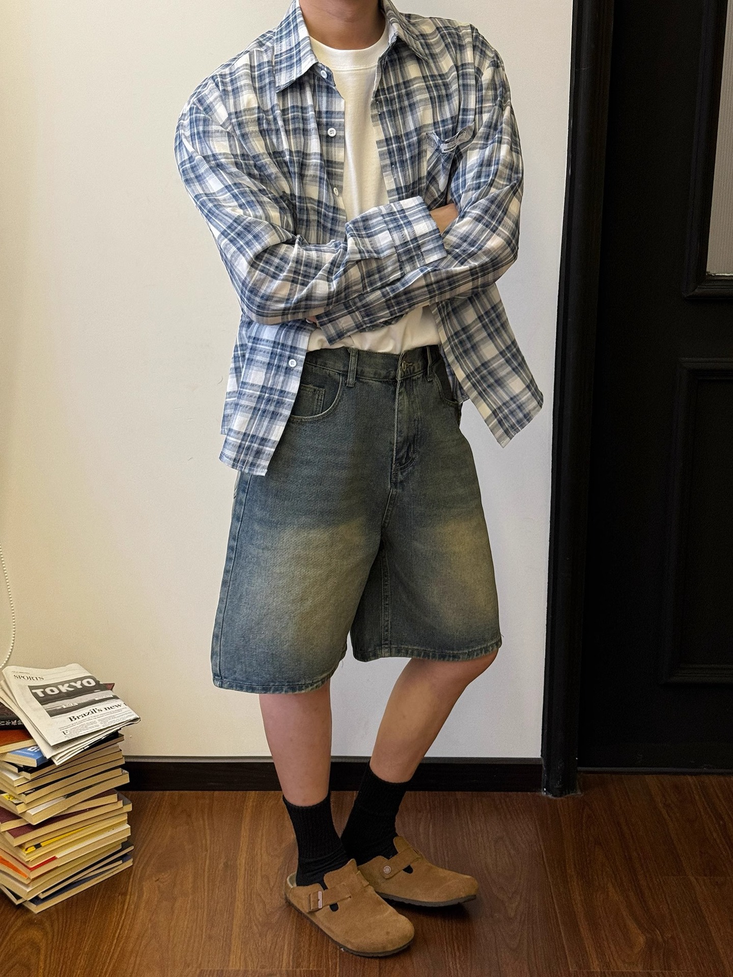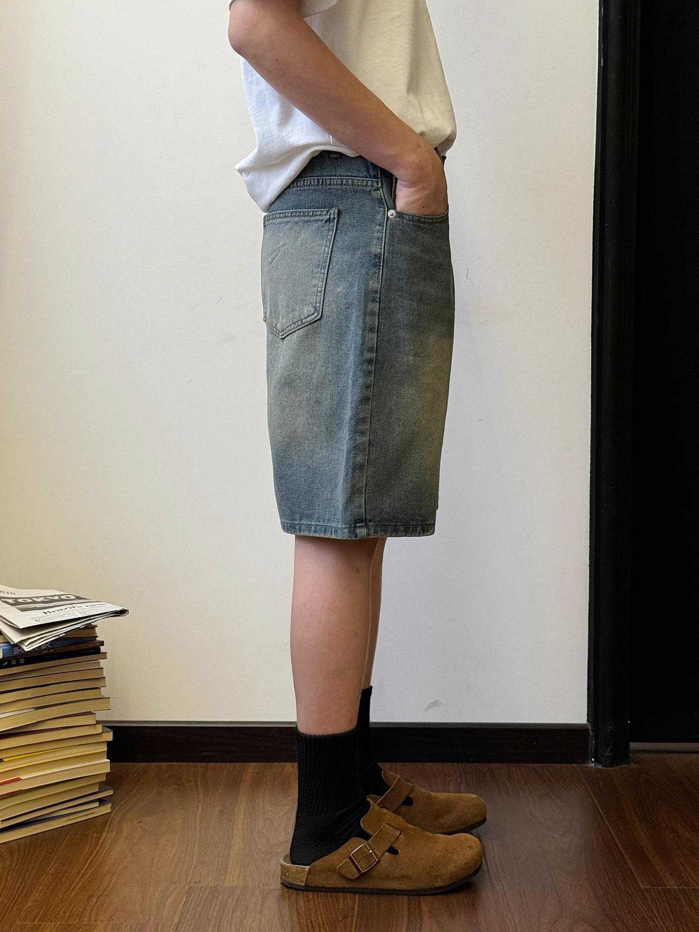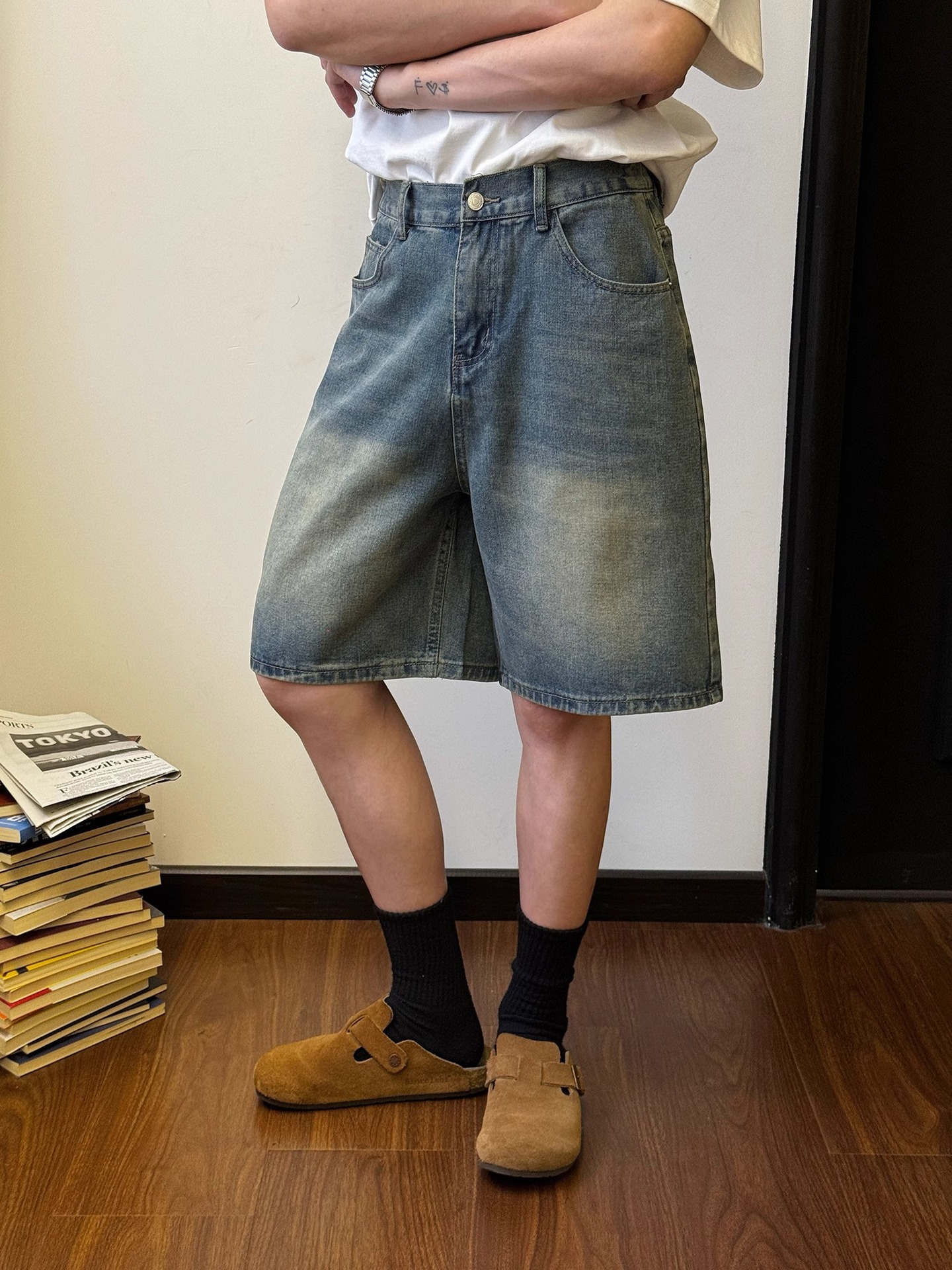 스트리트 레트로 캐주얼 데님 반바지 남자 2025 년 봄과 가을 새로운 느슨한 연속 올 매치 와이드 레그 반바지스토어 가기