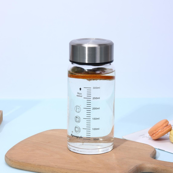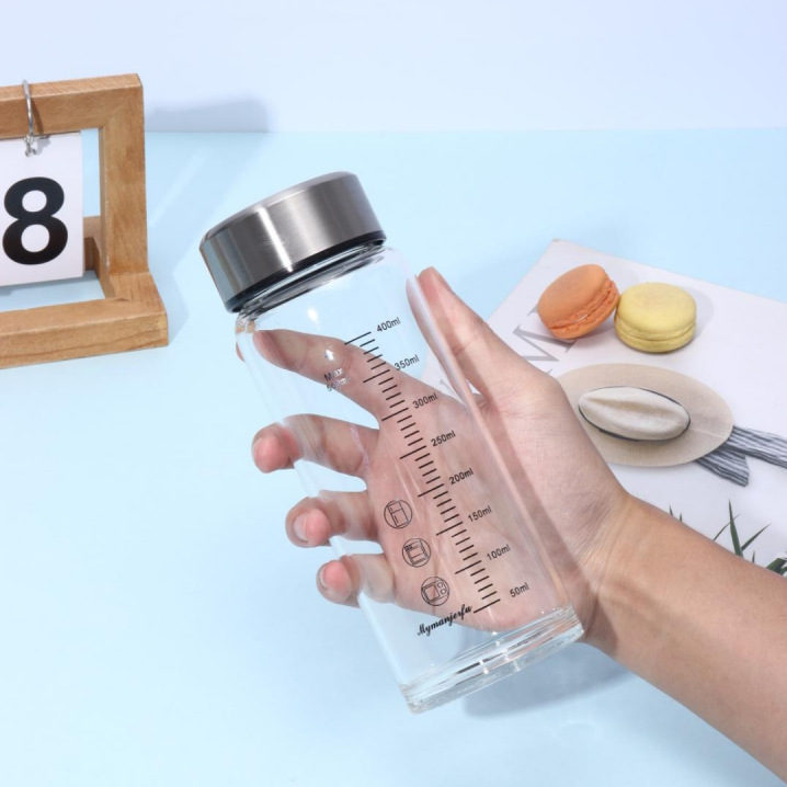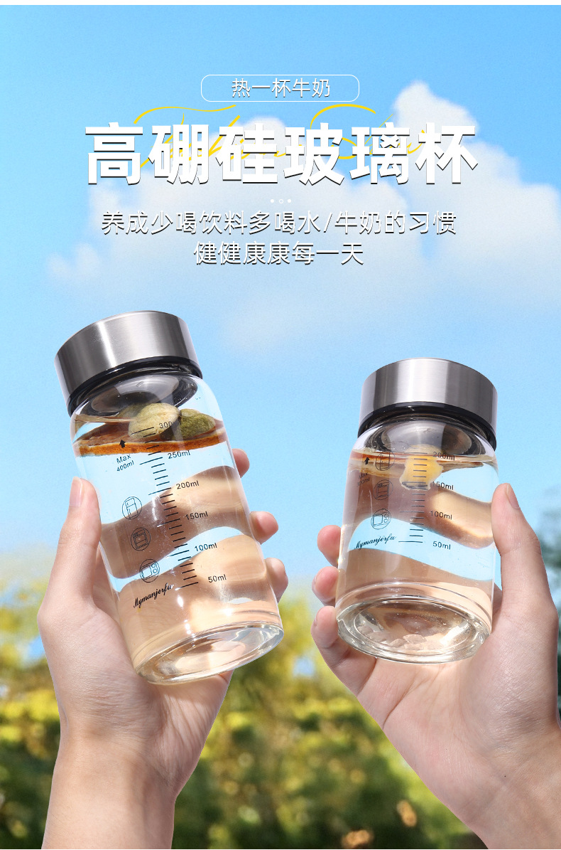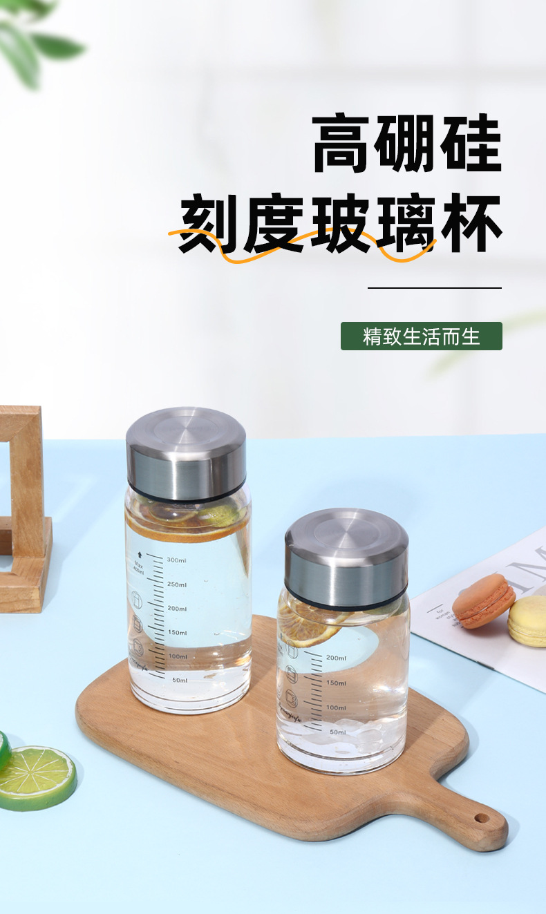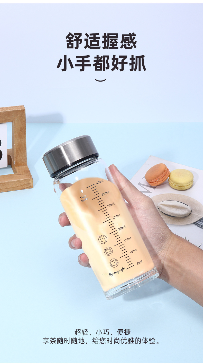 가정용 계량컵 휴대용 대용량 컵 학생용 물컵 심플한 고붕규산 유리컵 뚜껑이 있는 유리컵 우유컵
