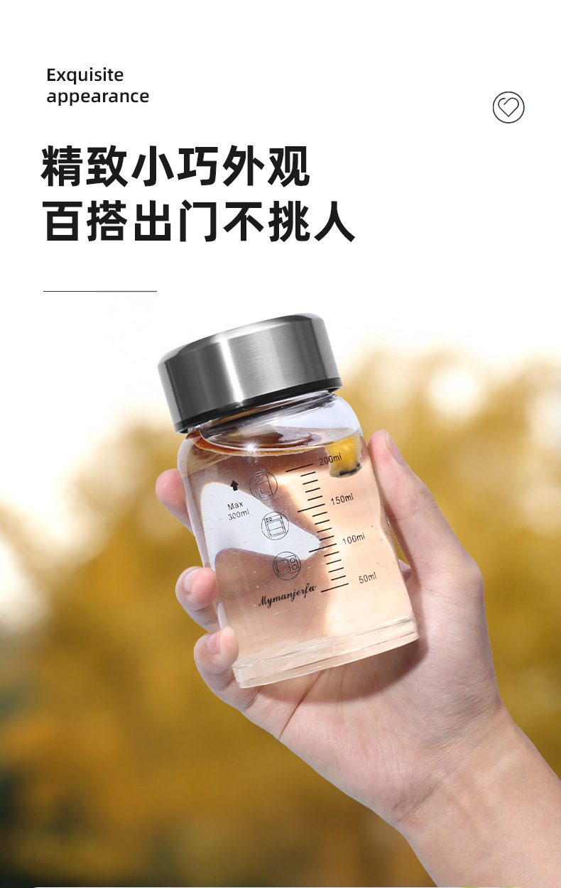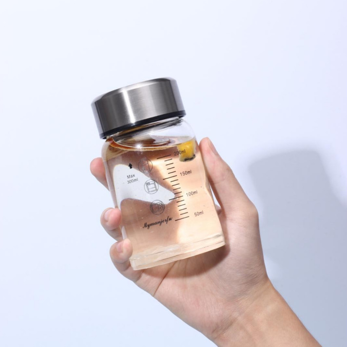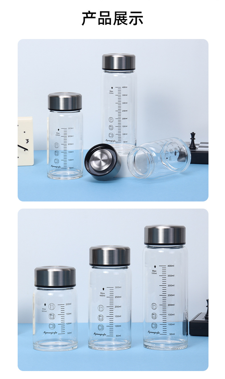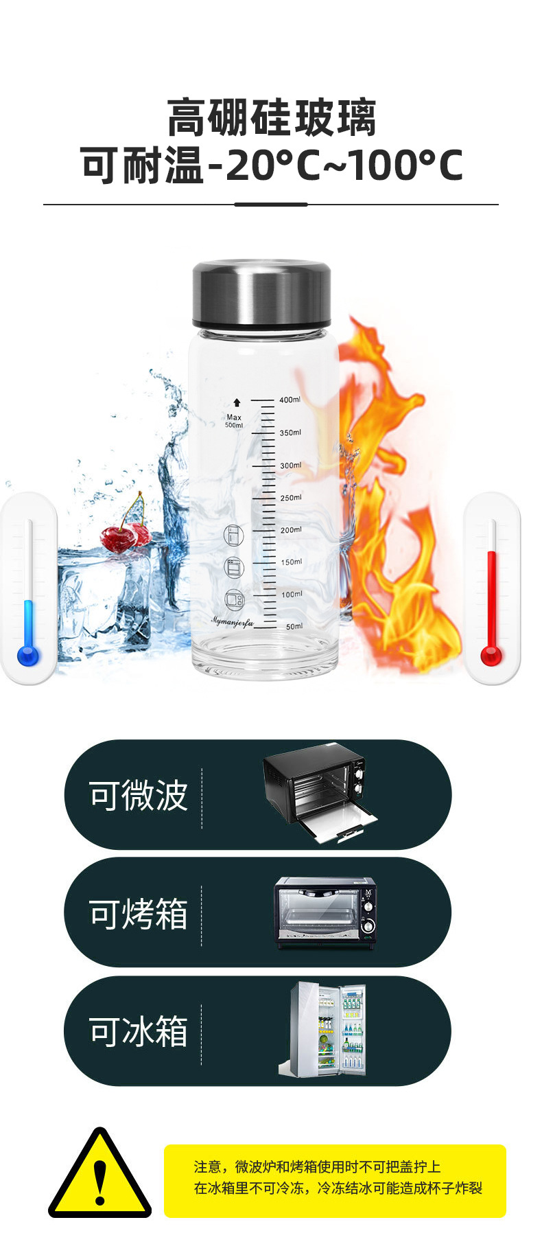 가정용 계량컵 휴대용 대용량 컵 학생용 물컵 심플한 고붕규산 유리컵 뚜껑이 있는 유리컵 우유컵