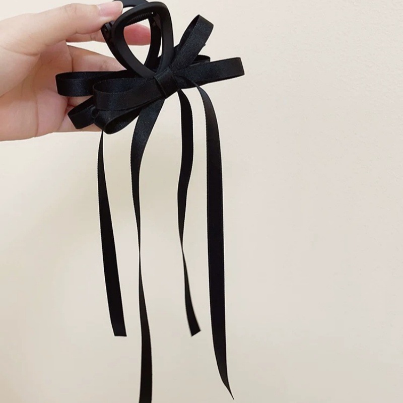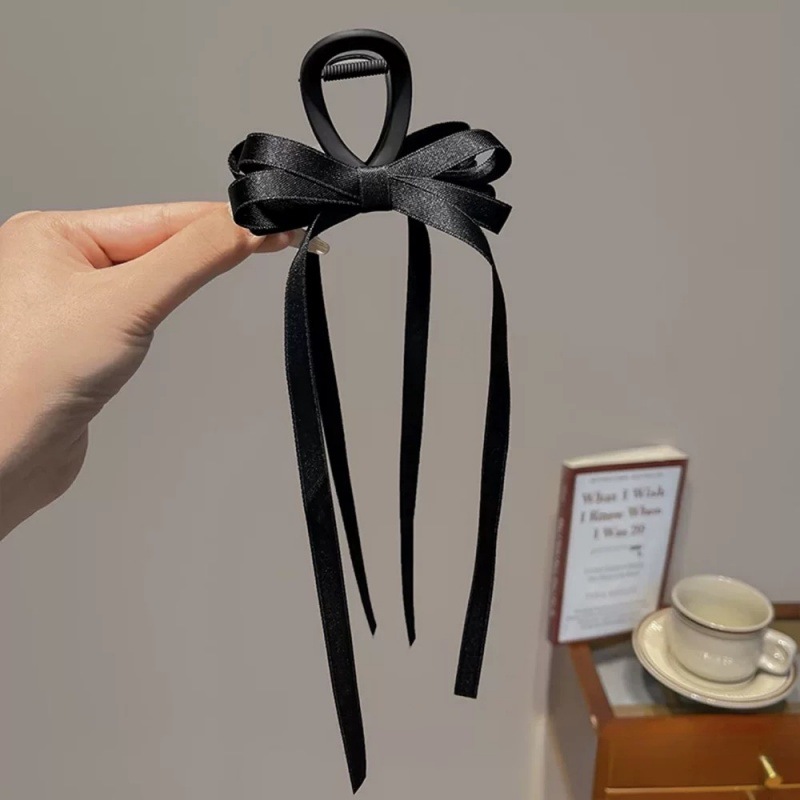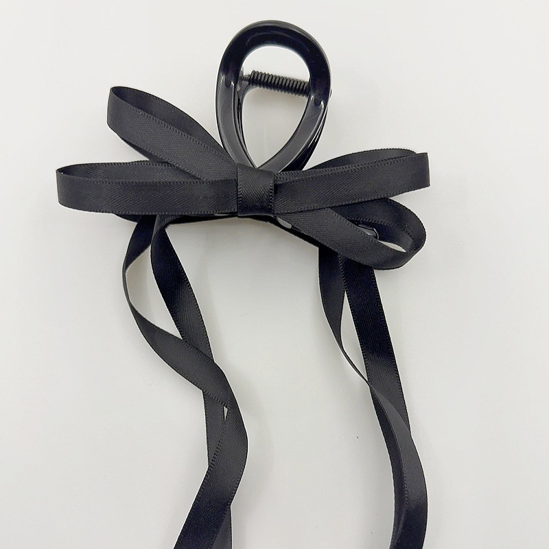 새로운 우아한 긴 리본 활 그랩 클립 다시 머리 높은 감각 빨간 머리 상어 클립 헤어핀 헤드웨어