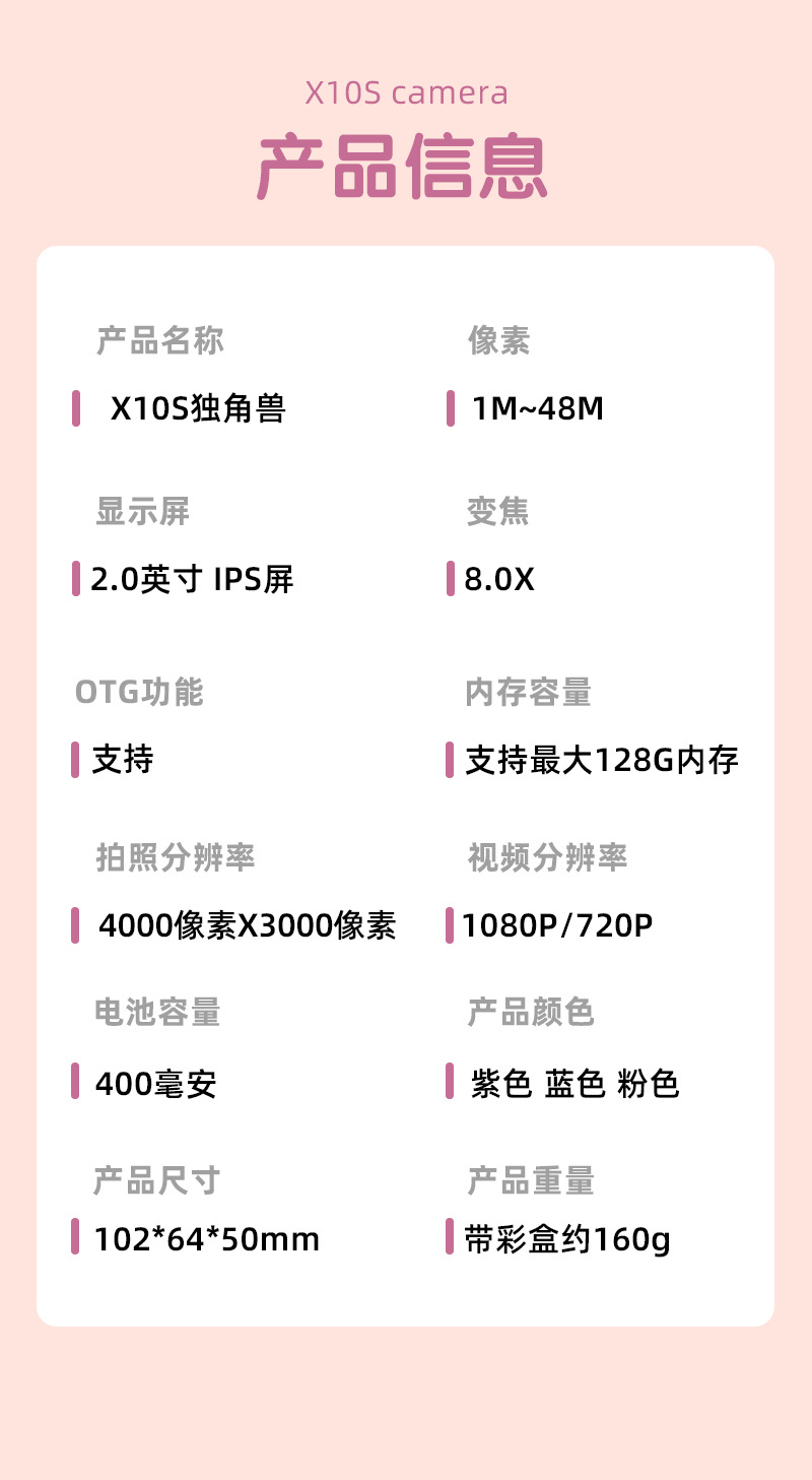 국경 새로운 X10S HD 더블 카메라 비디오 유니콘 디지털 카메라 장난감 선물 어린이 카메라스토어 가기