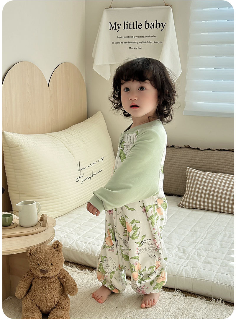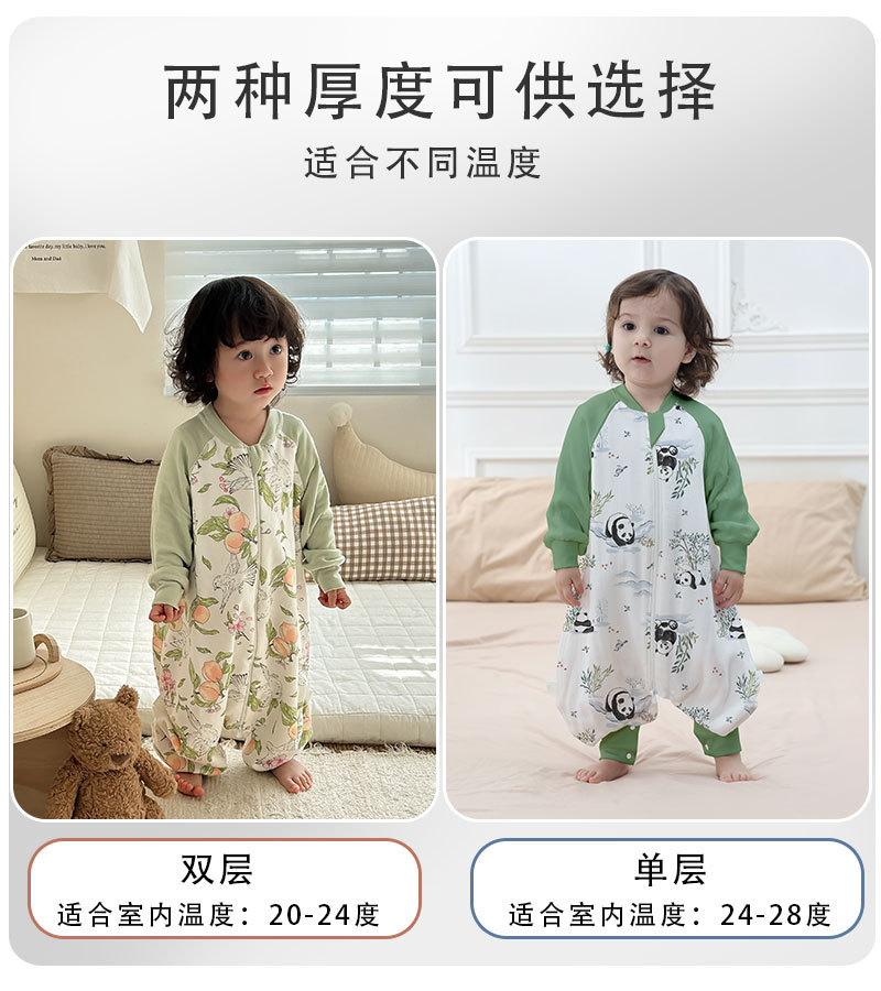 AEgtesol 어린이 더블 레이어 퓨어 코튼 슬리핑 백 아기의 봄과 여름 따뜻한 아기의 집 분할 다리 킥 방지 퀼트스토어 가기