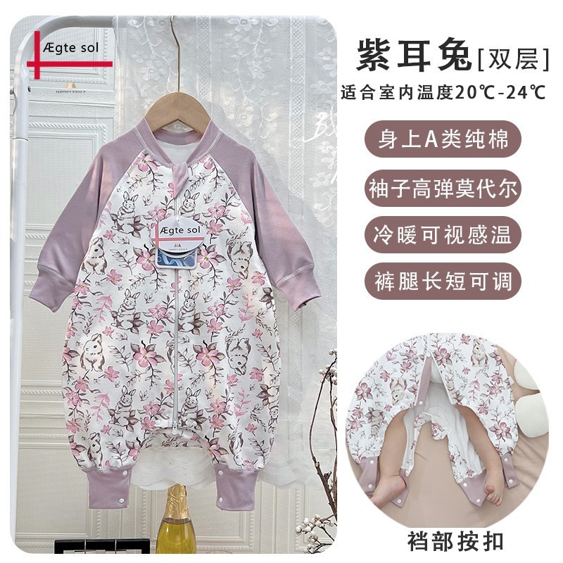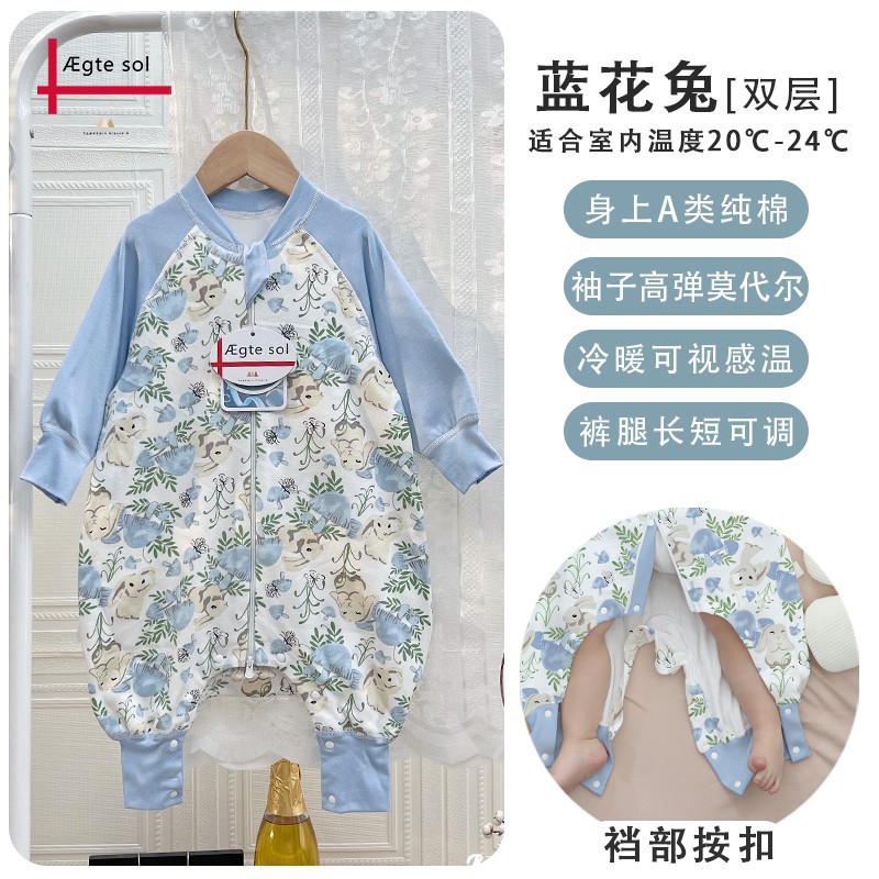 AEgtesol 어린이 더블 레이어 퓨어 코튼 슬리핑 백 아기의 봄과 여름 따뜻한 아기의 집 분할 다리 킥 방지 퀼트
