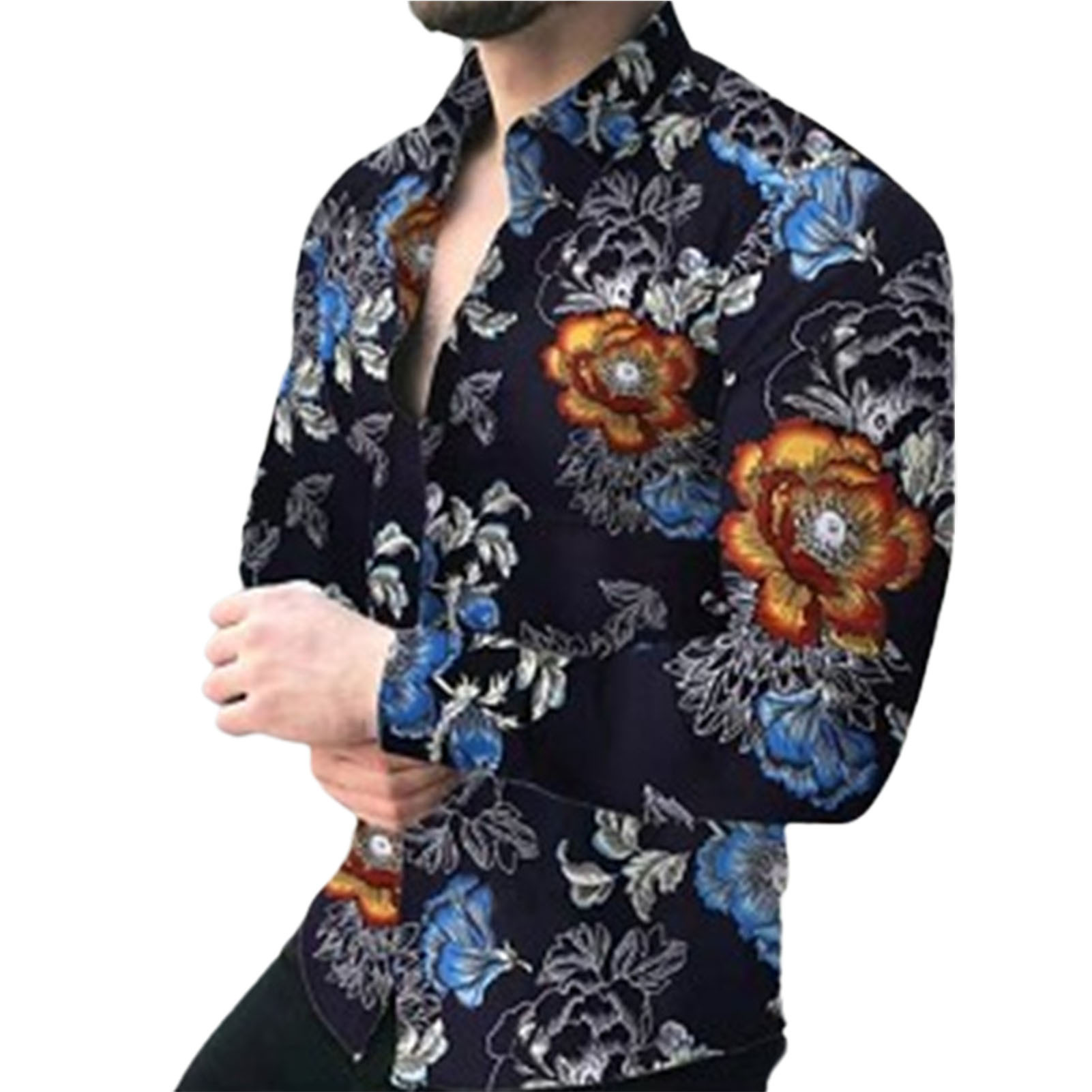 2025 새로운 스타일 프린트 셔츠 레트로 스타일 카디건 옷깃 남성 셔츠 매일 캐주얼 셔츠스토어 가기