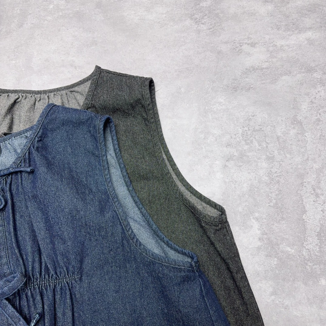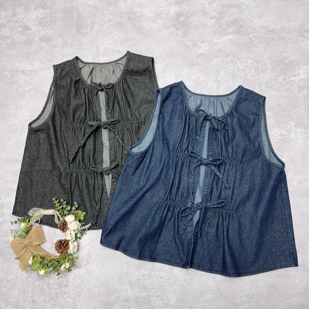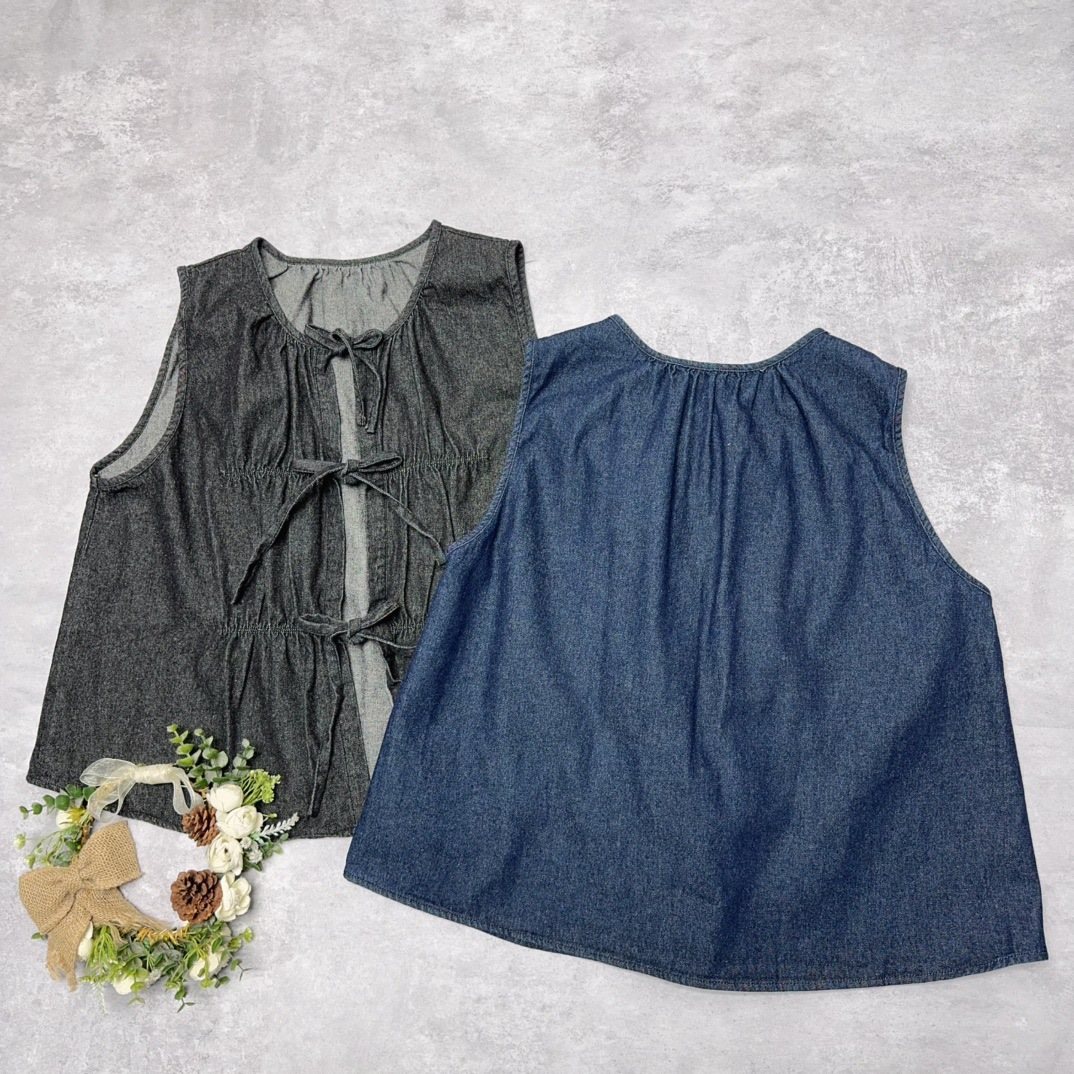 일본 데님 레이스 업 조끼 예술적 복고풍 레이스 업 디자인 센스 루즈 올 매치 레이스 업 조끼스토어 가기