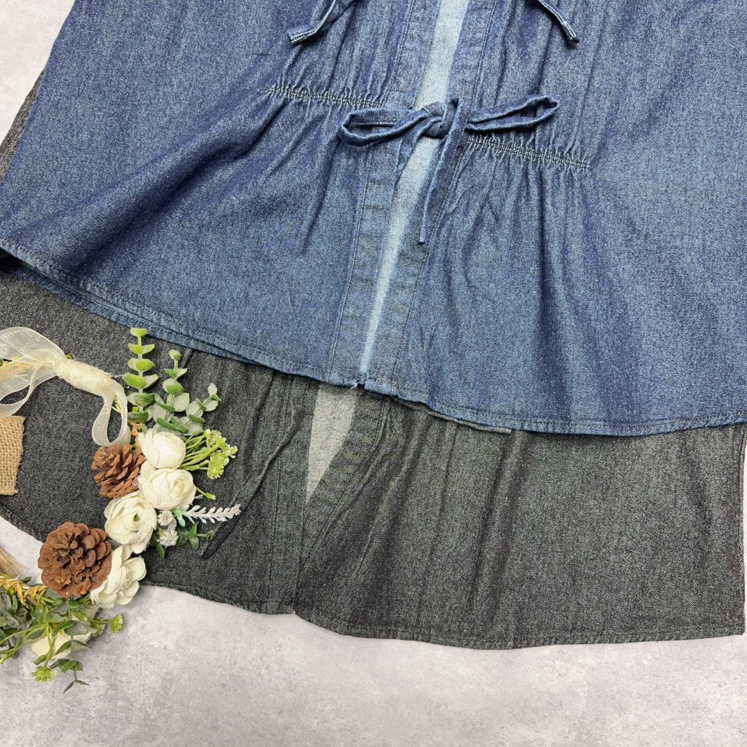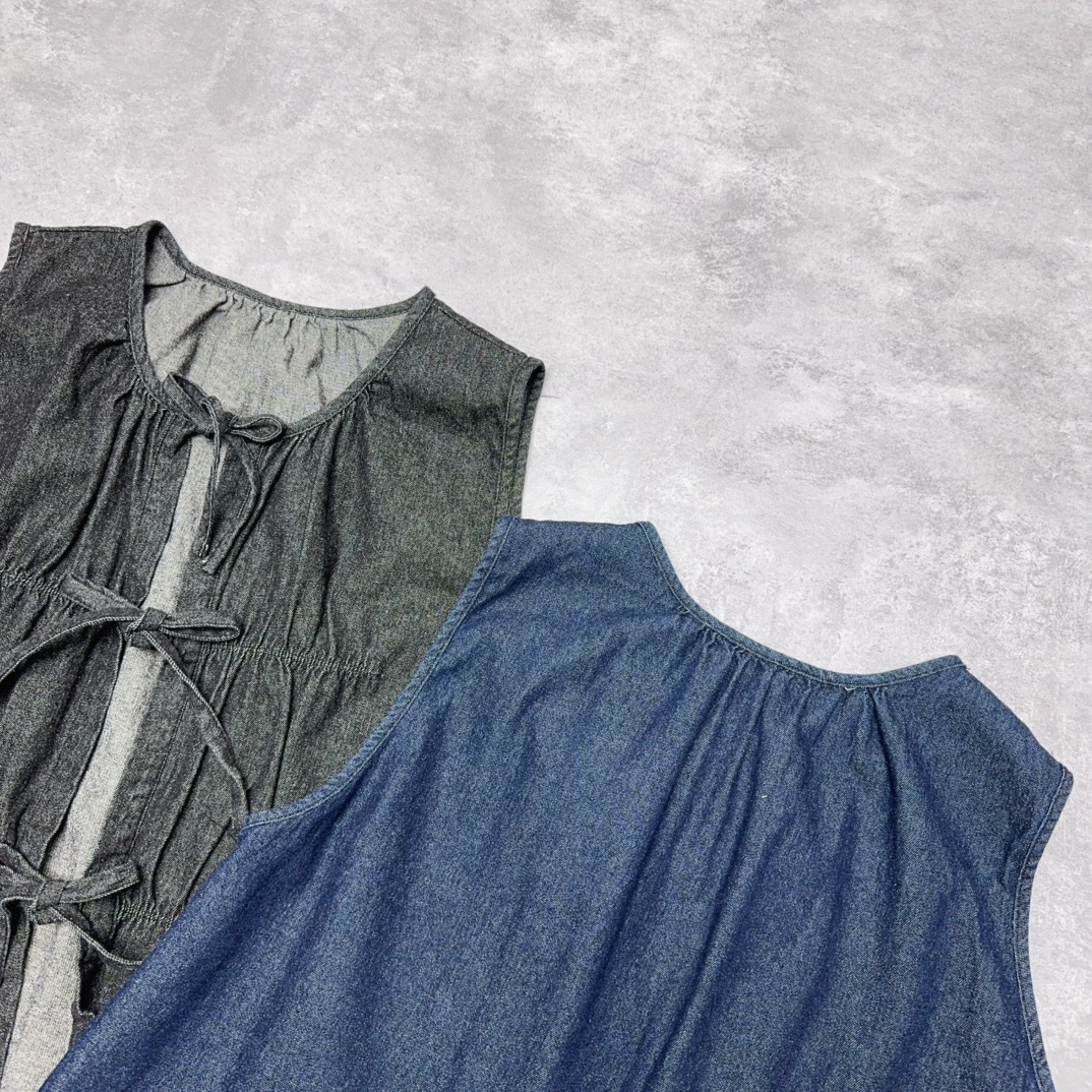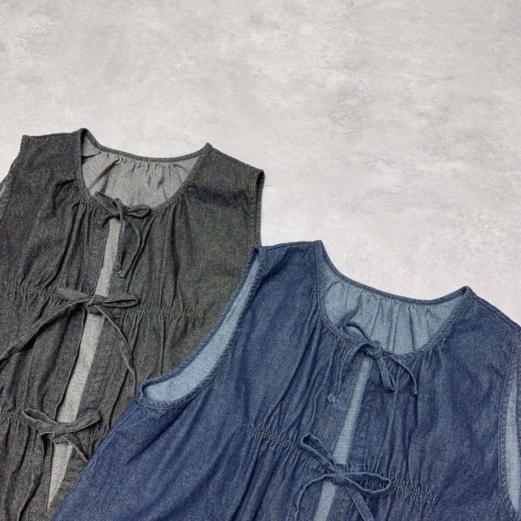 일본 데님 레이스 업 조끼 예술적 복고풍 레이스 업 디자인 센스 루즈 올 매치 레이스 업 조끼스토어 가기