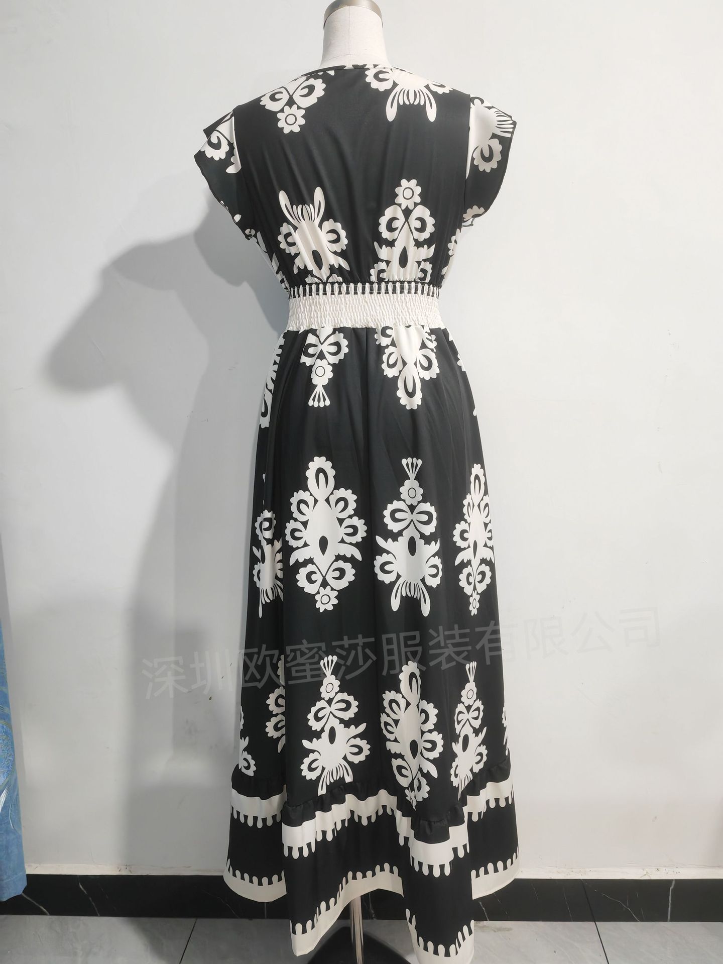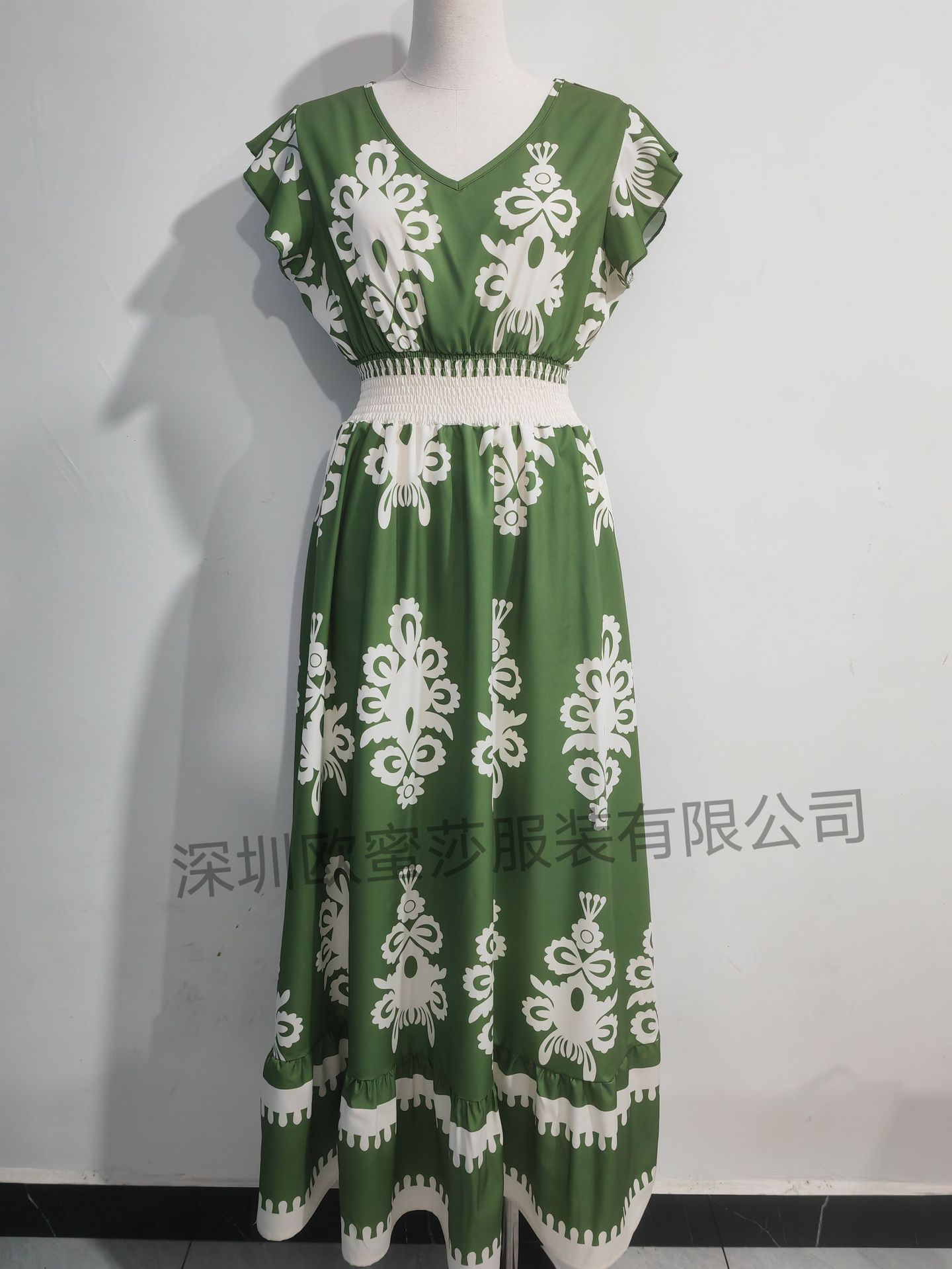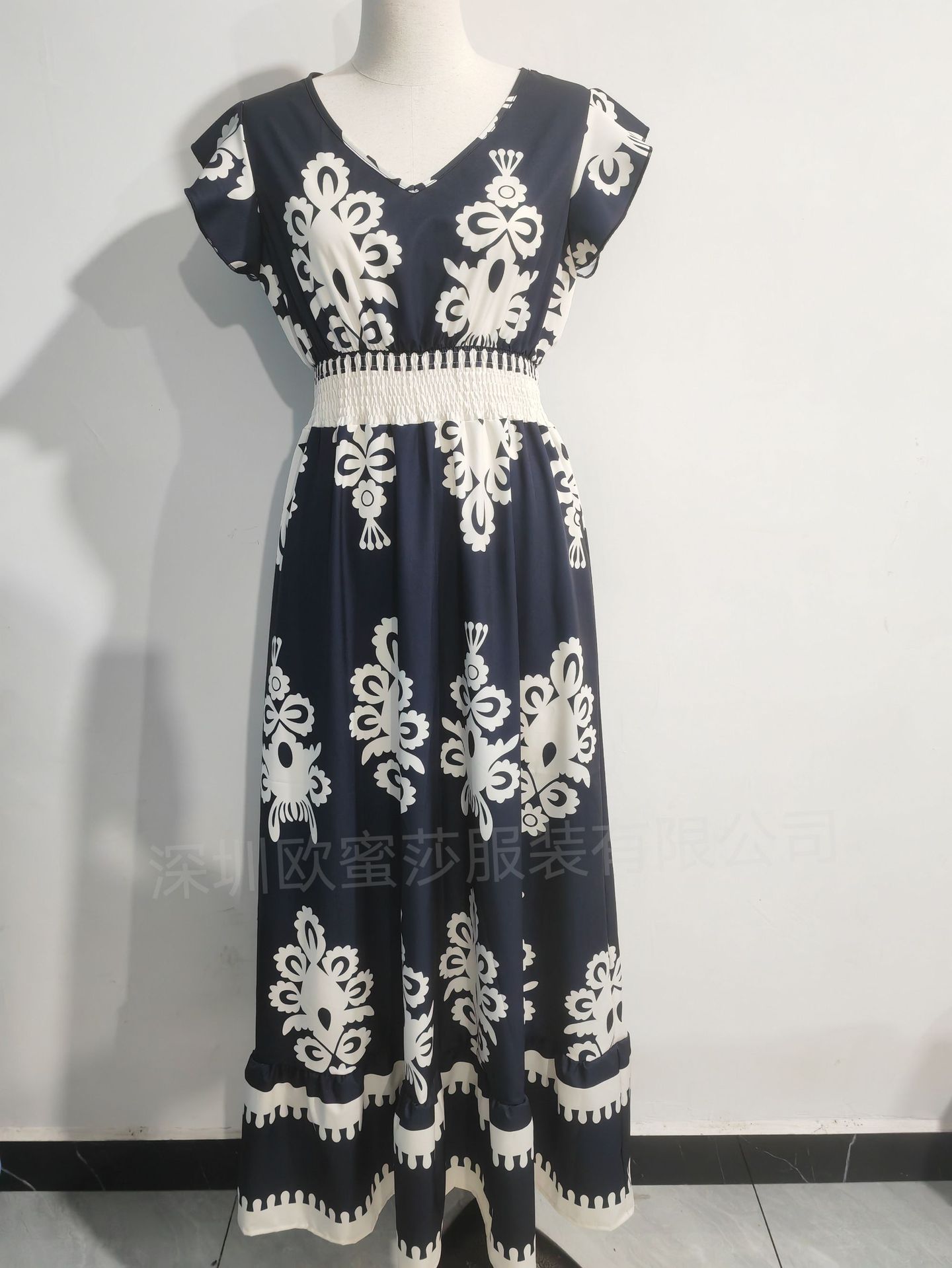 2025 국경 유럽 및 미국 봄과 여름 새로운 대외 무역 여성 휴가 비치 스커트 인쇄 V 칼라 대형 원피스스토어 가기