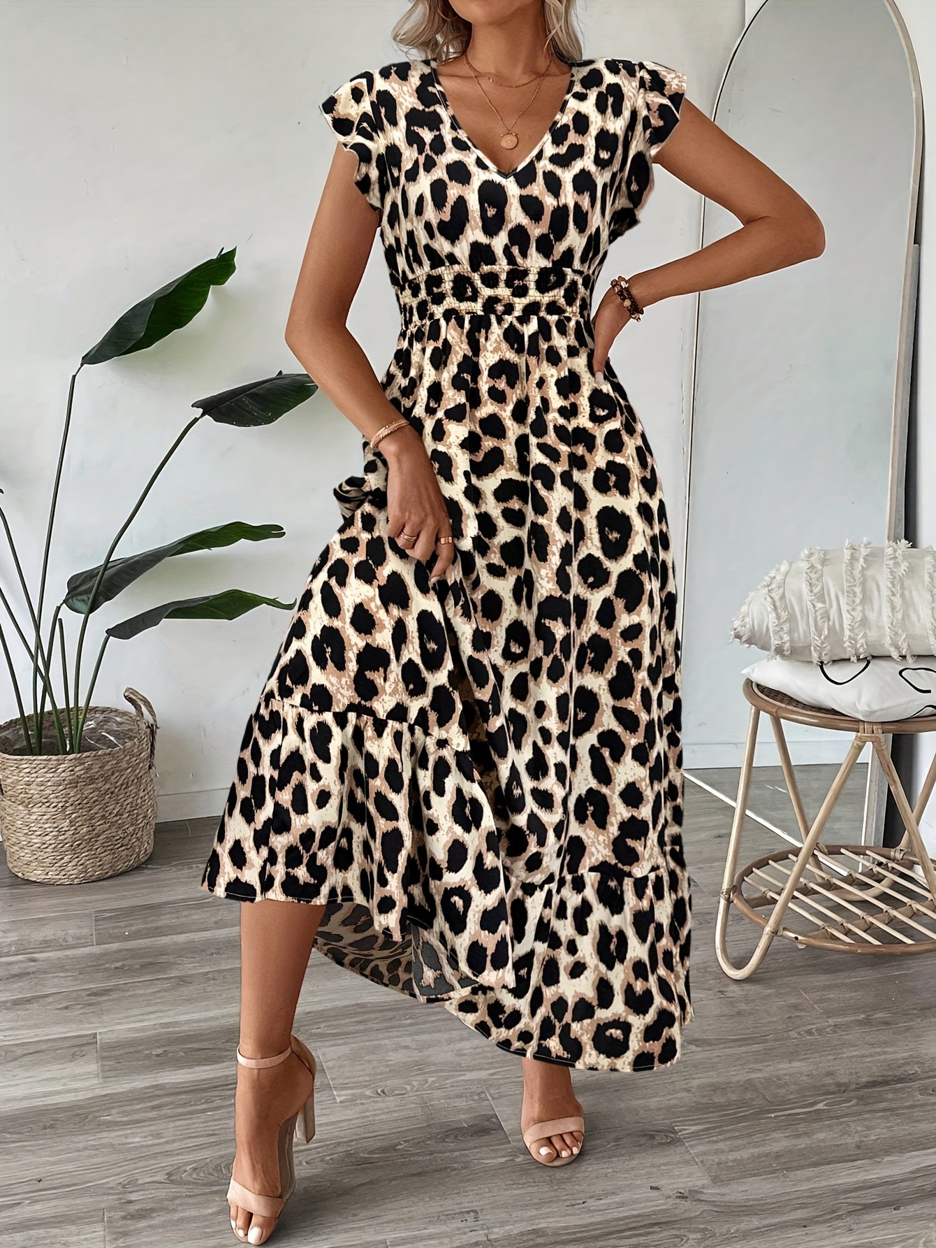 • 카키색 레오파드 프린트