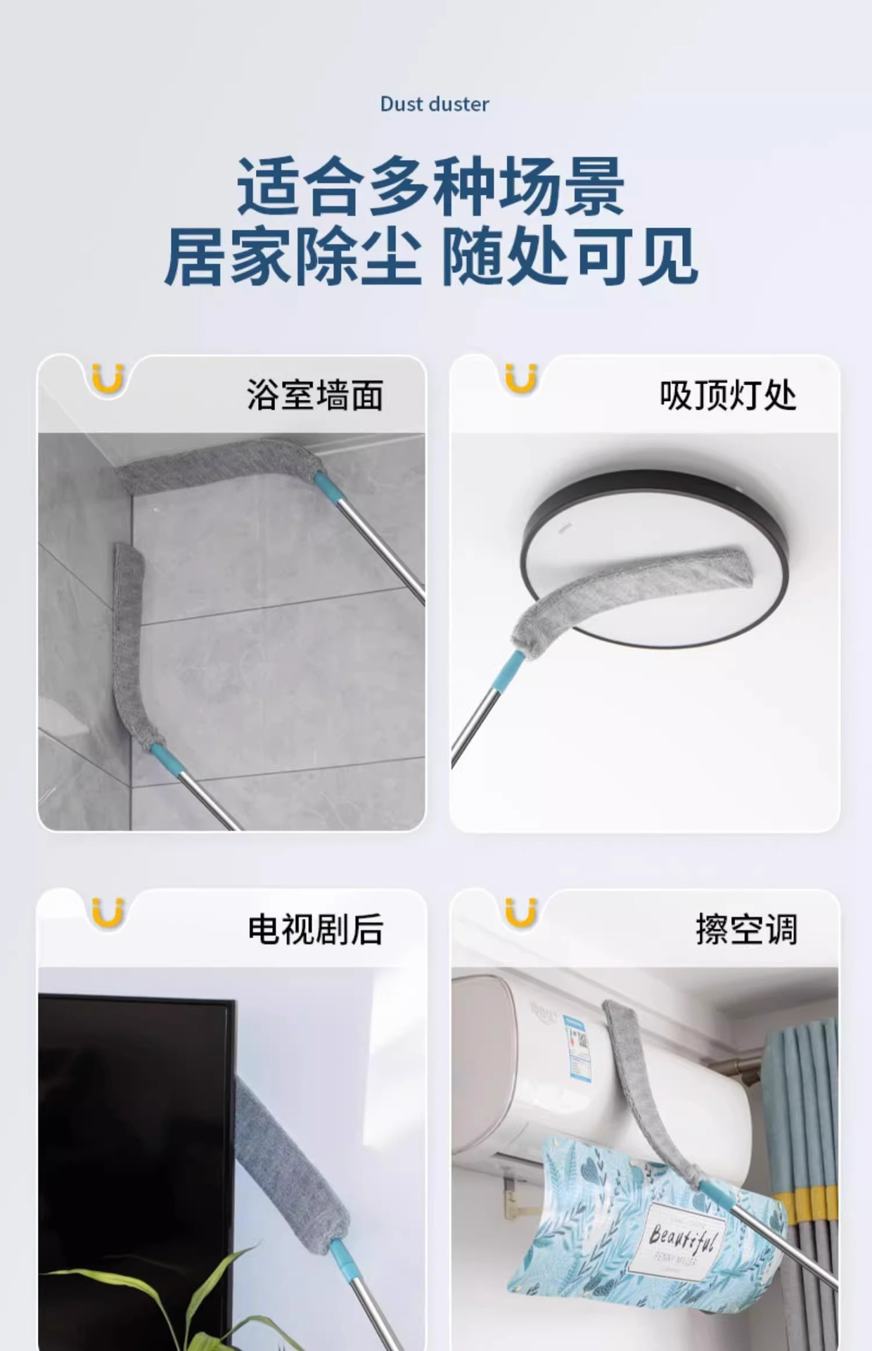 침대 밑 청소용 가정용 먼지떨이 틈새 청소 신형 신축봉 초박형 대걸레 정전기 먼지 제거기