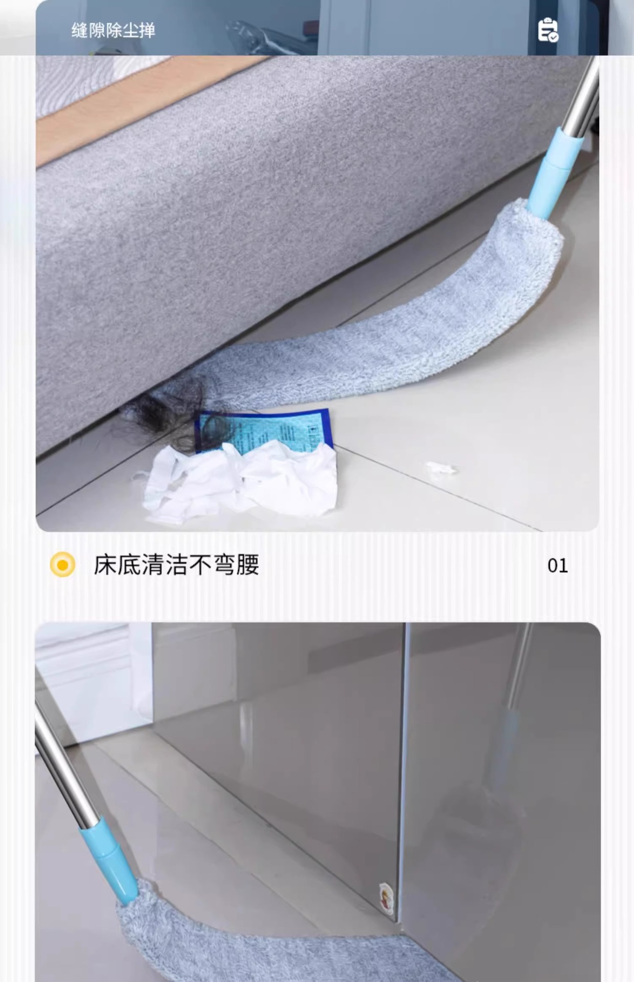 침대 밑 청소용 가정용 먼지떨이 틈새 청소 신형 신축봉 초박형 대걸레 정전기 먼지 제거기스토어 가기