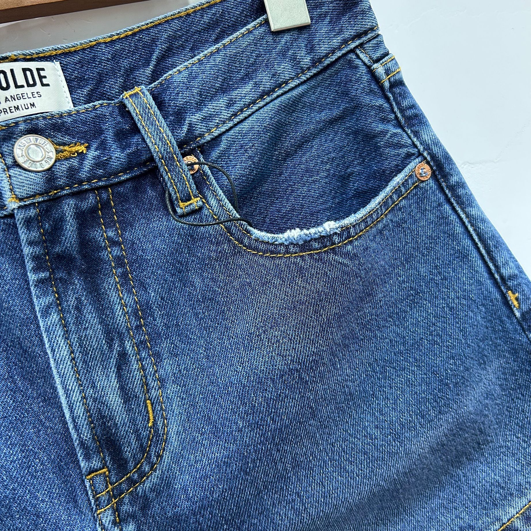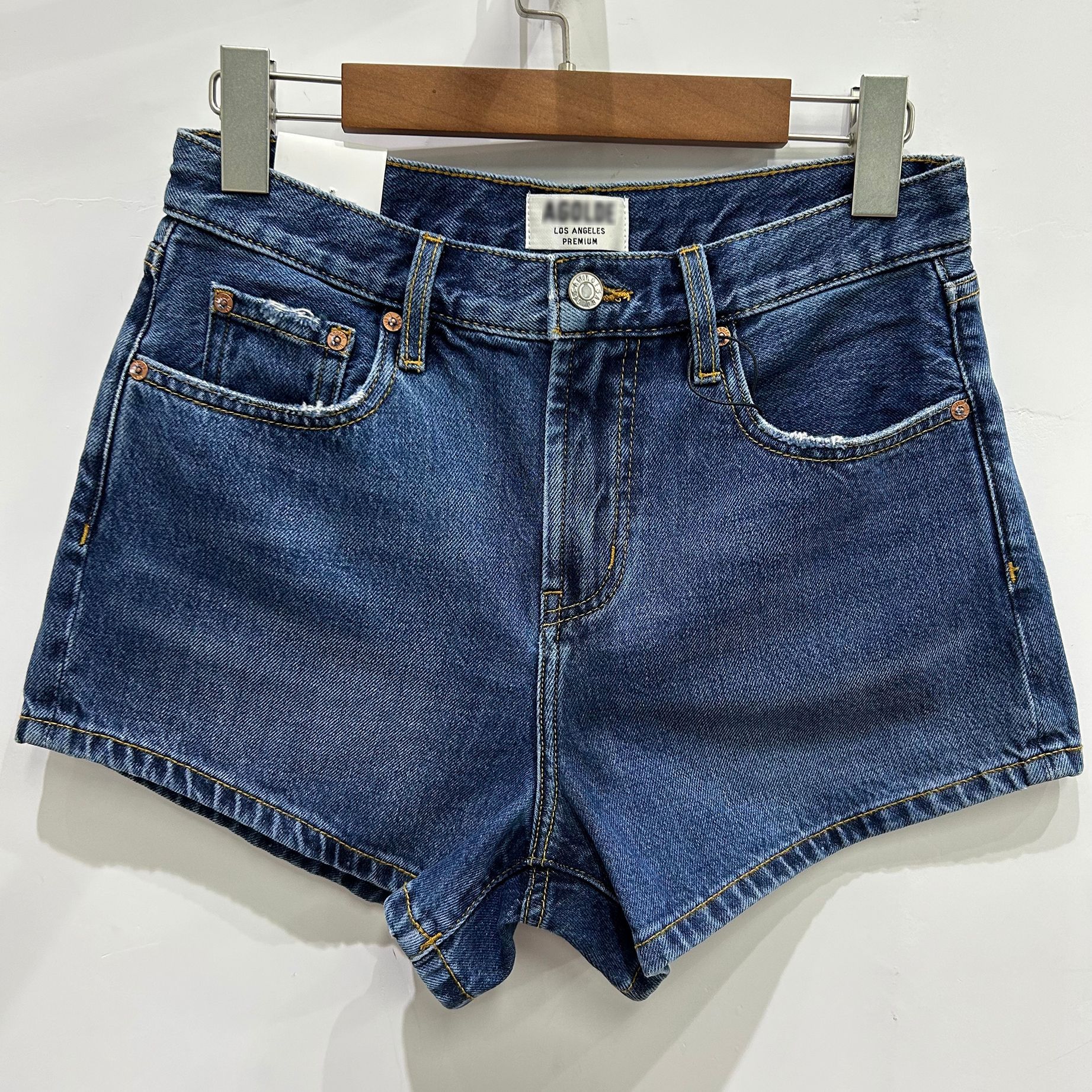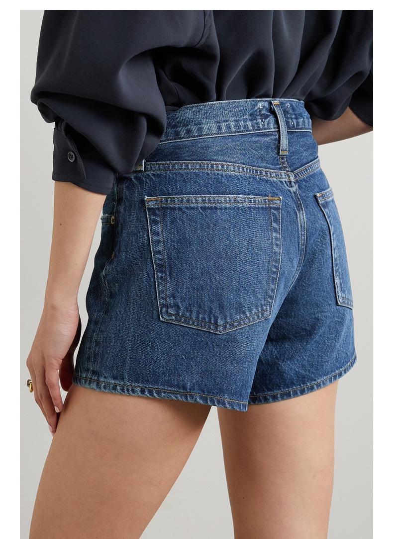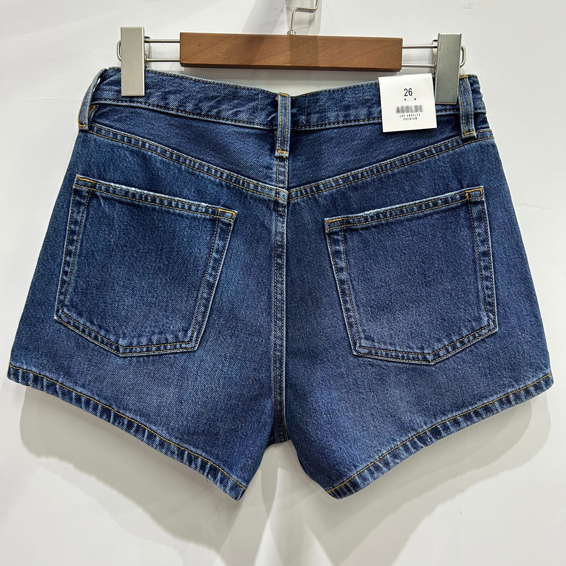 봄과 여름 2025 새로운 유럽과 미국의 AG Wu Qianyu Zheng Xiuyan, 다크 블루 높은 허리 착용 데님 반바지 여성스토어 가기