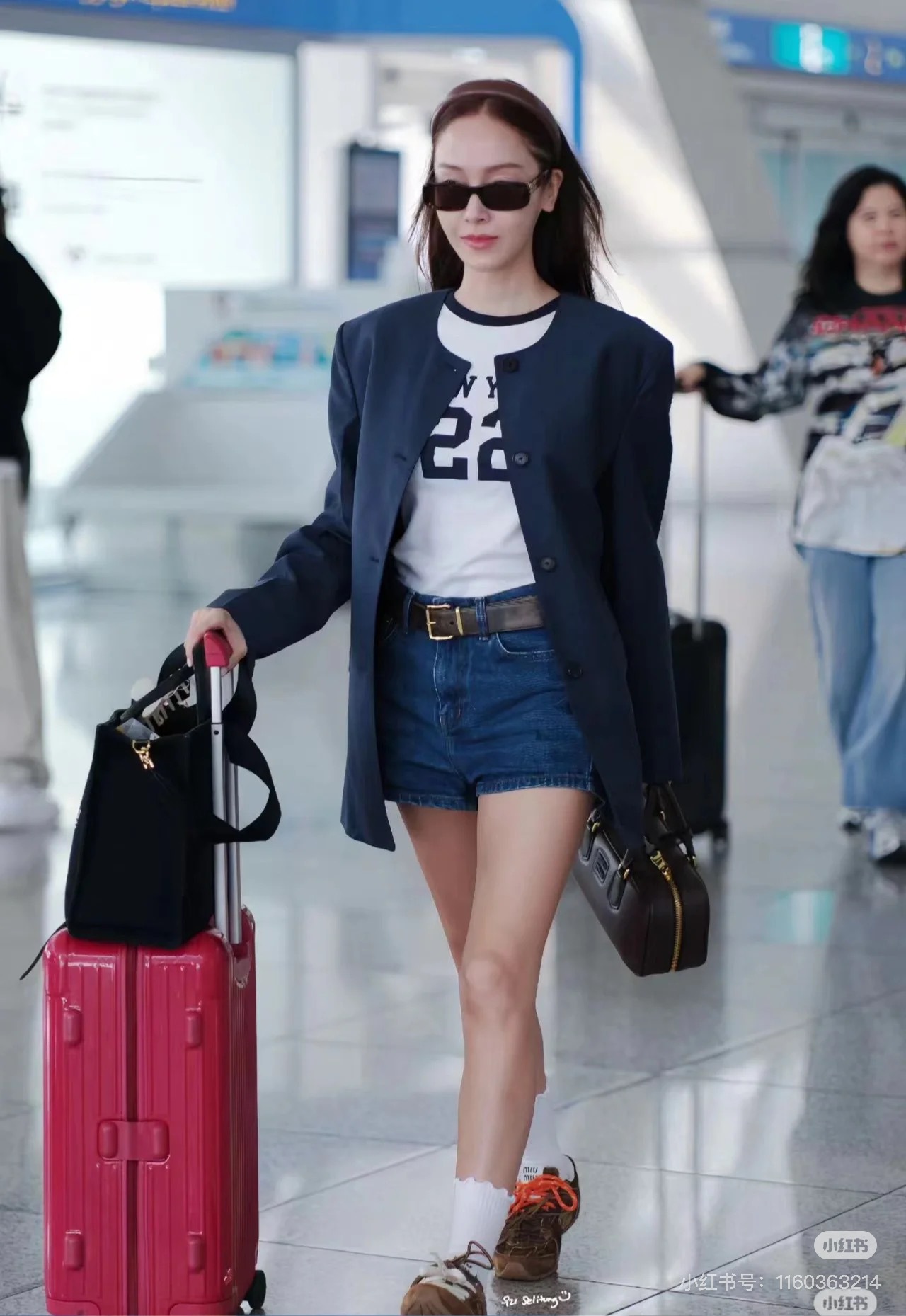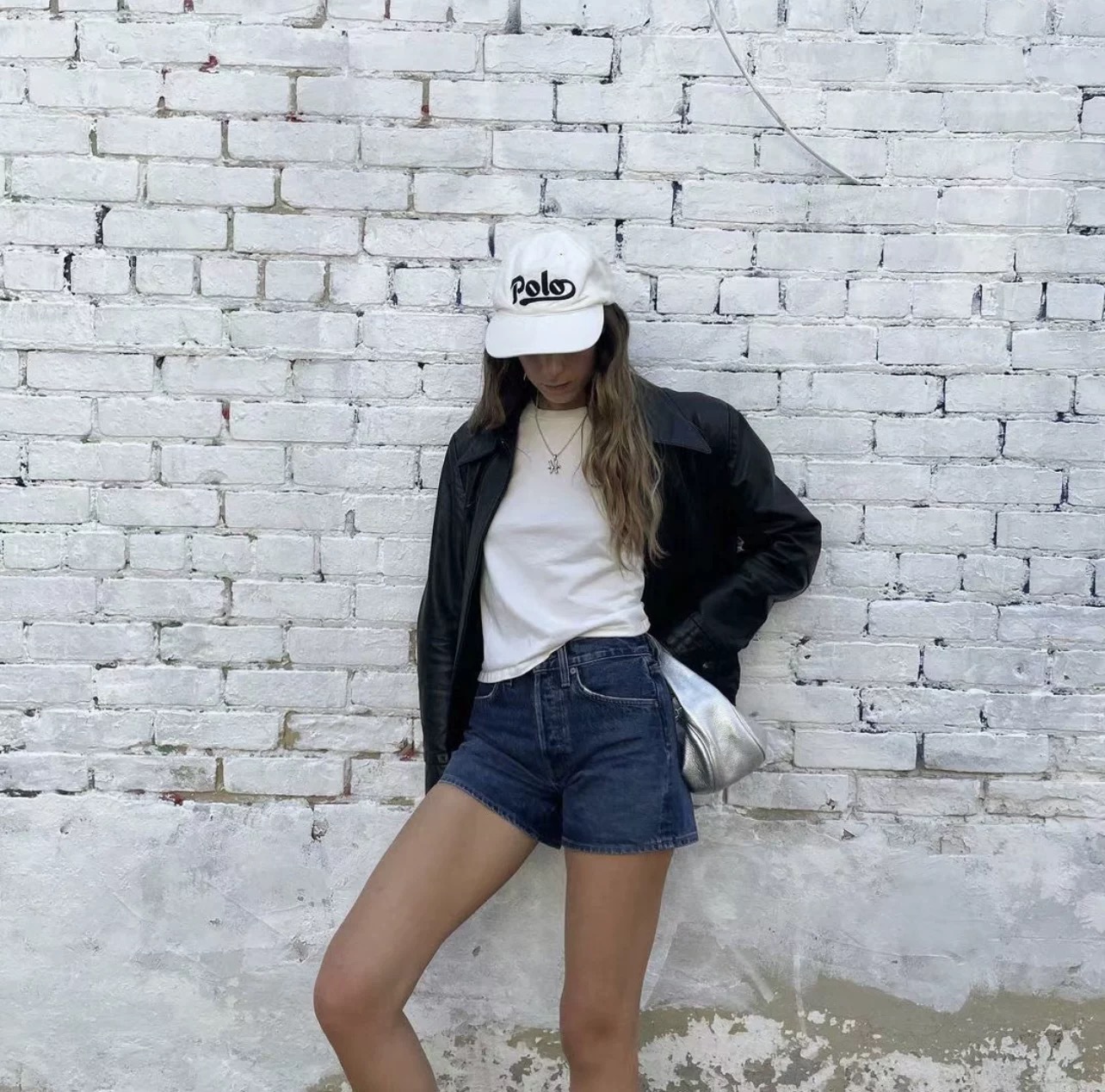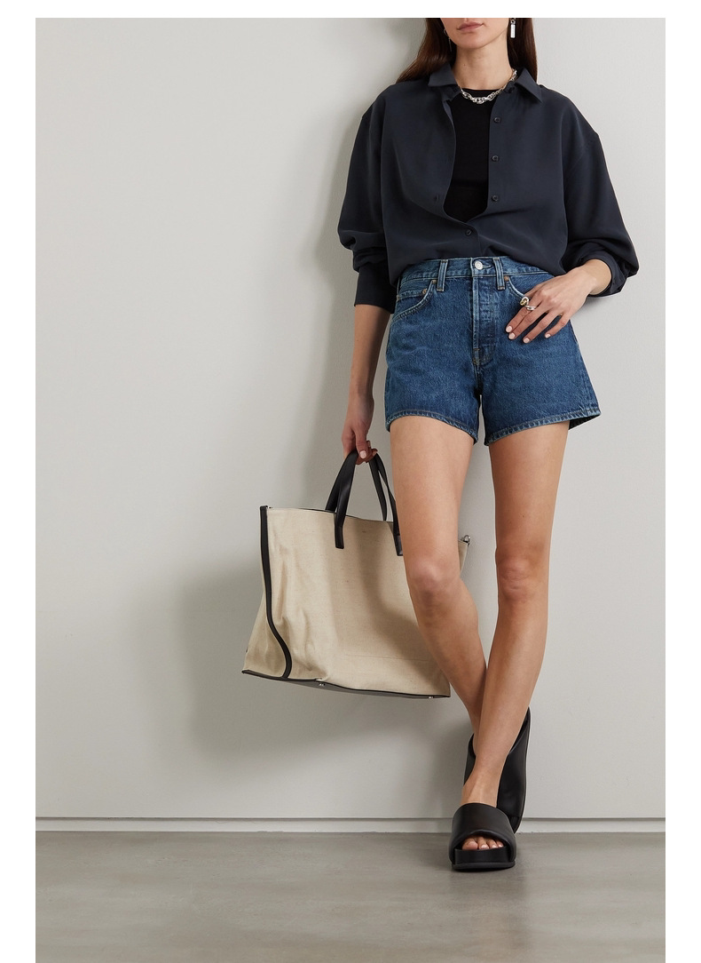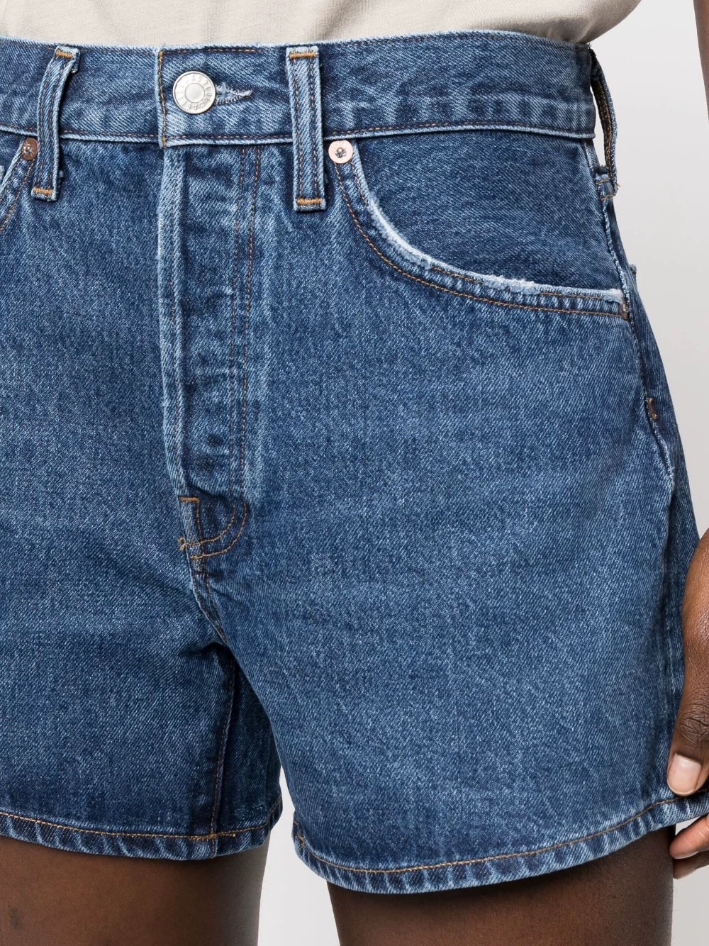 봄과 여름 2025 새로운 유럽과 미국의 AG Wu Qianyu Zheng Xiuyan, 다크 블루 높은 허리 착용 데님 반바지 여성스토어 가기