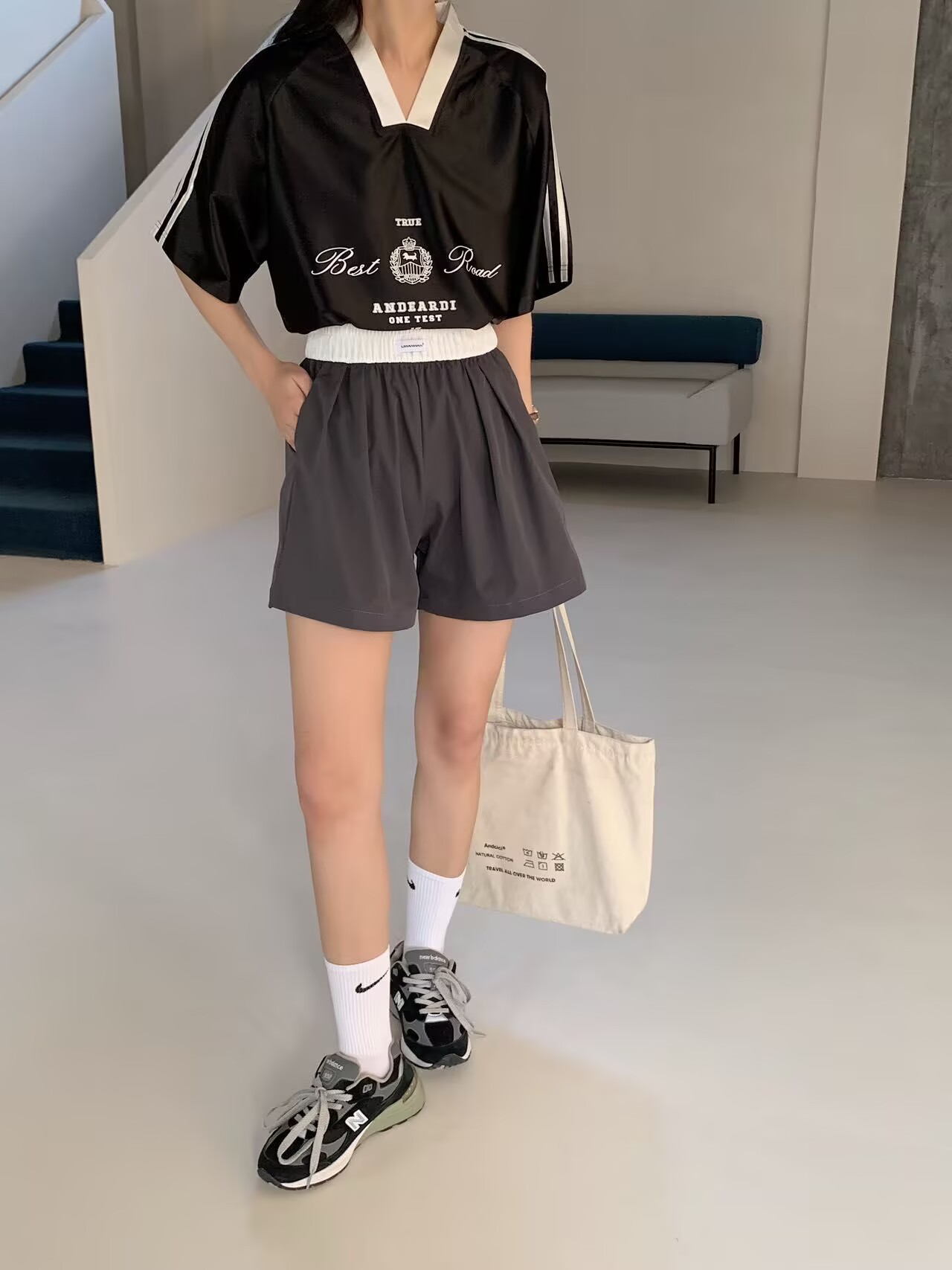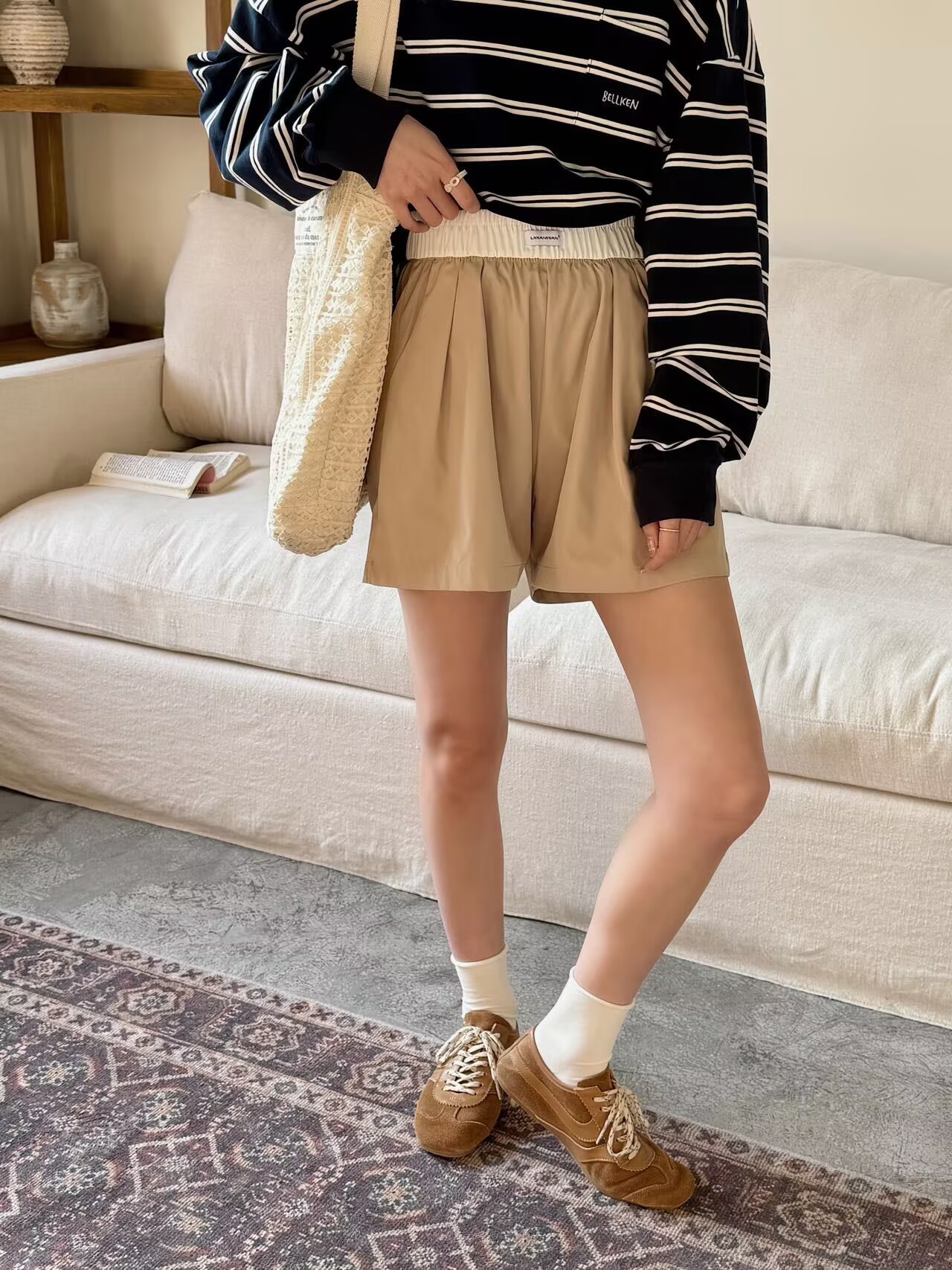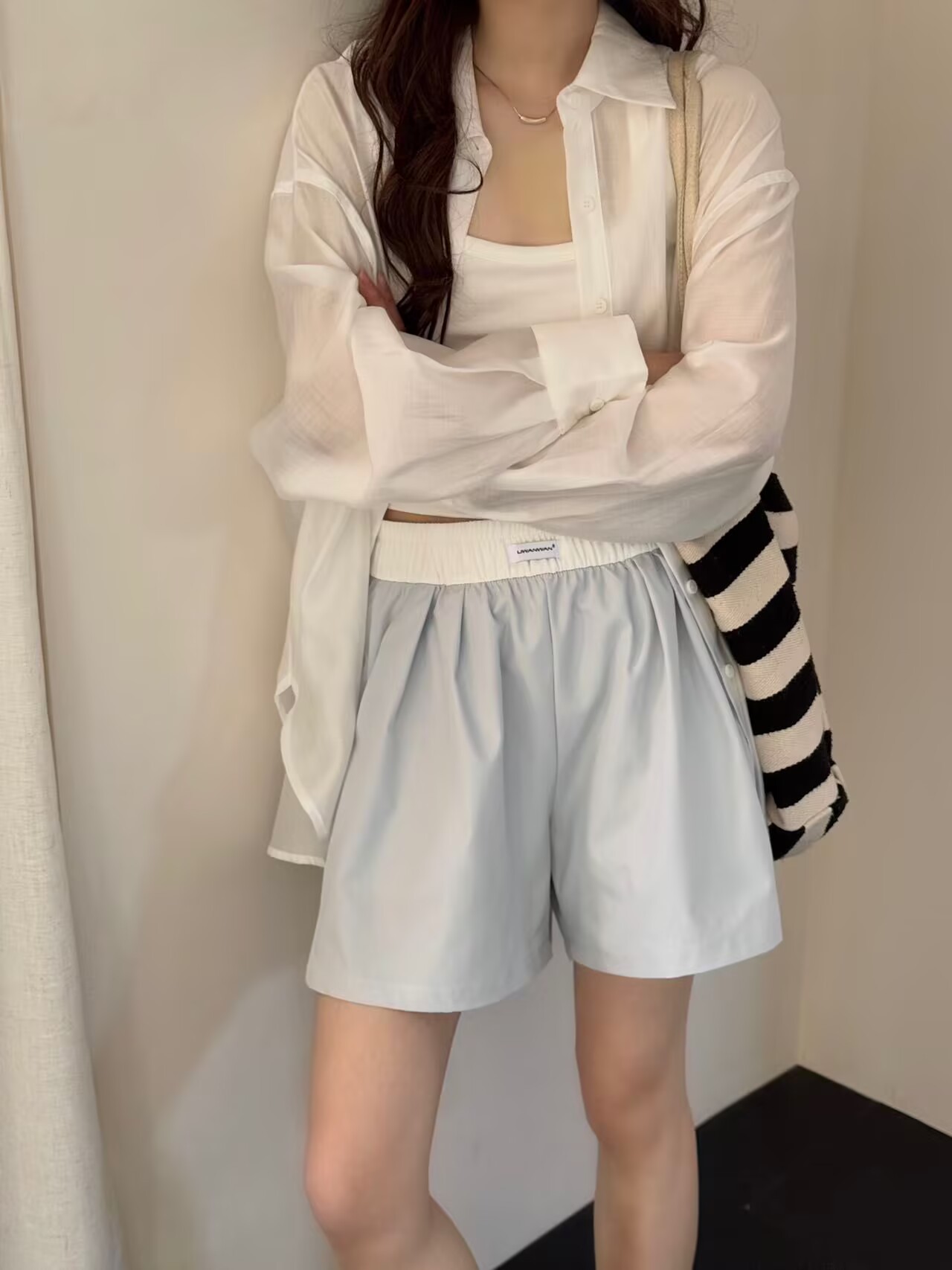 대비 색 반바지 여성 여름 2025 새로운 핫 스타일 하이 웨이스트 슬림 루즈 아우터 캐주얼 a 라인 와이드 레그 팬츠스토어 가기