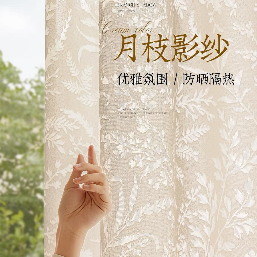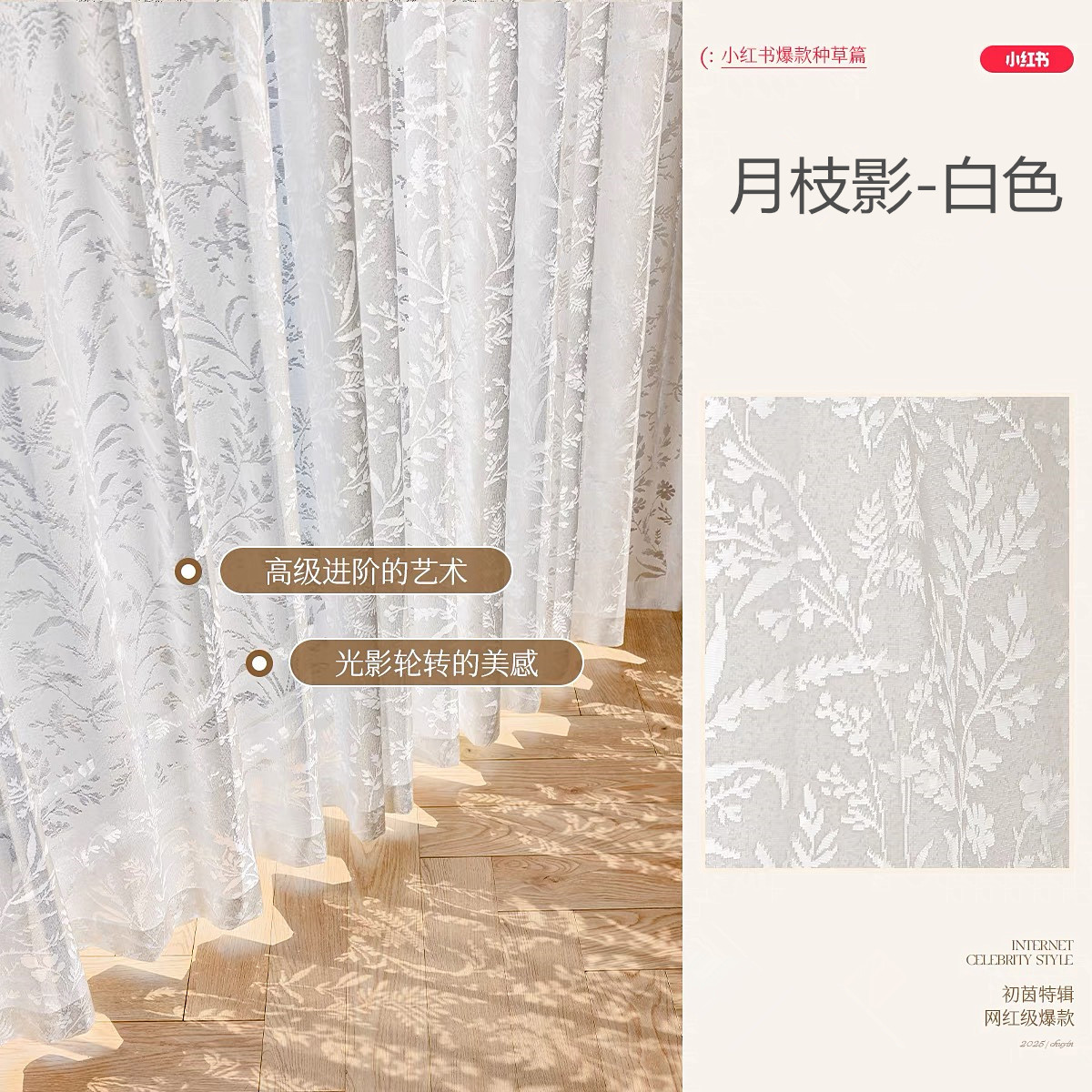 작은 빨간 책 문 지점 그림자 창 화면 거실 침실 발코니 현대 간단한 거울 절연 화이트 크림 컬러 거즈 커튼스토어 가기