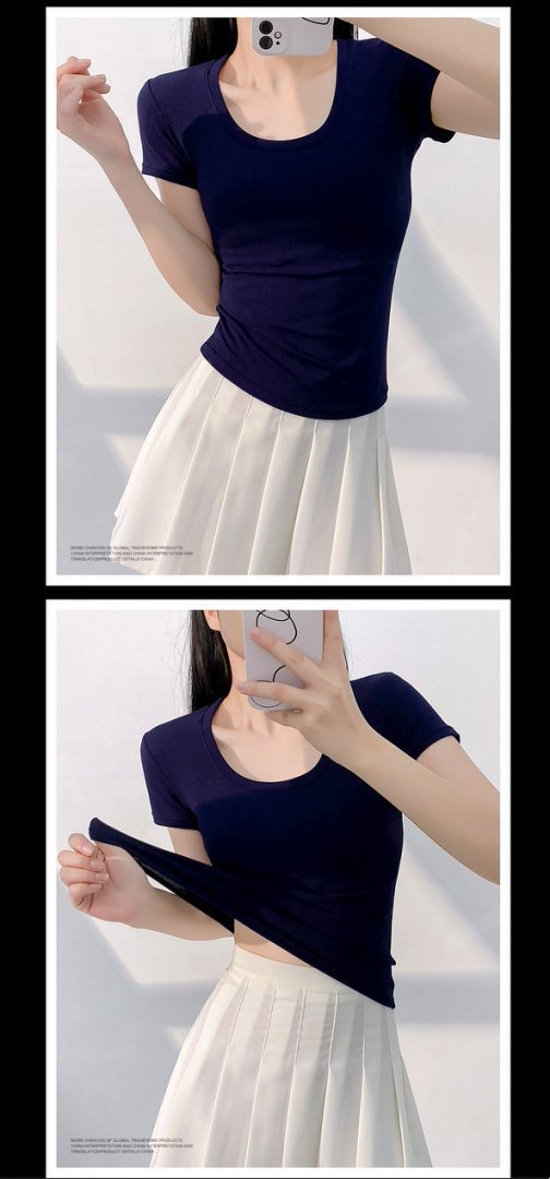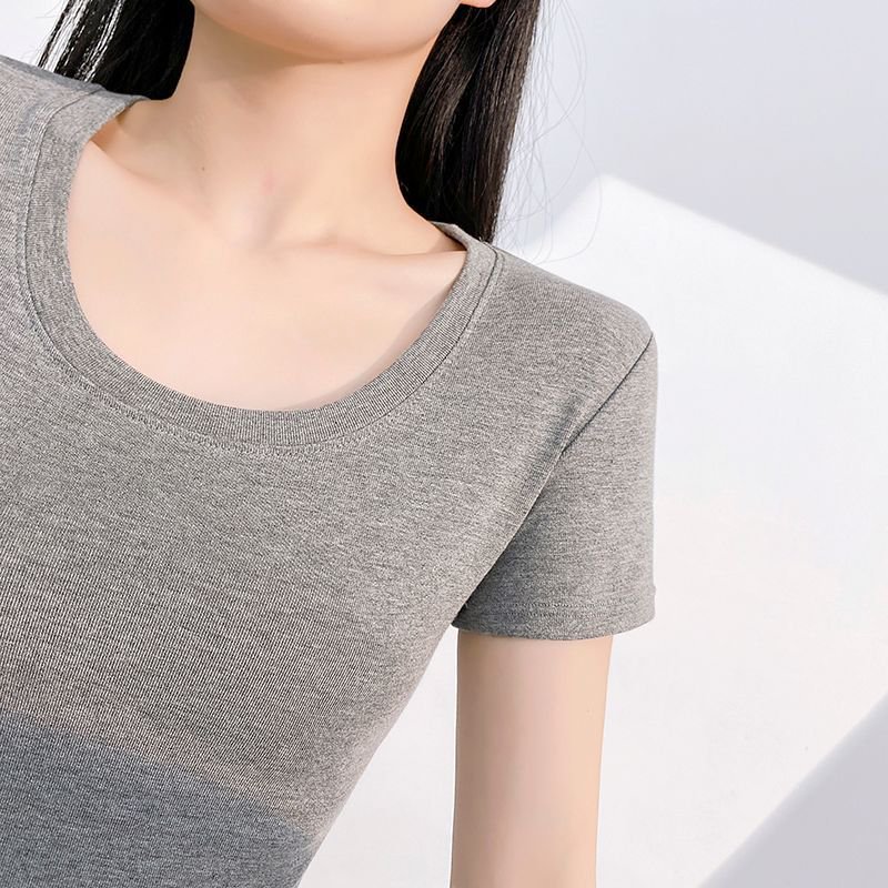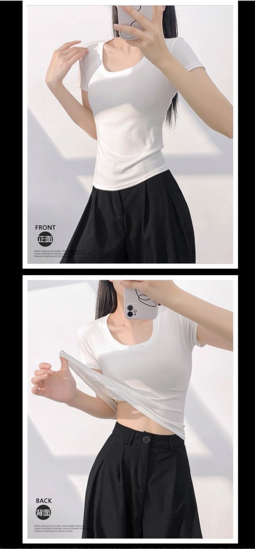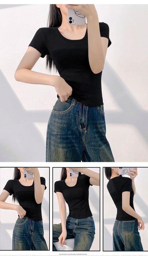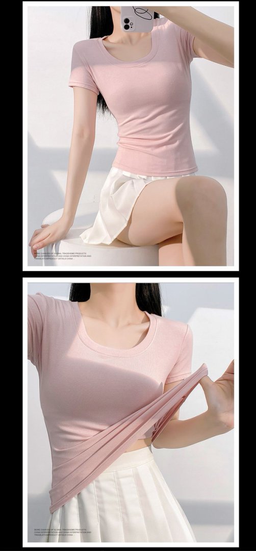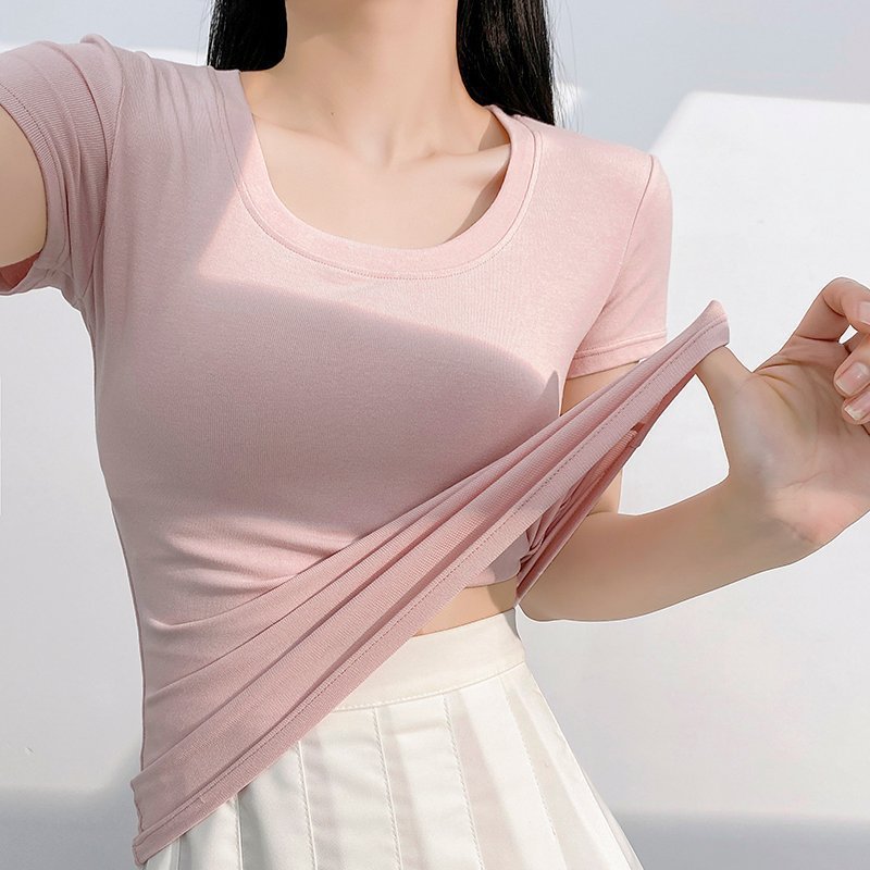 2026 신상 여성용 반팔 티셔츠, 짧은 스타일, 타이트핏, 넥라인 컷아웃, 여름 패션 반팔 핑크색 베이스탑스토어 가기