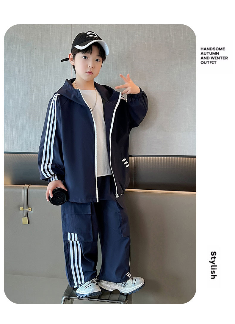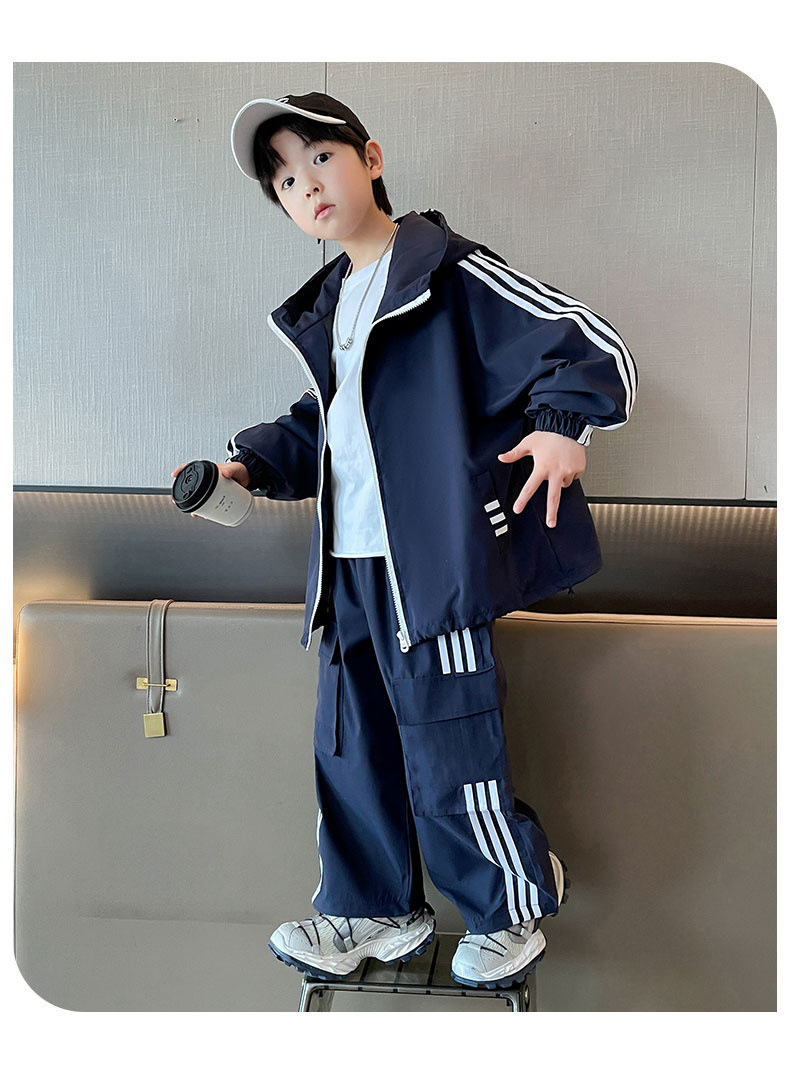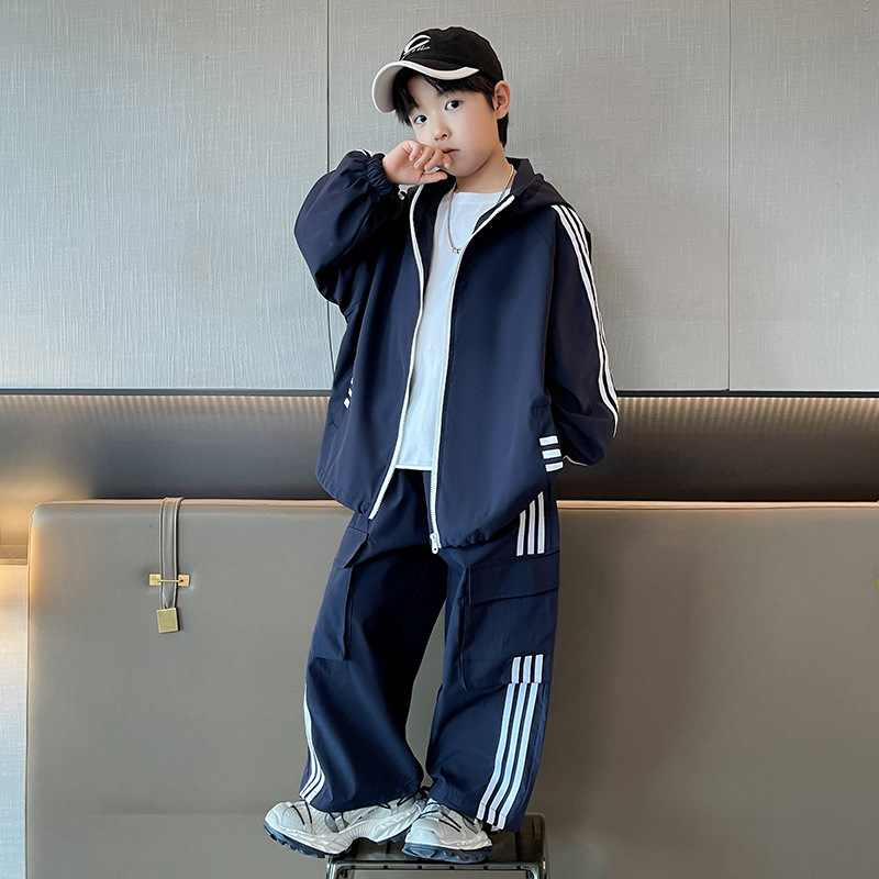 소년 봄 스포츠 세트 2025 새로운 어린이 멋진 외국 스타일 재킷 캐주얼 바지 투피스 클래스 옷 조수스토어 가기