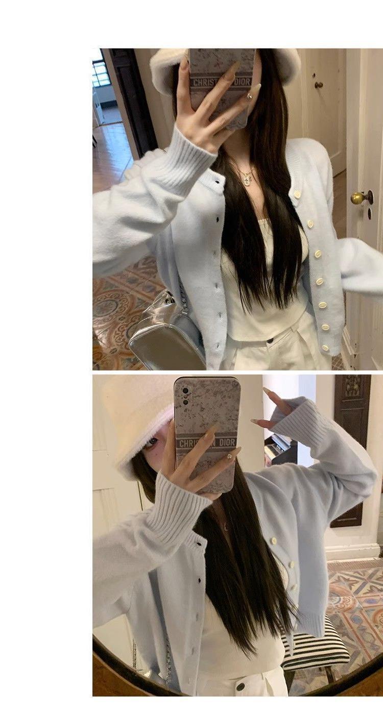 이른 가을 블루 카디건 2025 봄과 가을 새로운 디자인 센스 니트 스웨터 소프트 왁스 탑 스웨터 새 재킷