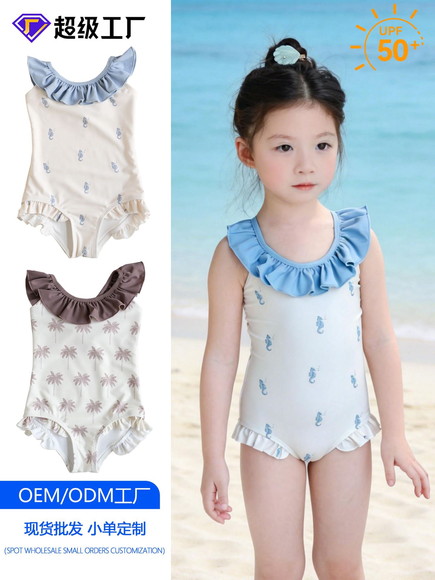 여아용 인스 스타일 작은 해마 원피스 수영복 폴리에스터 소재 여아용 귀여운 휴가용 아동용 항염소 자외선 차단 수영복 도매스토어 가기