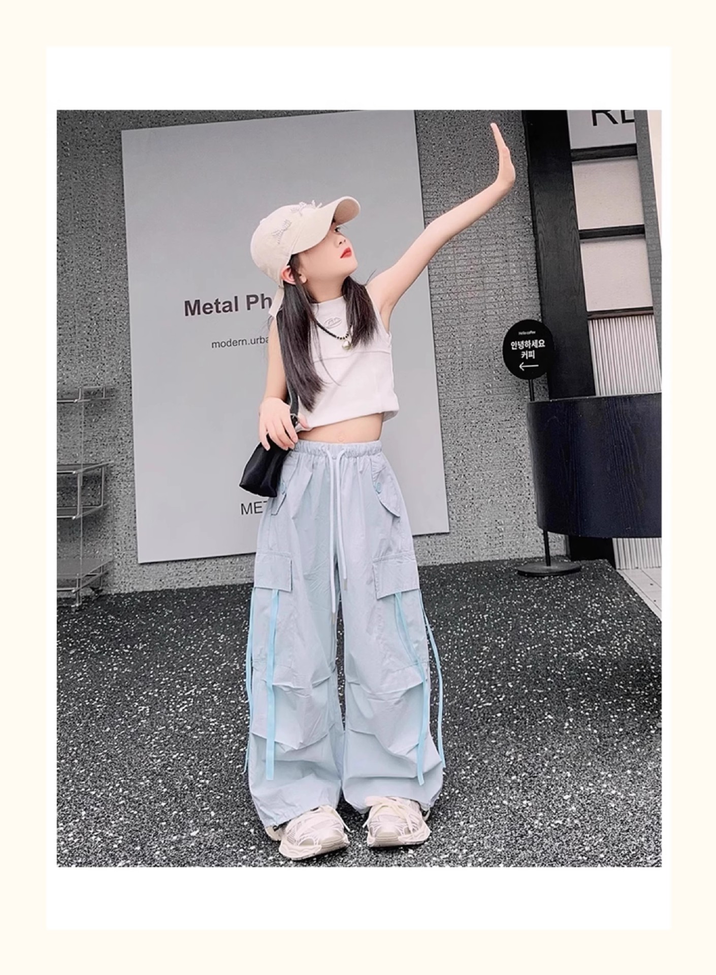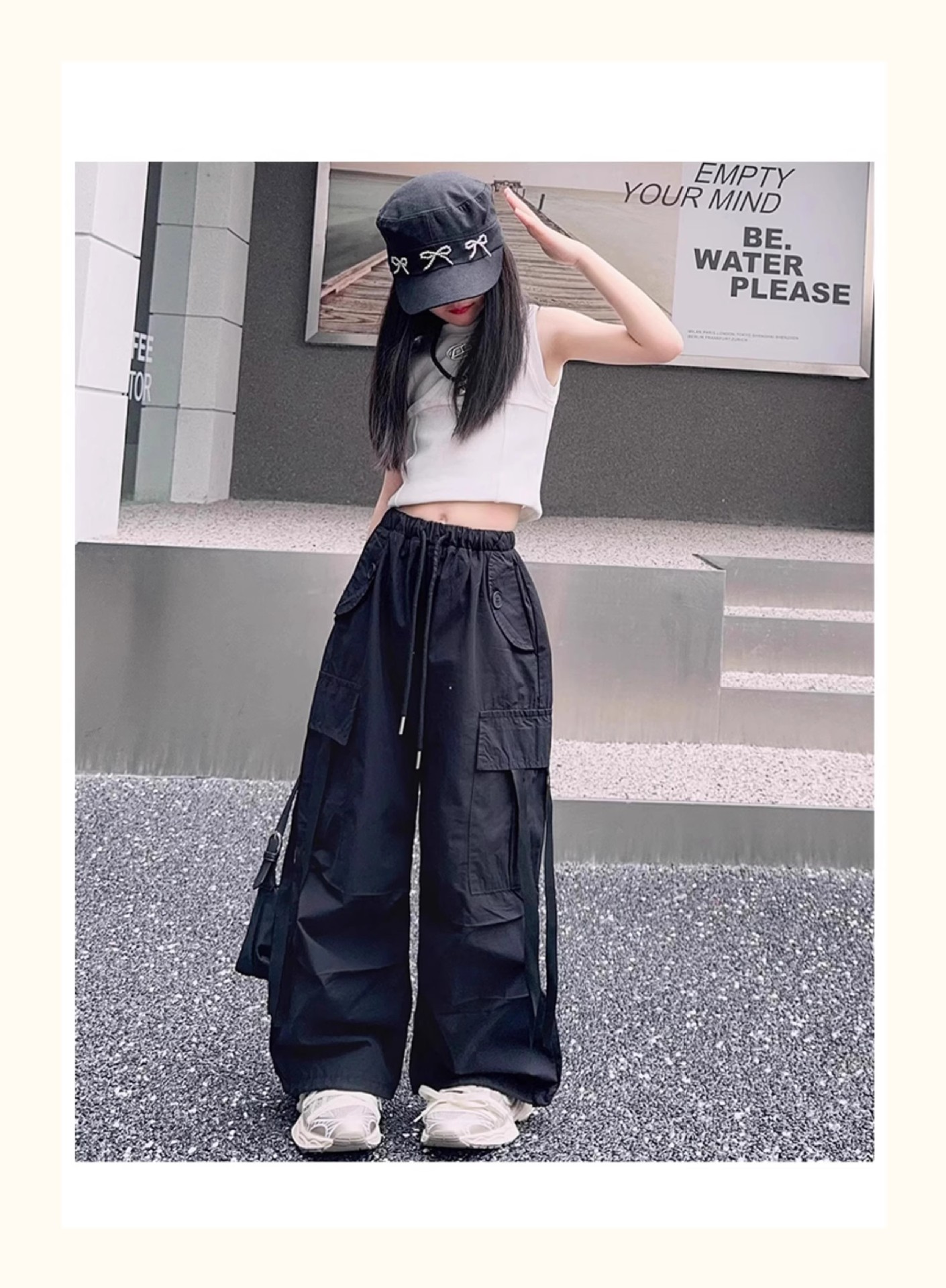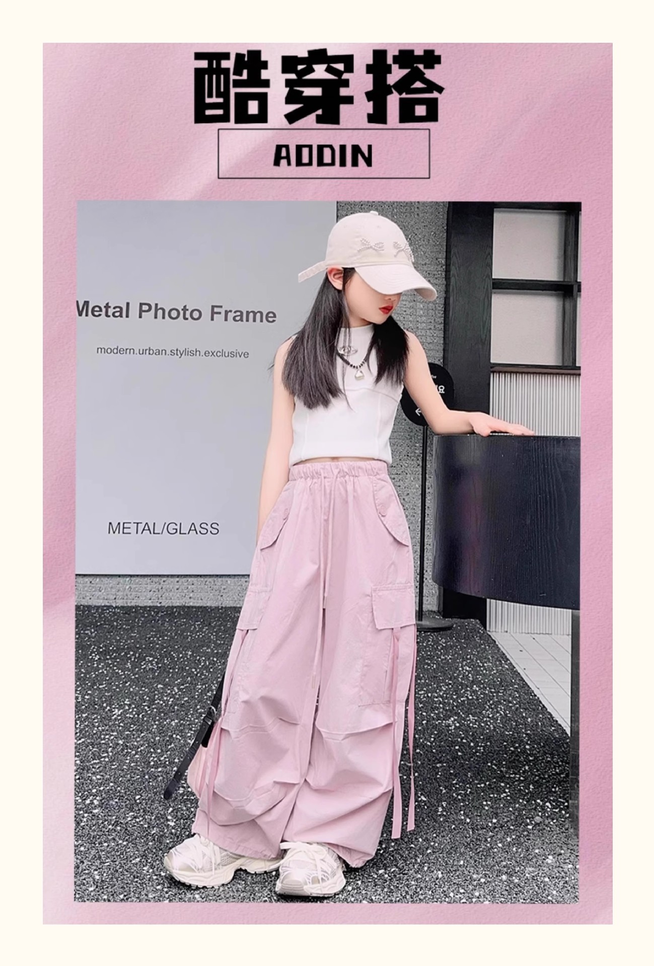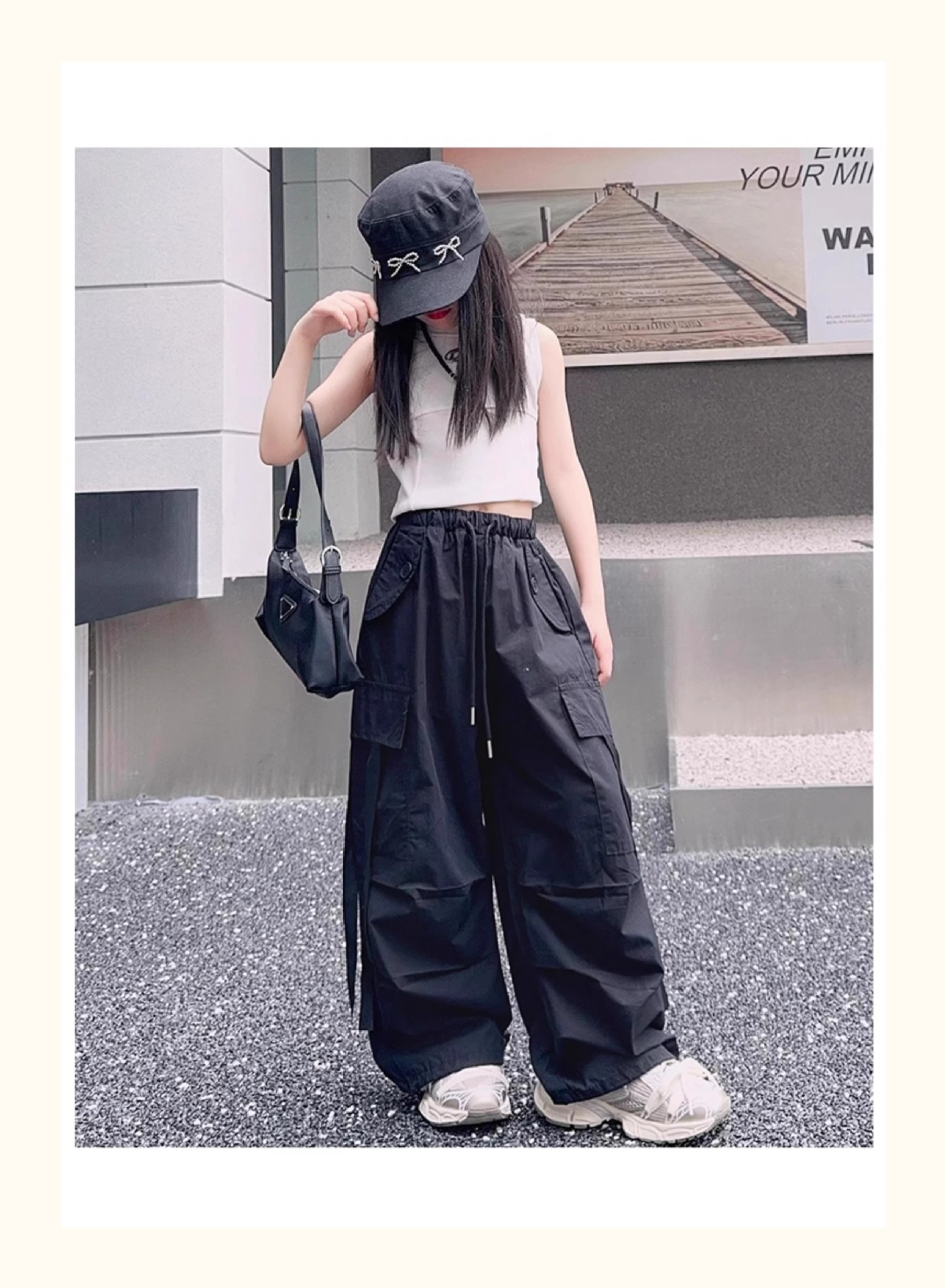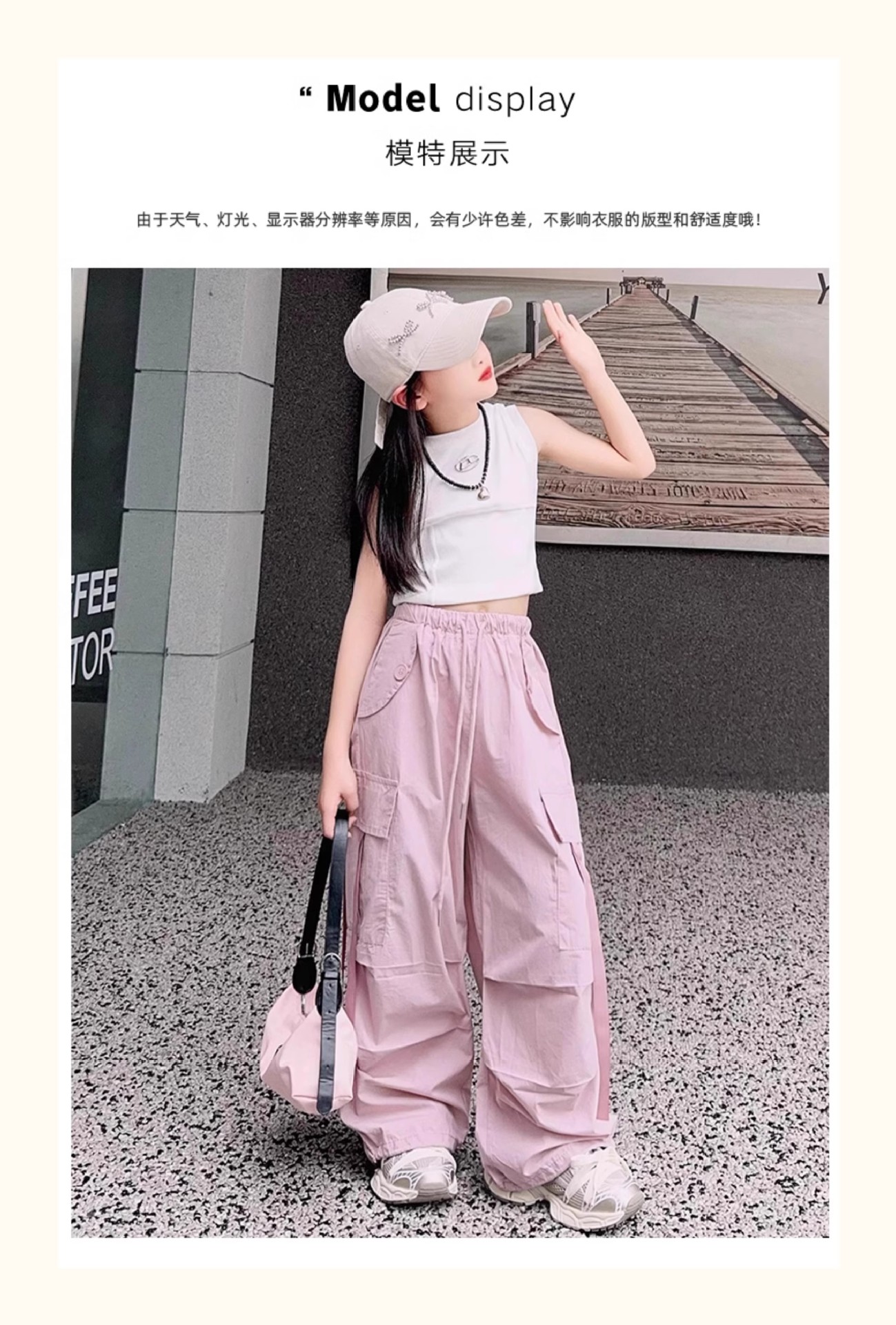 소녀 작업복 여름 새로운 도착 2025 새로운 도착 소녀 유행 루즈 스파이스 소녀 스타일 리본 캐주얼 바지
