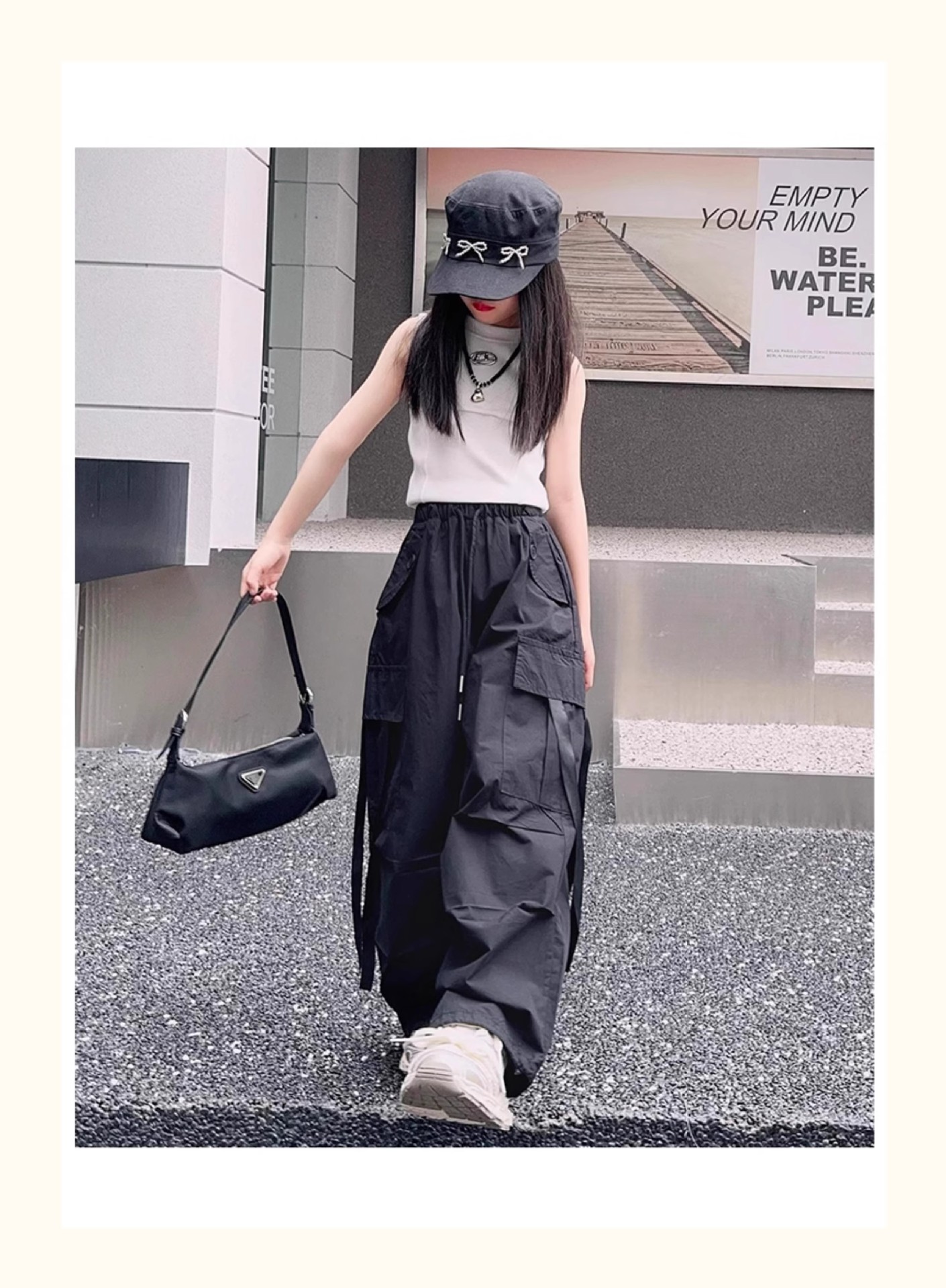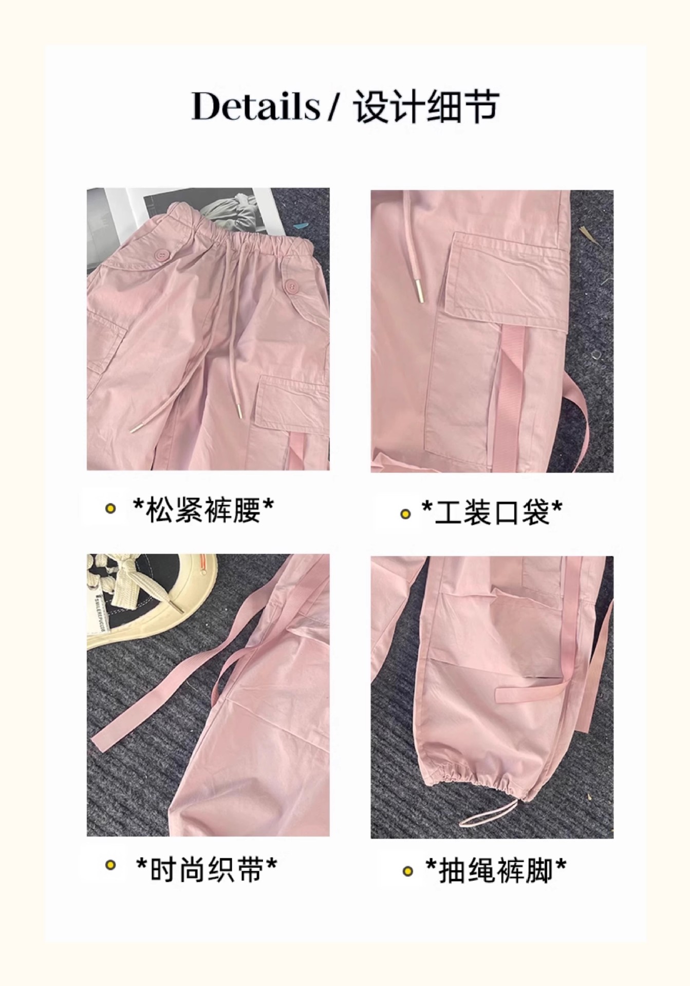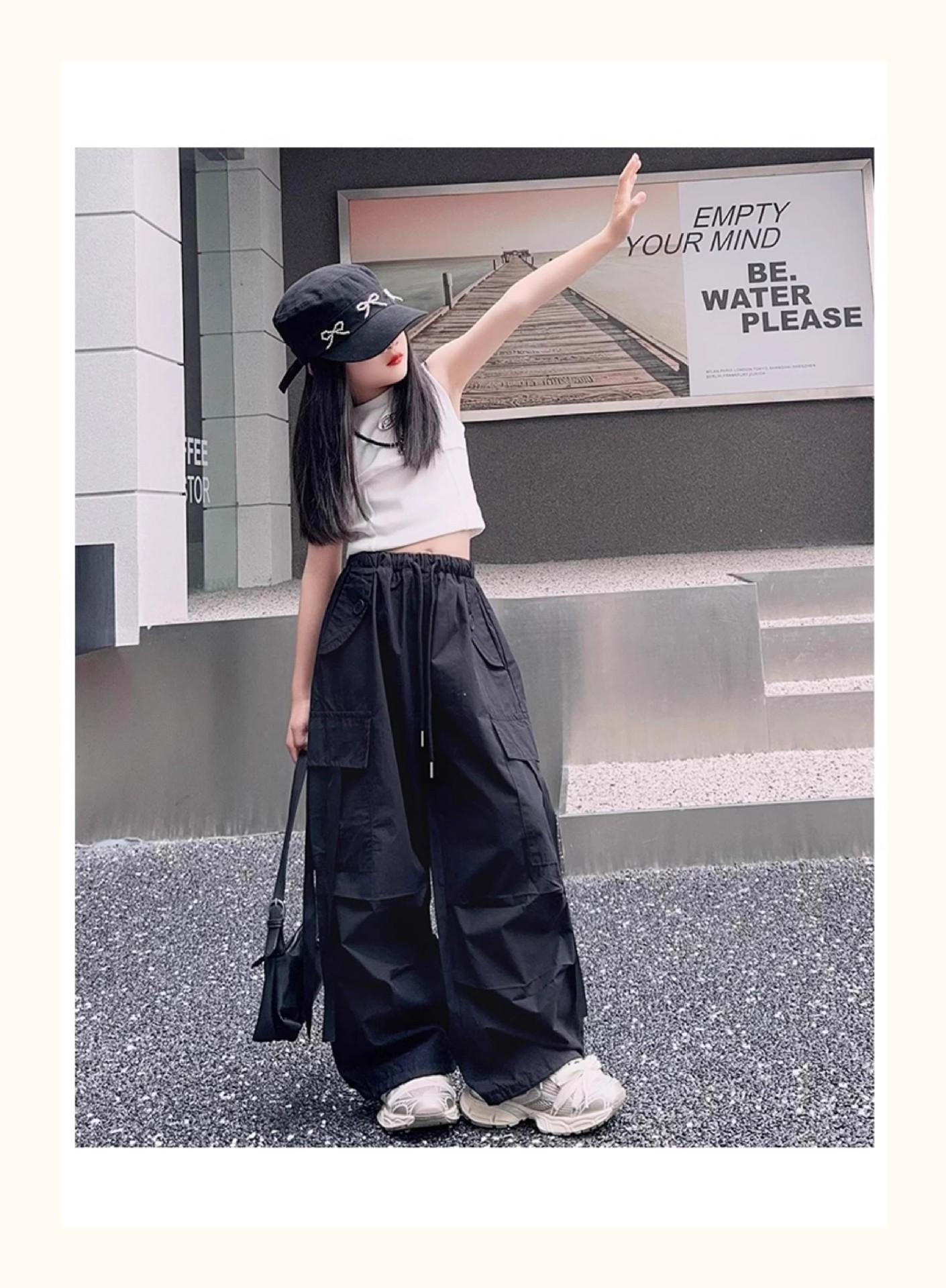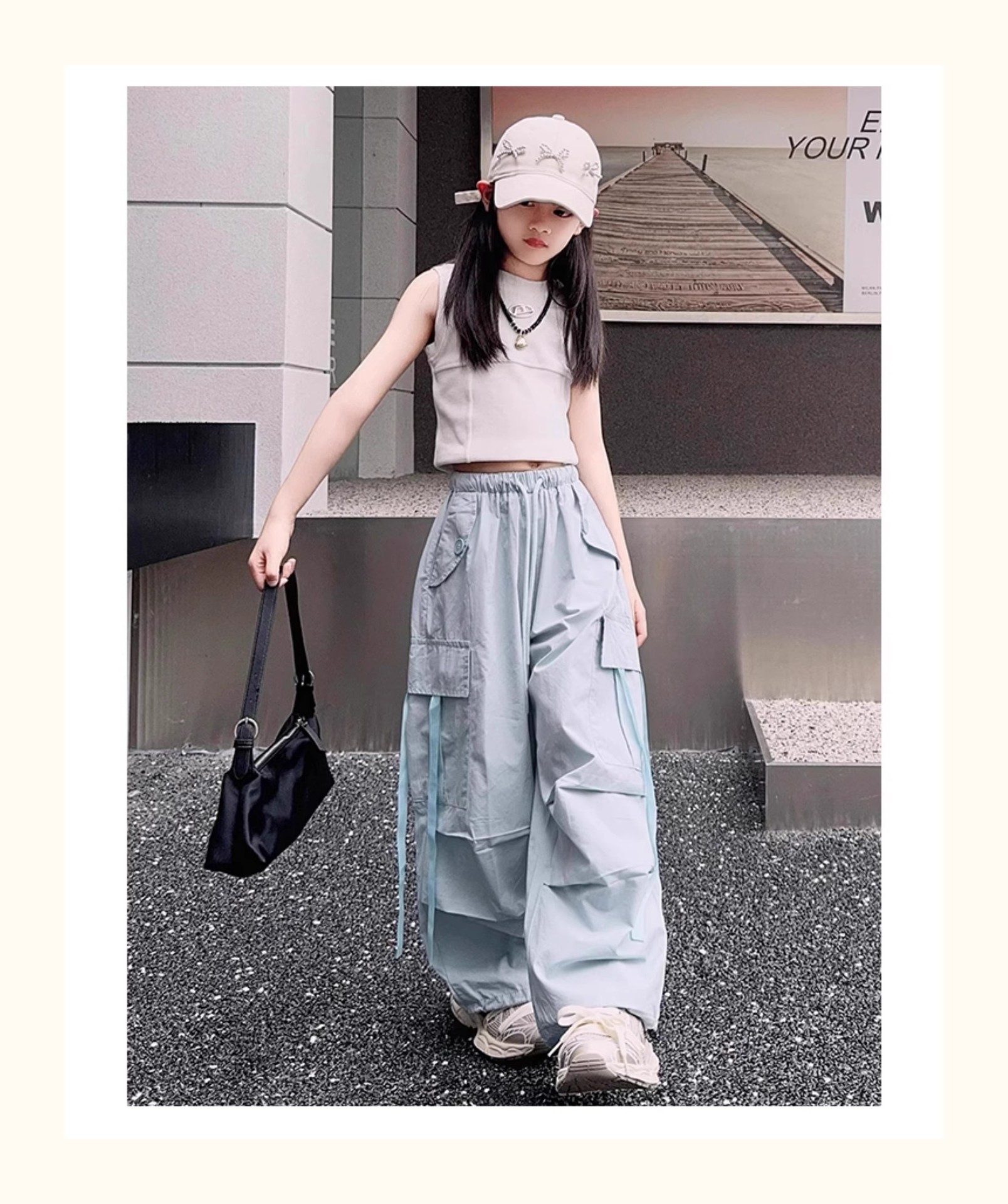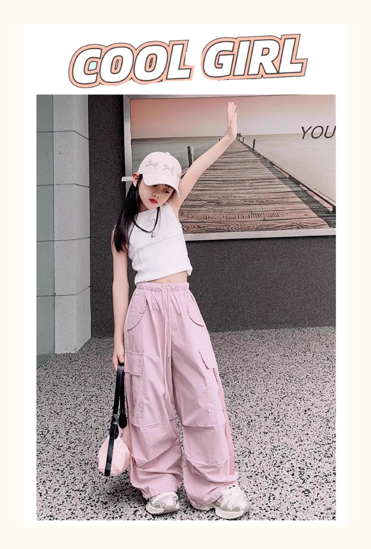 소녀 작업복 여름 새로운 도착 2025 새로운 도착 소녀 유행 루즈 스파이스 소녀 스타일 리본 캐주얼 바지